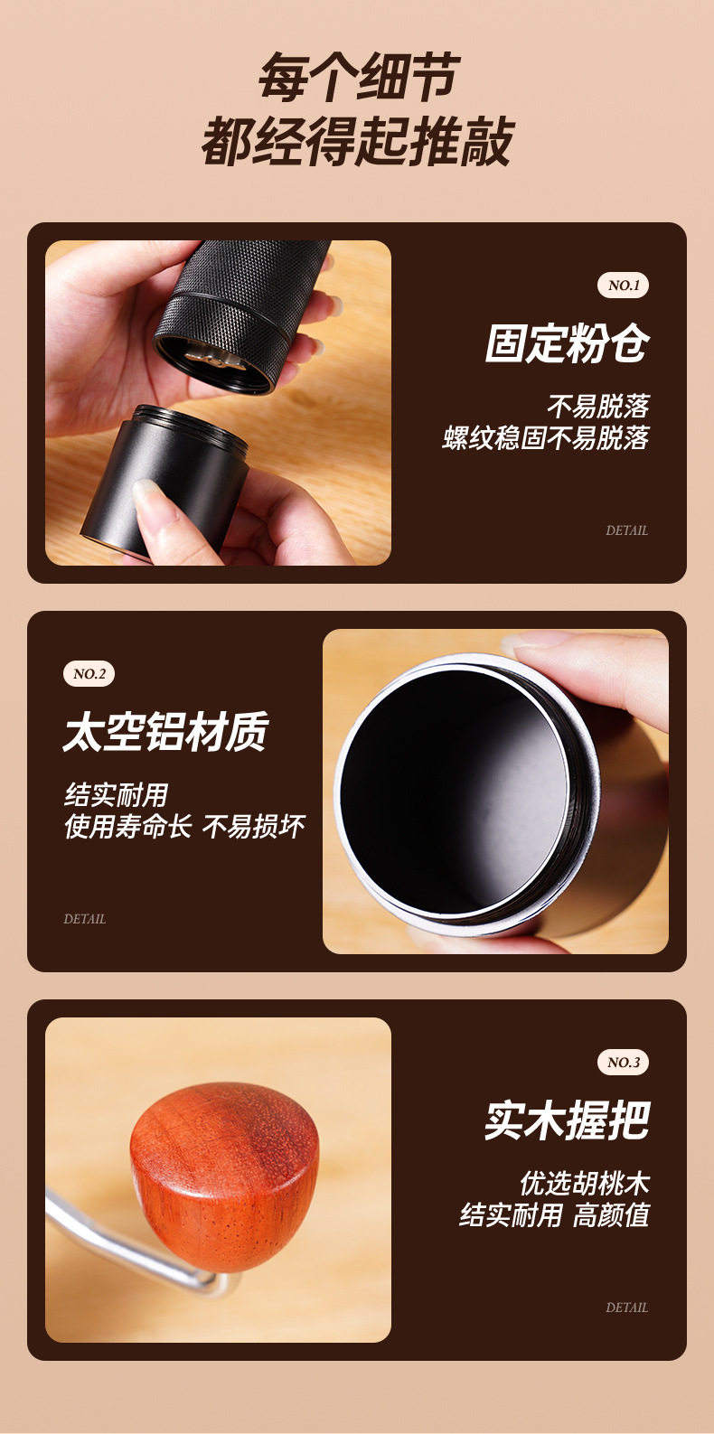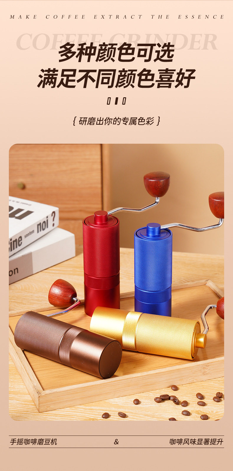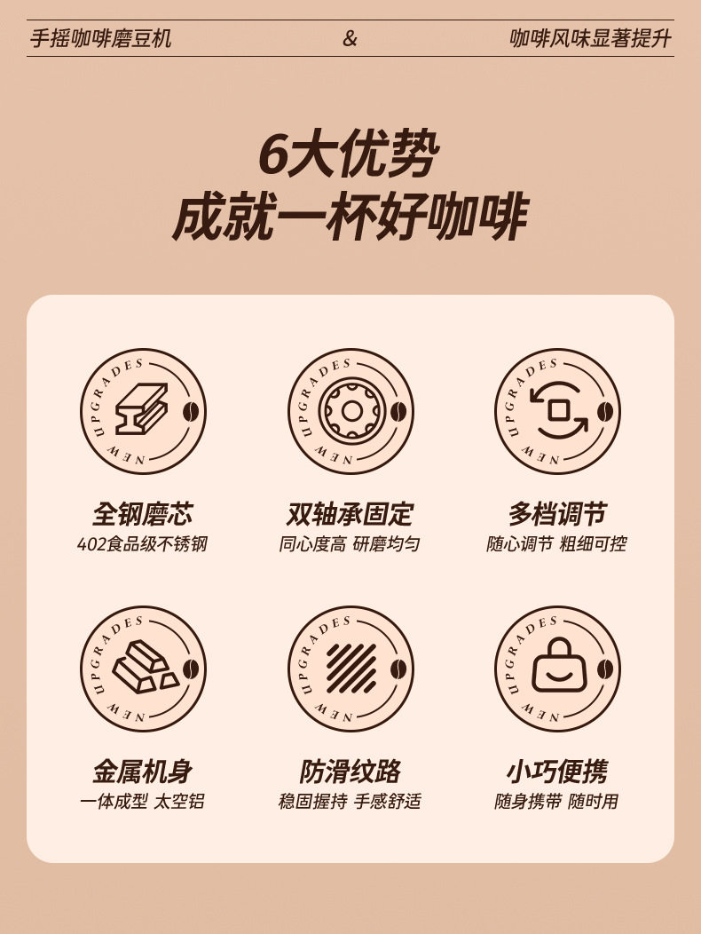 CNC Hand Coffee Grinder Manual Grinder All Aluminum Housing 420 Stainless Steel Grinding Core Tapered Cutter Cross Border