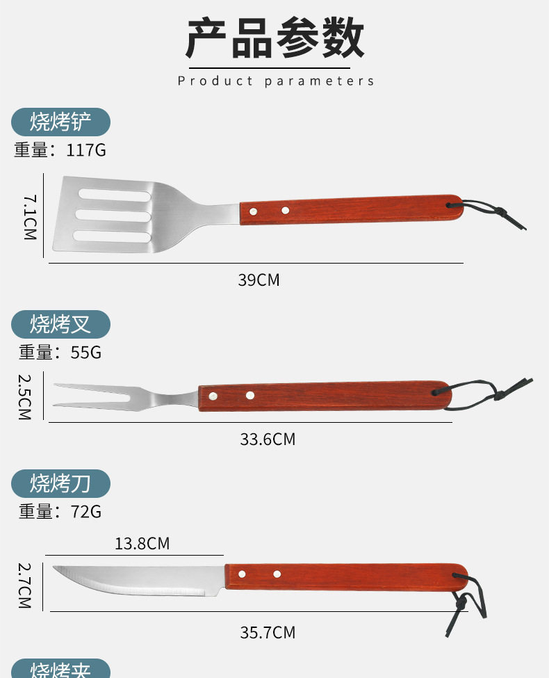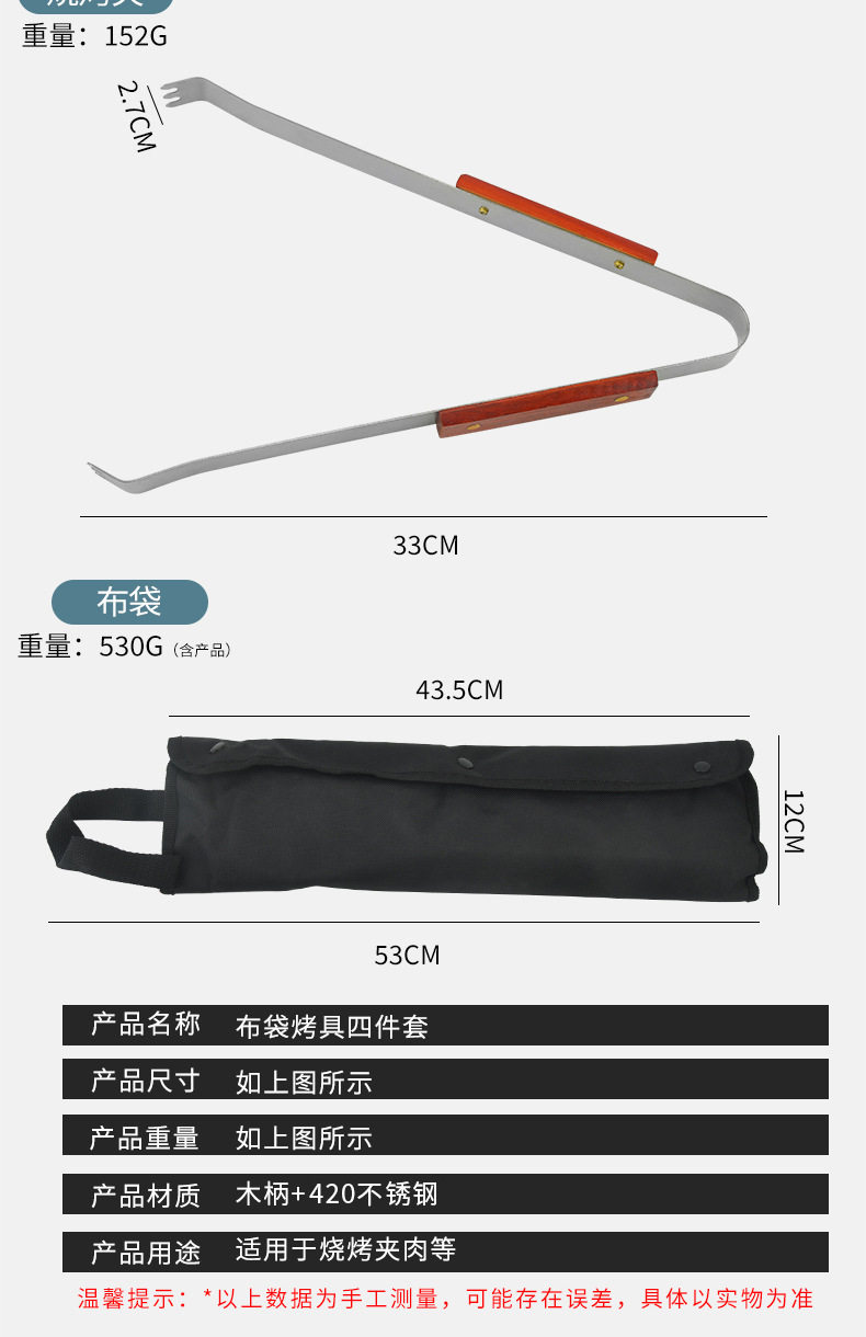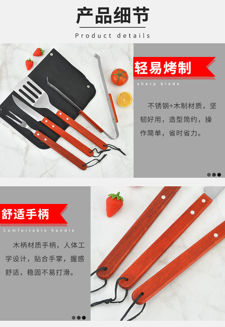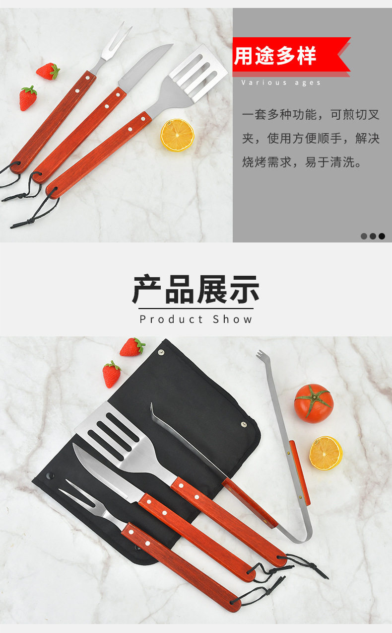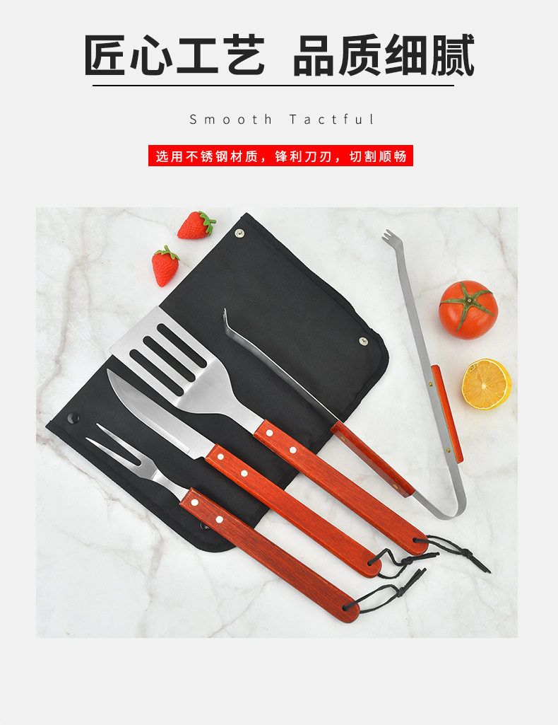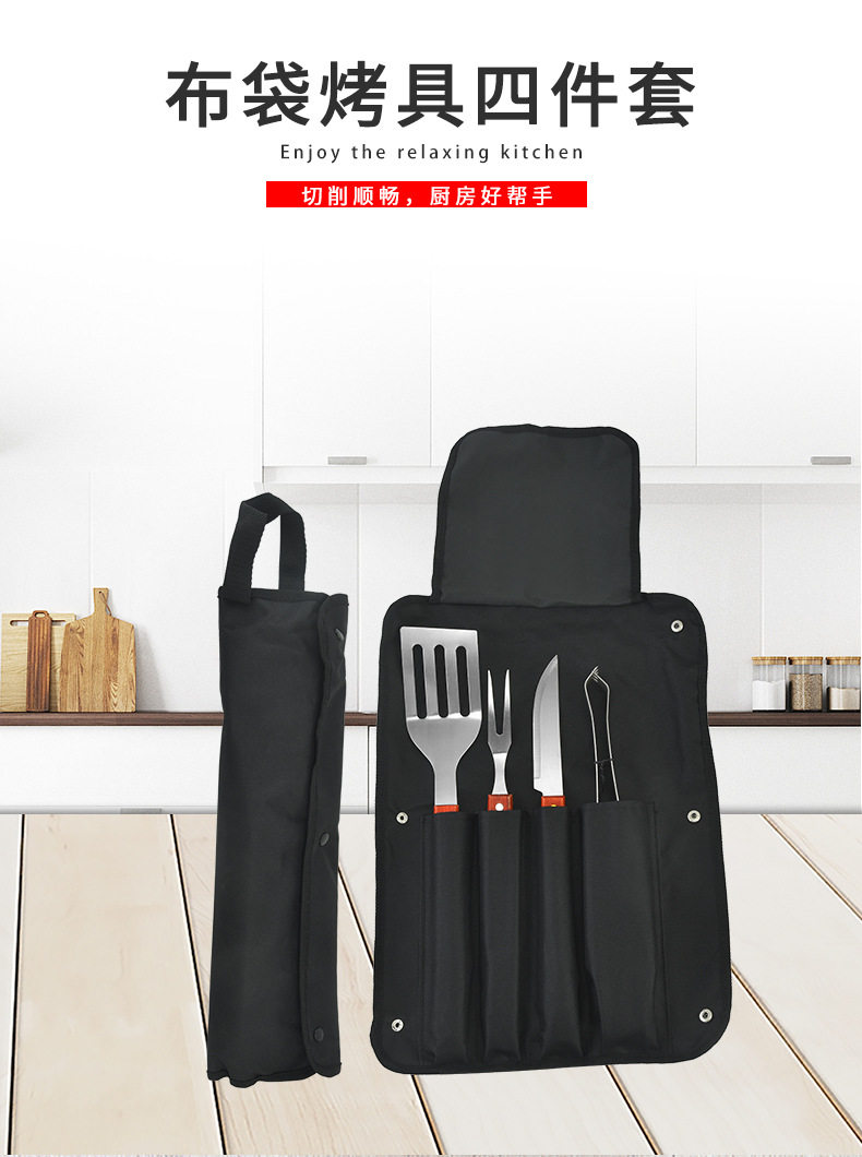 Spot Direct Sales Wooden Handle Bbq Barbecue Set Barbecue Clip Fork Shovel Knife Apron Oxford Bag Grill Five-Piece Set