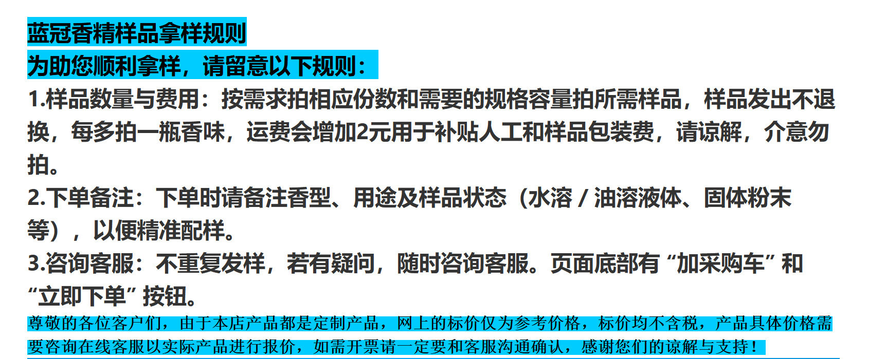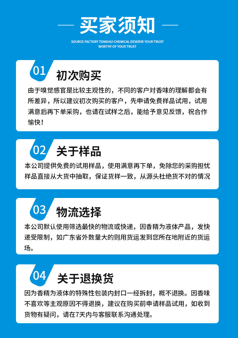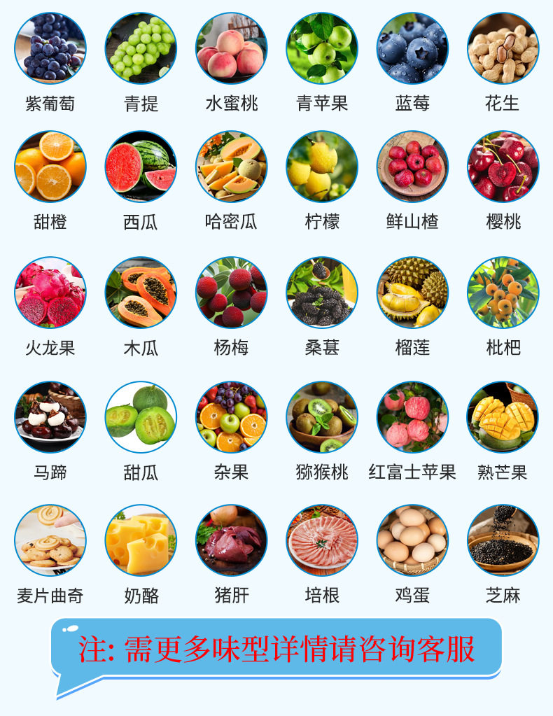| Specifications and models | 20g sample*remarks: liquid (water, oil, water quality, oil soluble)/powder/industry (product)/*flavor type can be adjusted and customized,50g sample*remarks: liquid (water, oil, water quality, oil soluble)/powder/industry (product)/*flavor type can be adjusted and customized,100g small trial sample*remarks: liquid (water and oil, water quality, oil soluble)/powder/industry (product)/flavor type can be adjusted and customized,500g pilot sample *remarks: liquid (water and oil, water quality, oil soluble)/powder/industry (product)/*flavor type can be adjusted and customized,1000g/1kg pilot sample *remarks: liquid (water and oil, water quality, oil soluble)/powder/industry (product)/*flavor type can be adjusted and customized |