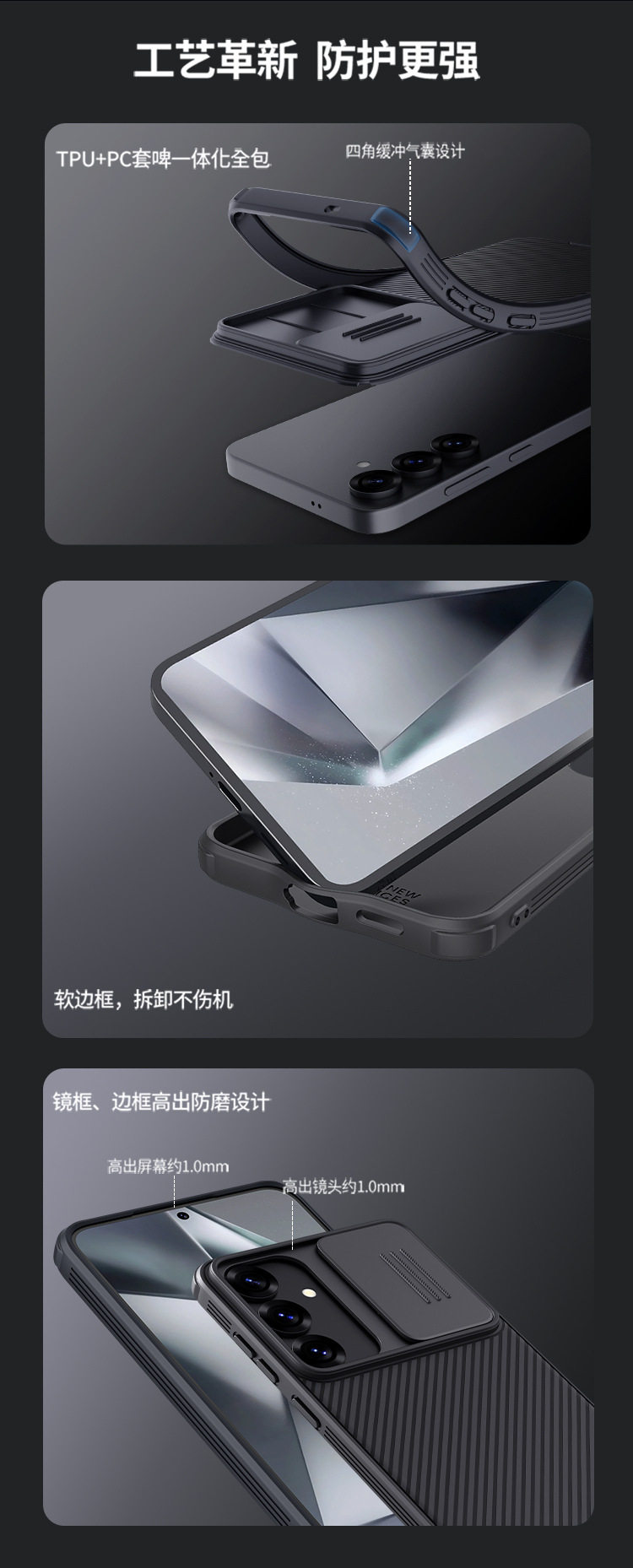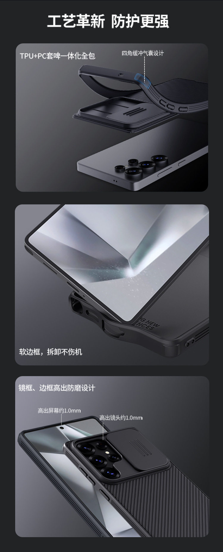 Nillkin Nelgin for Samsung S25Ultra Phone Case s25edge Black Mirror Pro Lens Slide Push