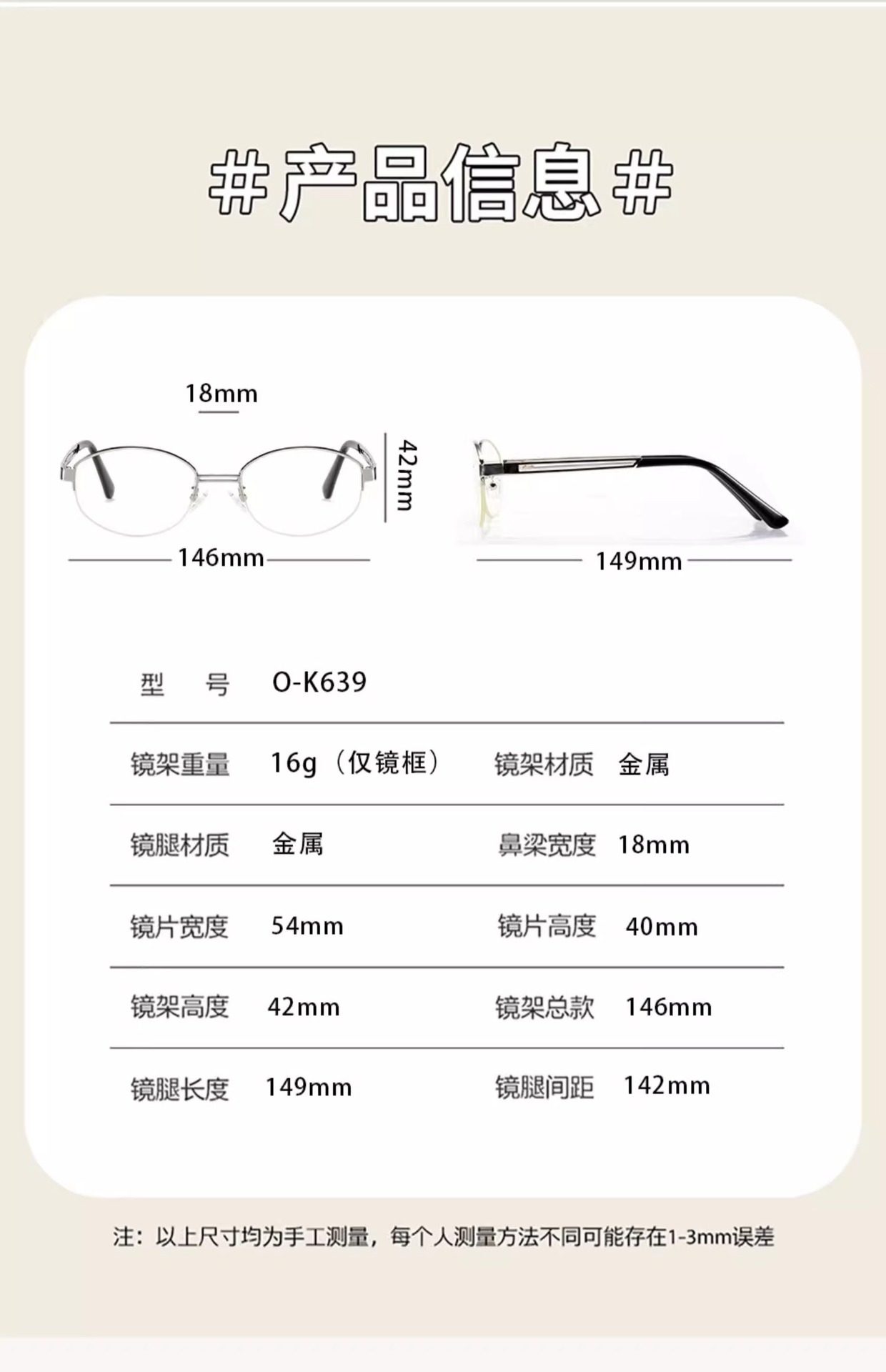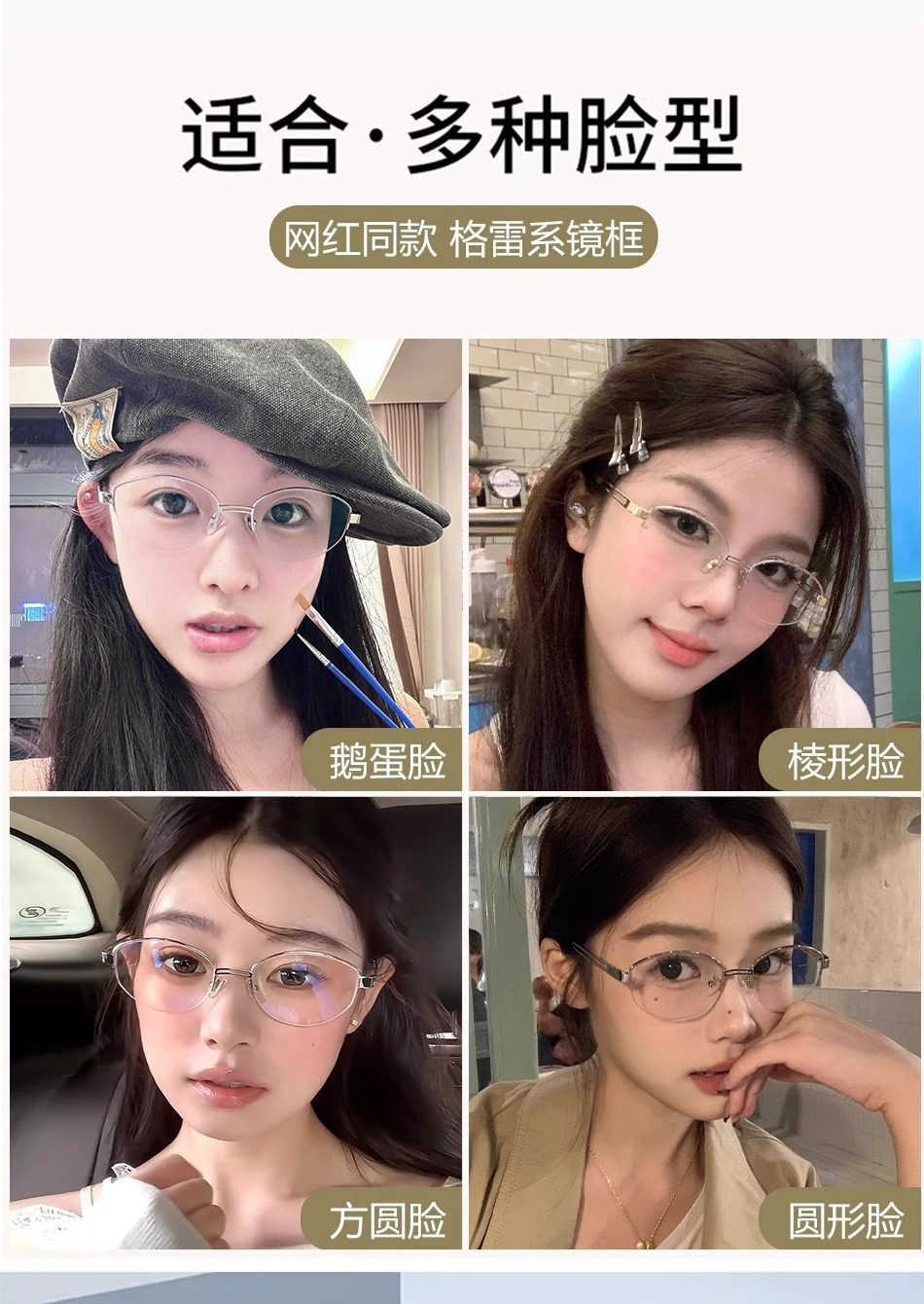 | Glasses style | Oval frame |
