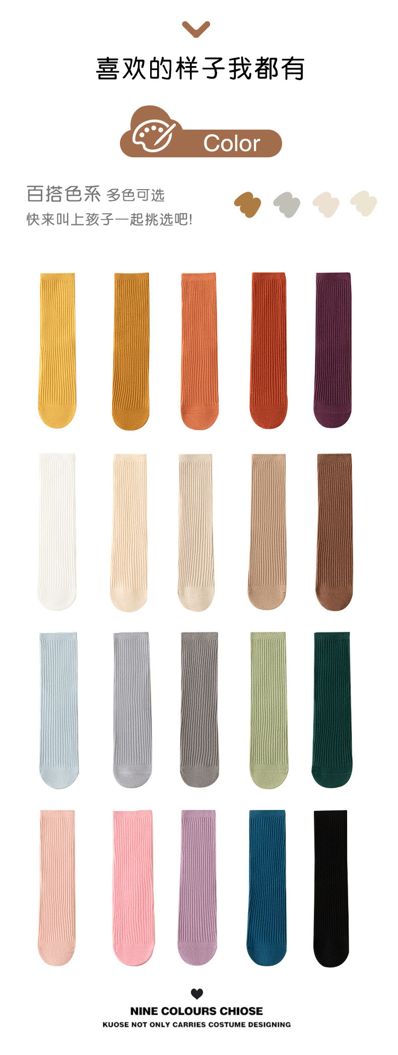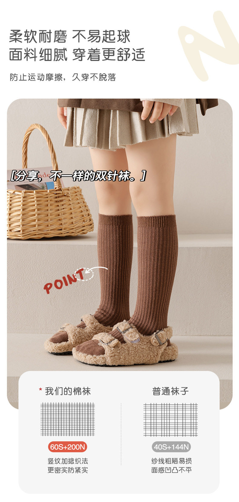 Children's Double Needle Stacked Socks Straight Plate No-heel Girls' Socks Solid Color Morandi Girls' Small and Medium-sized Children's Baby Stockings