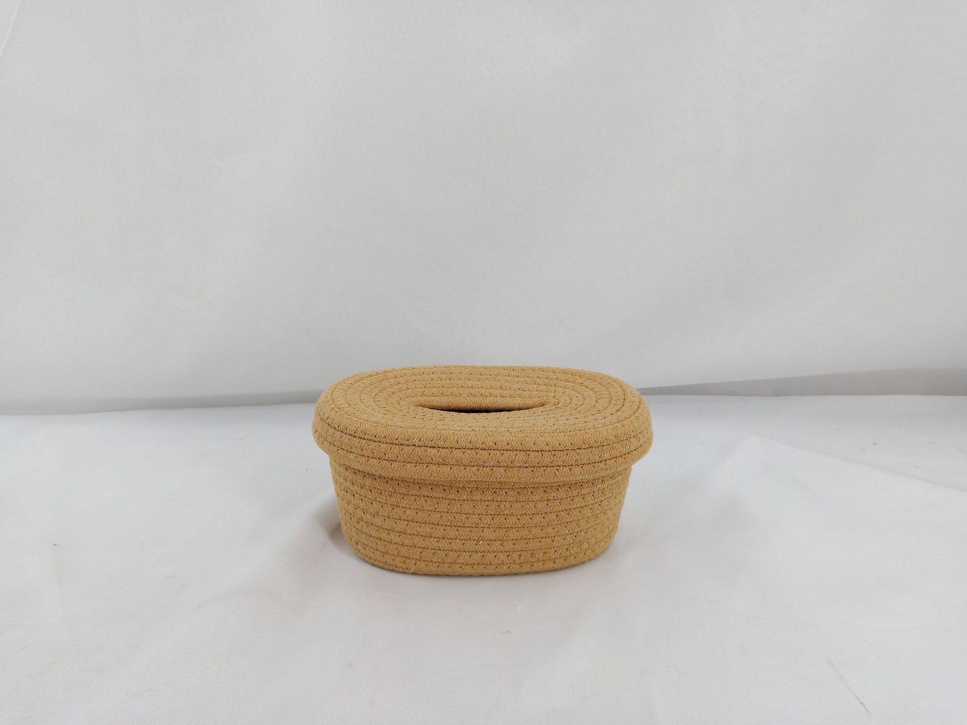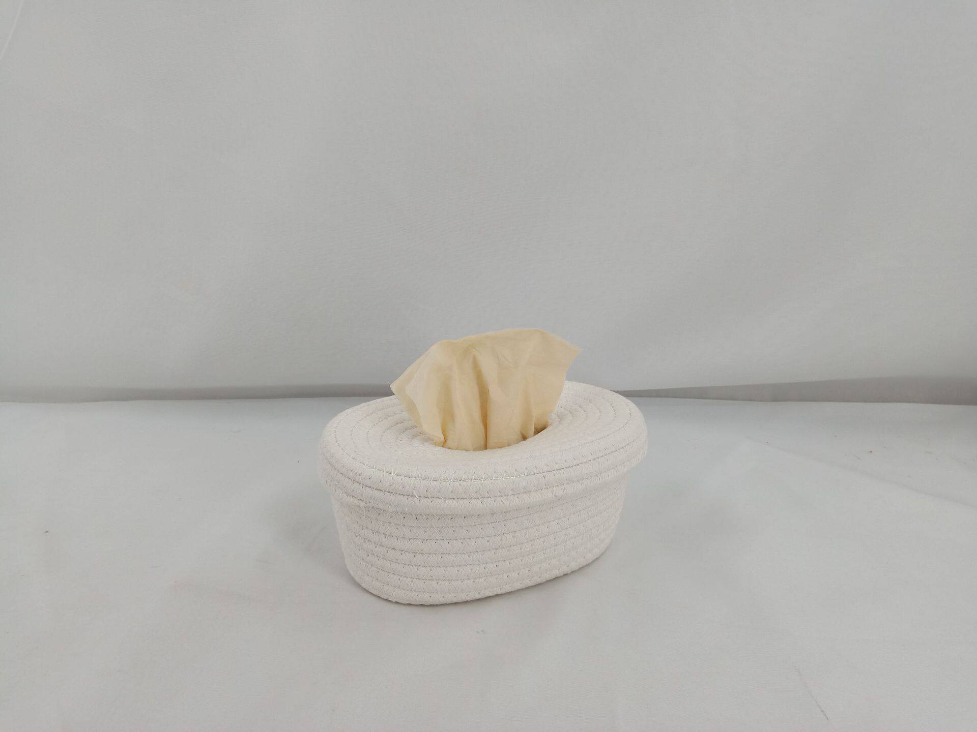 Cotton Rope Storage Box Tissue Box Cotton Rope Large Dustproof Storage Basket with Lid Tissue Storage Paper Box Cotton Rope Storage