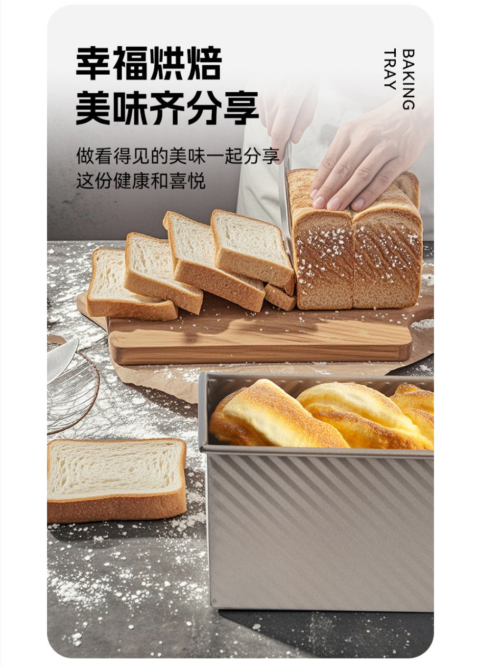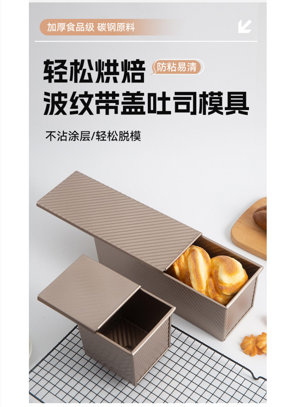 Carbon Steel Rectangular Toast Mold Non-Stick Corrugated Toast Box Bread Mold Oven Household Baking Tools