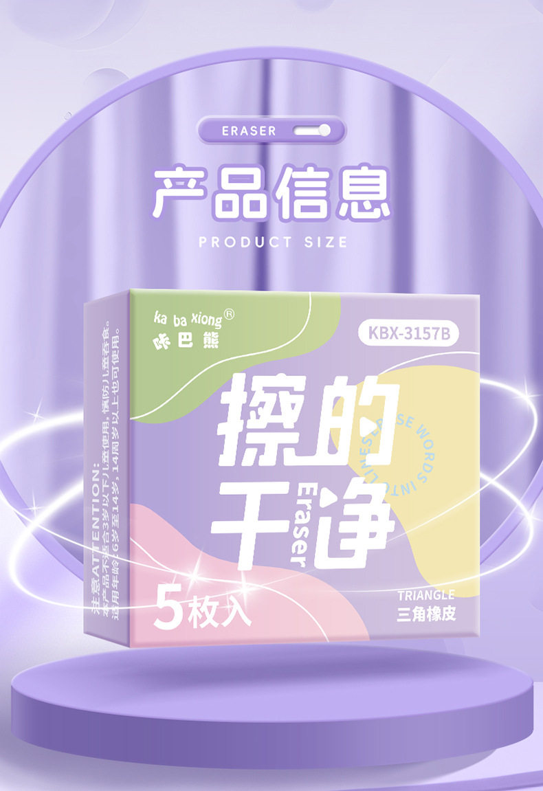 Kaba Bear New High Color Value Macaron Triangle Eraser for Students