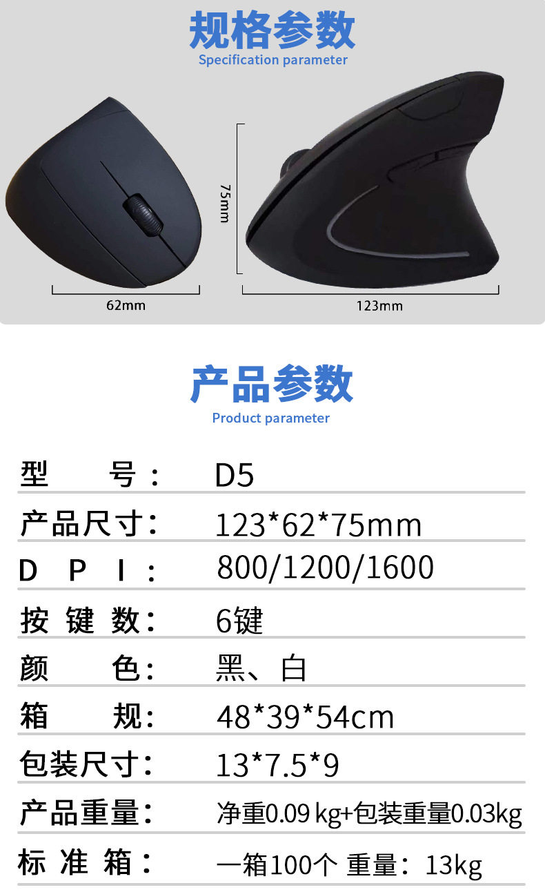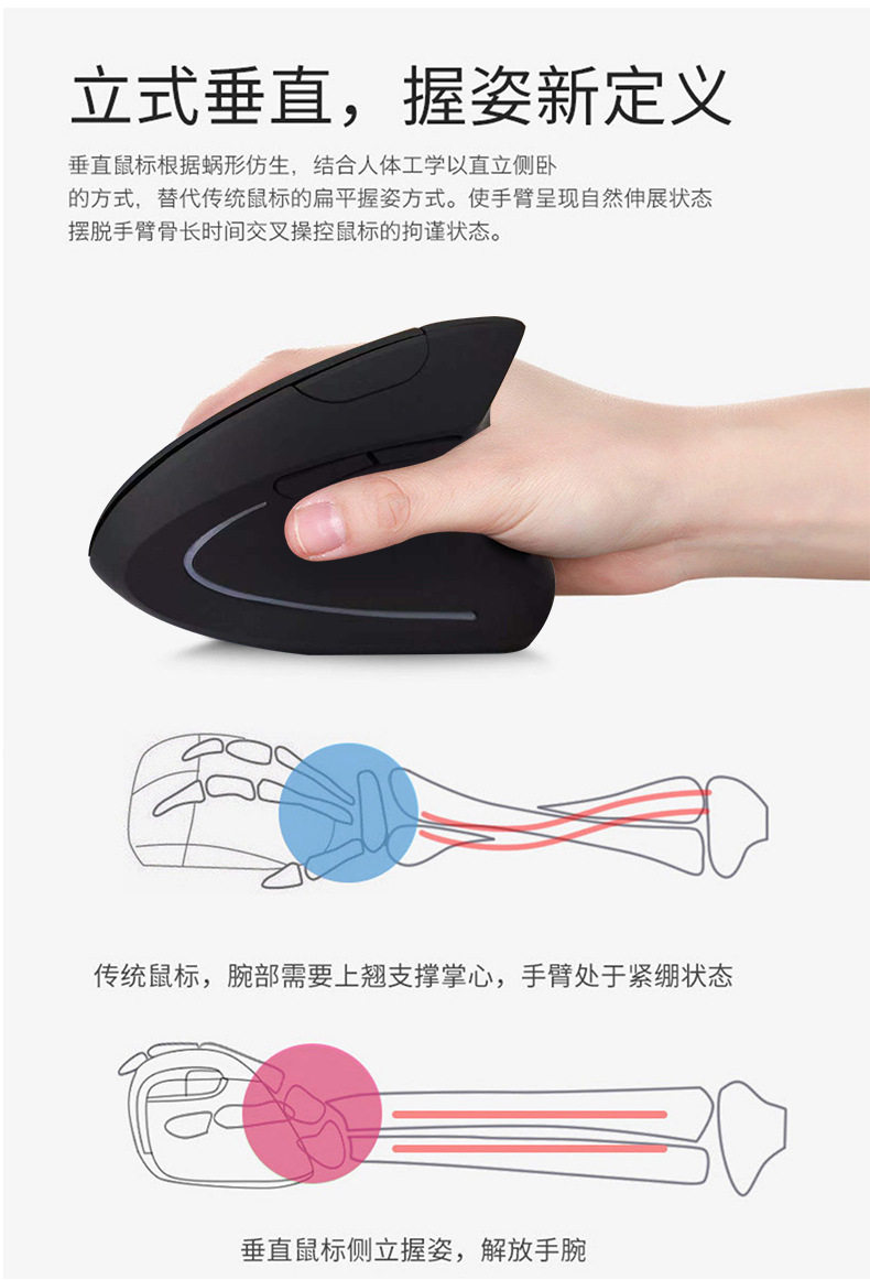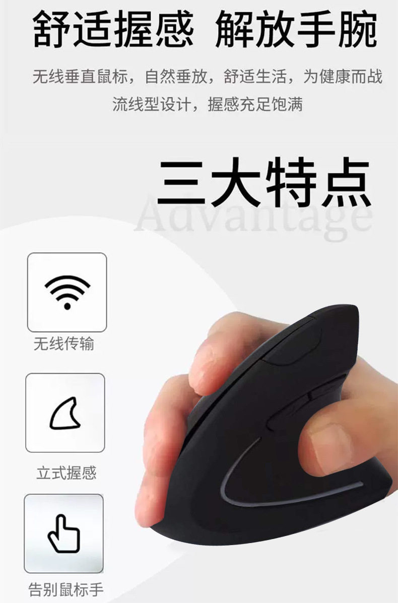 Factory in stock vertical wireless mouse wholesale grip cross-border e-commerce creative left and right hand charging optical mouse