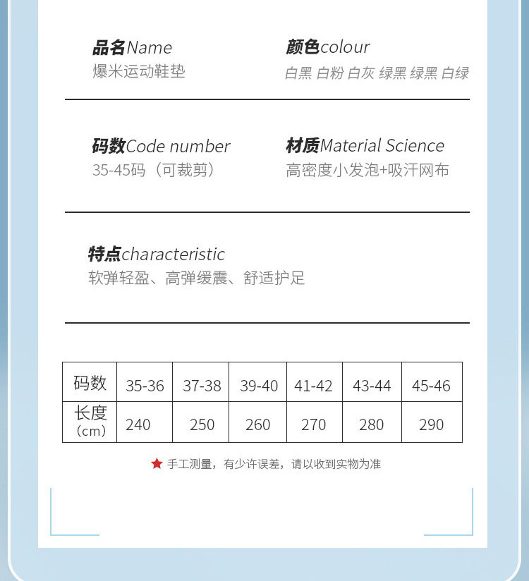 | Insole size | 35,36,39,38,40,41,42,43,44,45,46,37 |