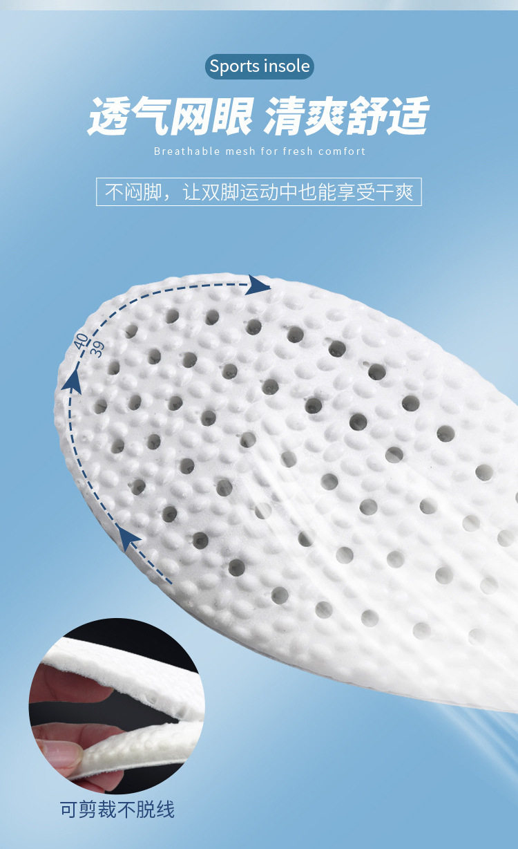 Feeling super soft insoles for men and women sports running insoles shock absorption breathable sweat-absorbent deodorant comfortable insoles wholesale