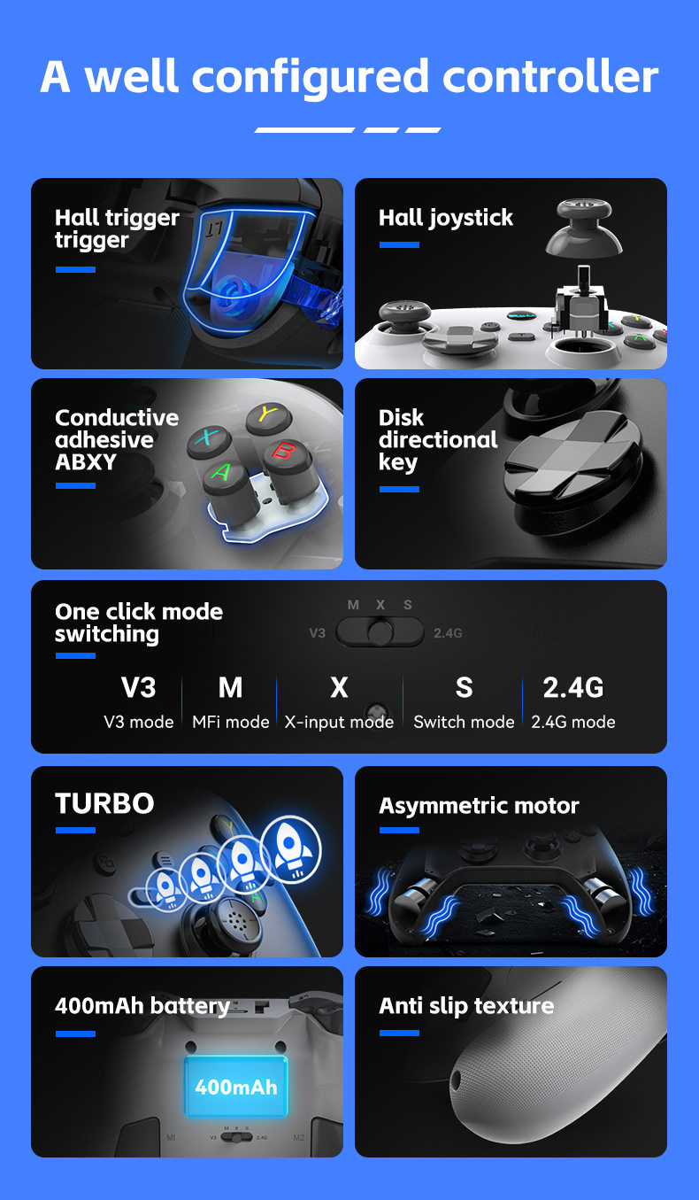 New G6 wireless game handle dual Hall vibration somatosensory burst Switch Android IOS/PC Bluetooth handle