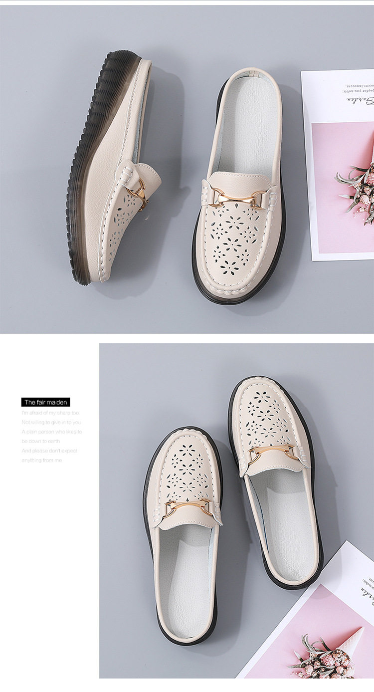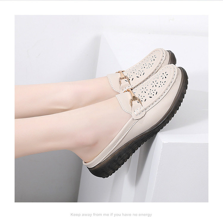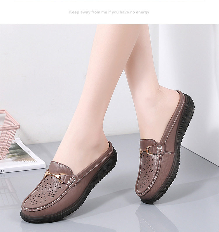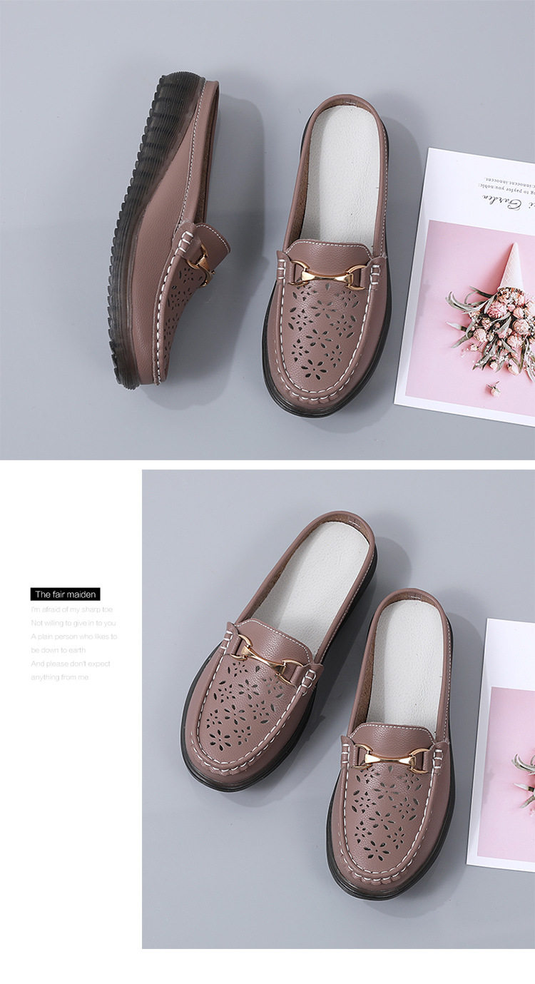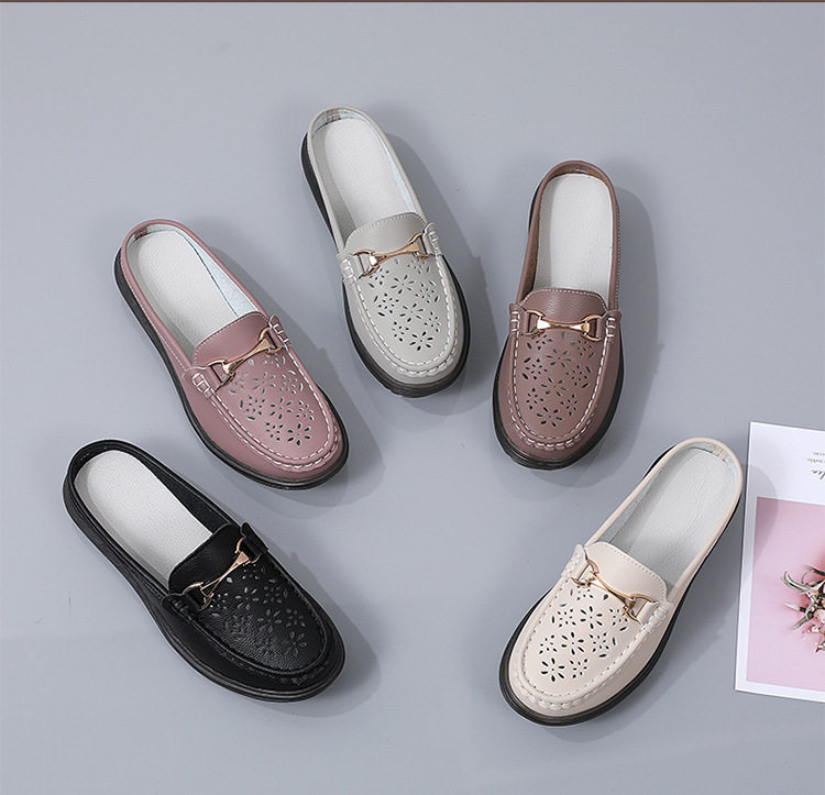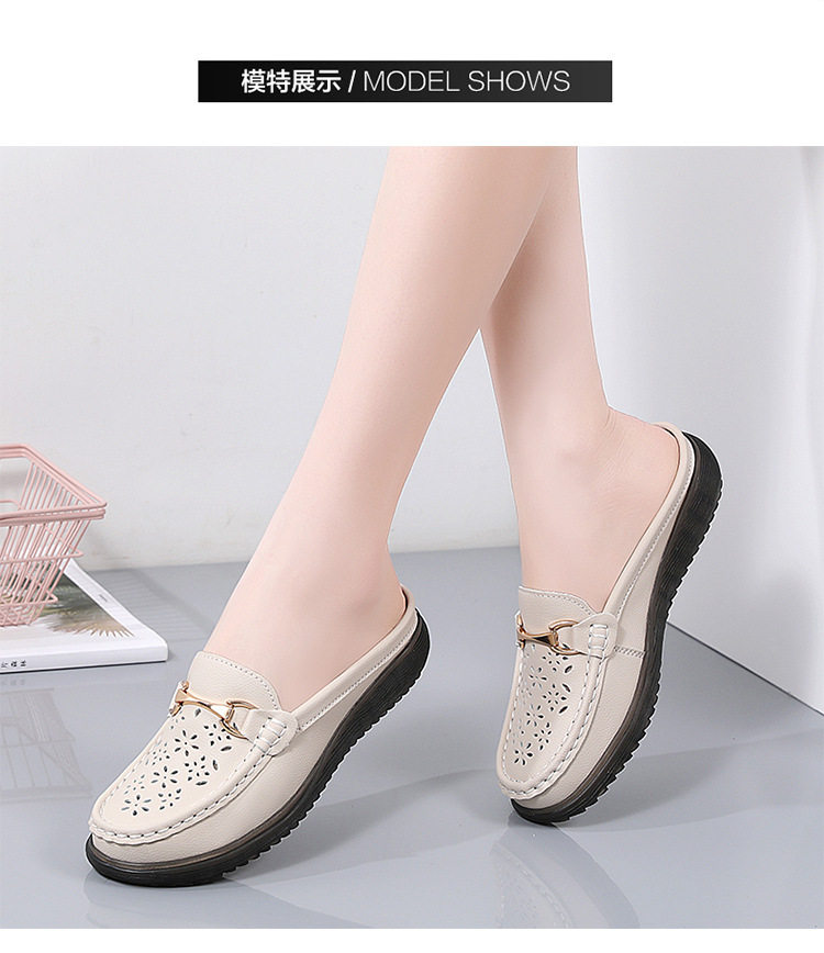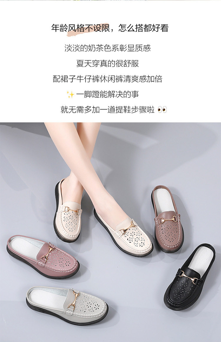 Spring and Summer Hollow Flat Bottom Baotou Slippers Comfortable plus size Moms Shoes Slip-on Loafers Women's Shoes