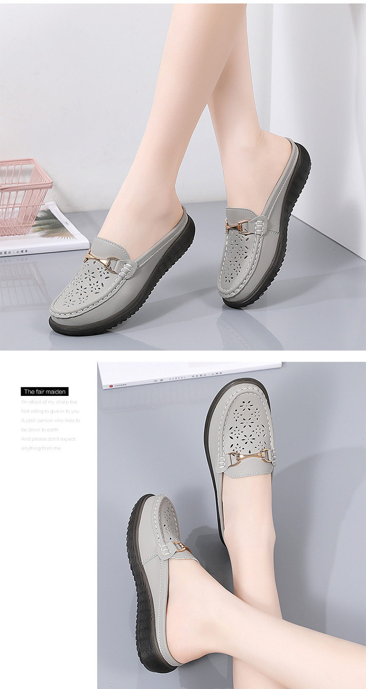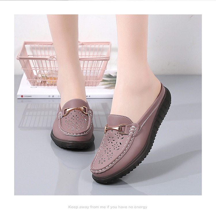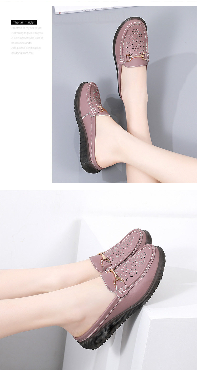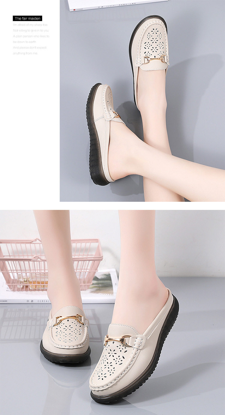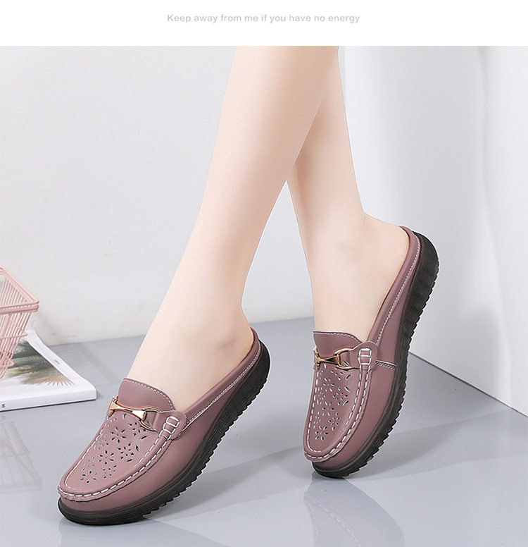 Spring and Summer Hollow Flat Bottom Baotou Slippers Comfortable plus size Moms Shoes Slip-on Loafers Women's Shoes