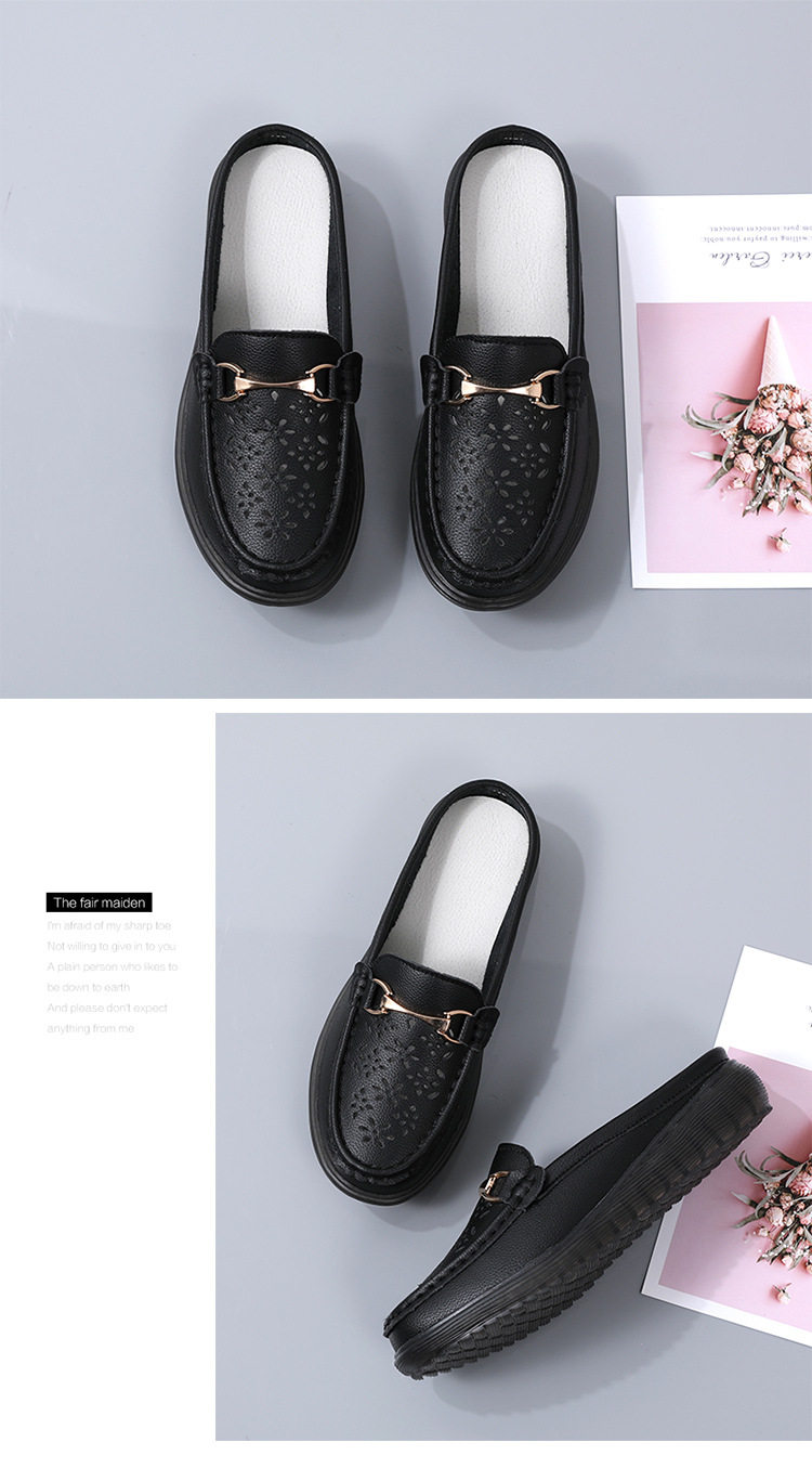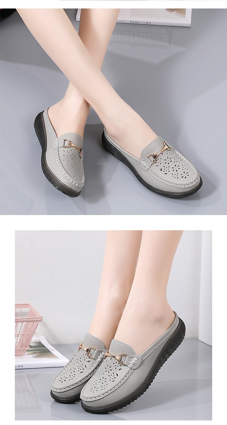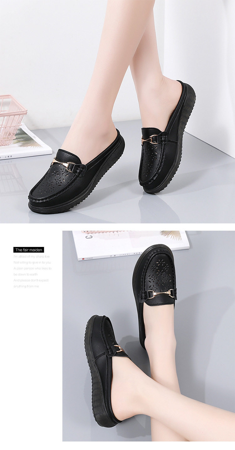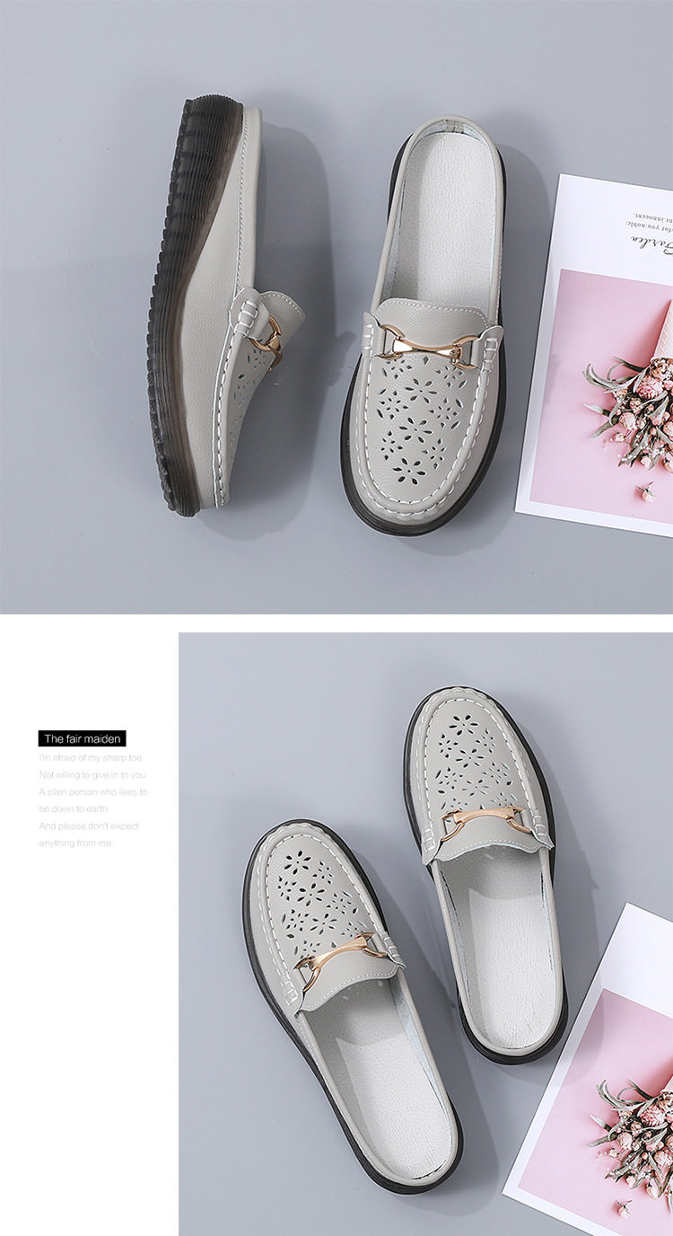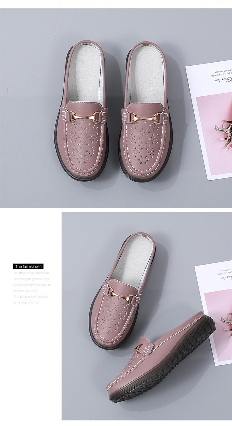 Spring and Summer Hollow Flat Bottom Baotou Slippers Comfortable plus size Moms Shoes Slip-on Loafers Women's Shoes