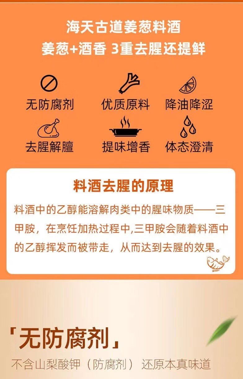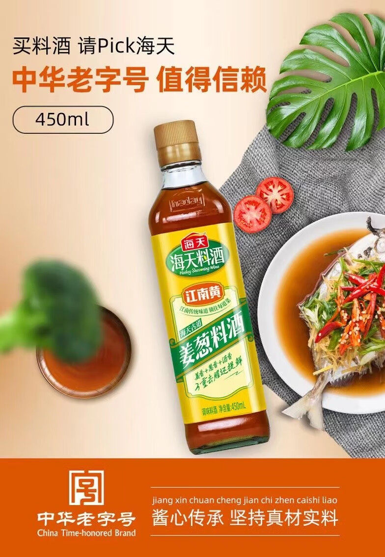 Haitian Ancient Road Ginger Onion Cooking Wine 450ml Bottle Stir-fried Vegetable Stewed Fish Stewed Meat Deodorizing Diet Seasoning Whole Box
