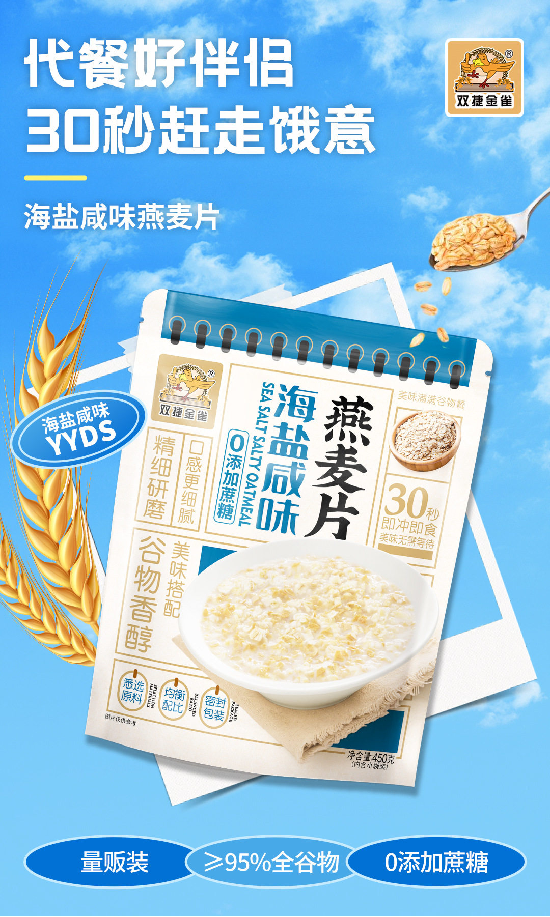 Shuangjie Jinque Sea Salt Salty Oatmeal Oatmeal Drink Instant Nutrition Student Instant Taste Lazy Breakfast