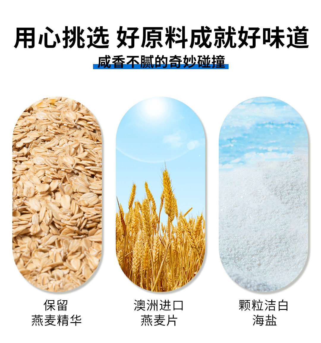 | Packaging specifications | Sea salt salty oatmeal 450g*1 bag,Sea salt salty oatmeal 450g*2 bags,Sea salt salty oatmeal 450g*3 bags |