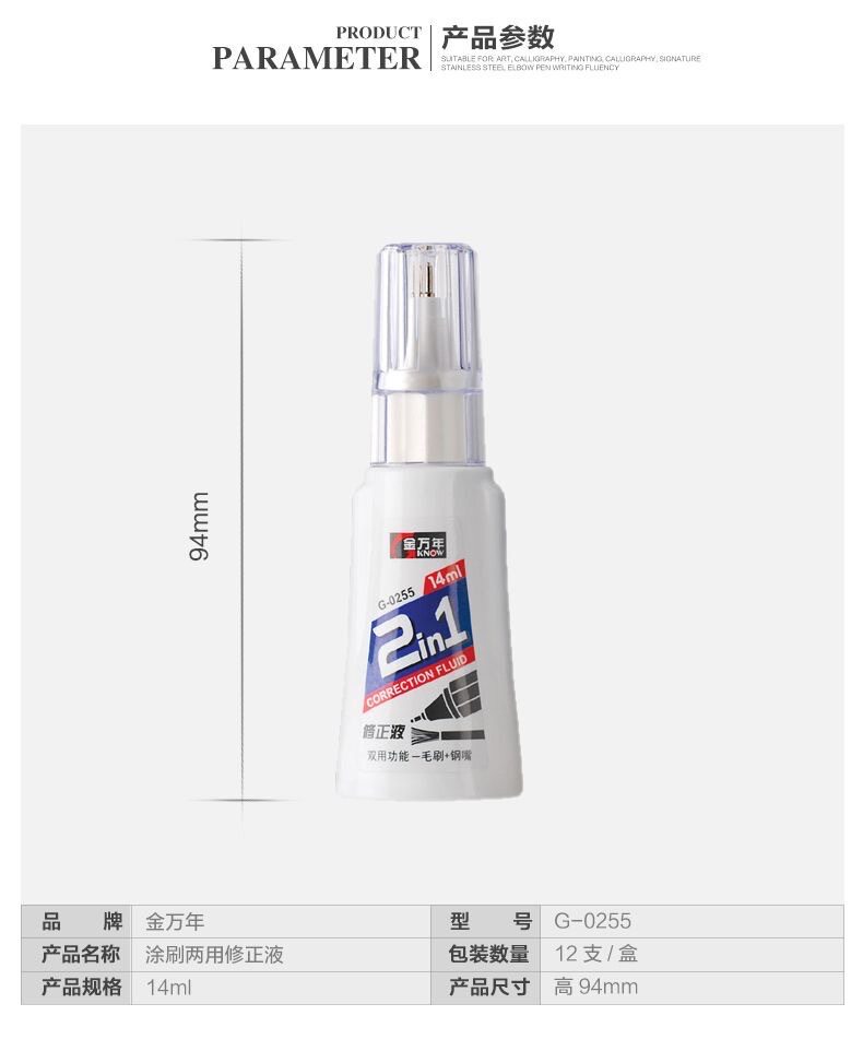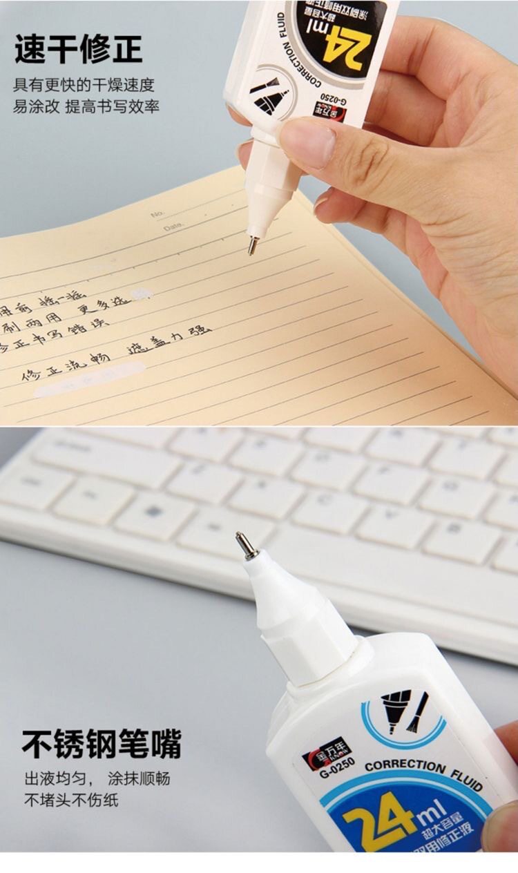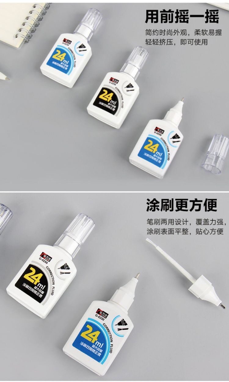 | Specifications | 24ml dual-purpose painting 0250,14ml dual-purpose coating 0255,12ml pen type correction fluid 0246a |