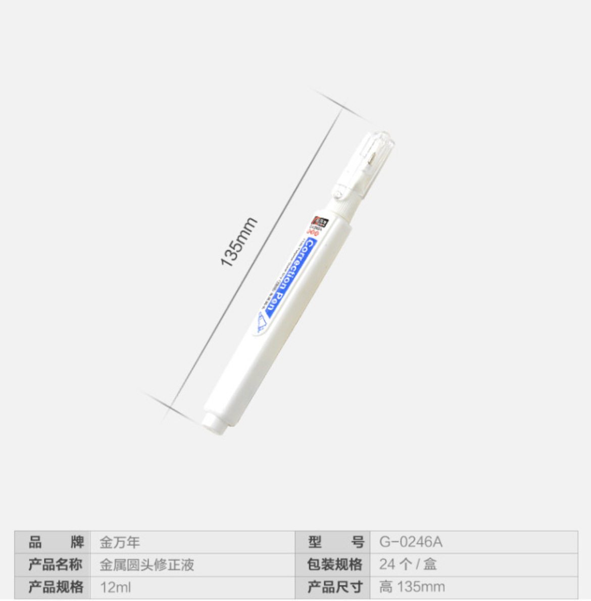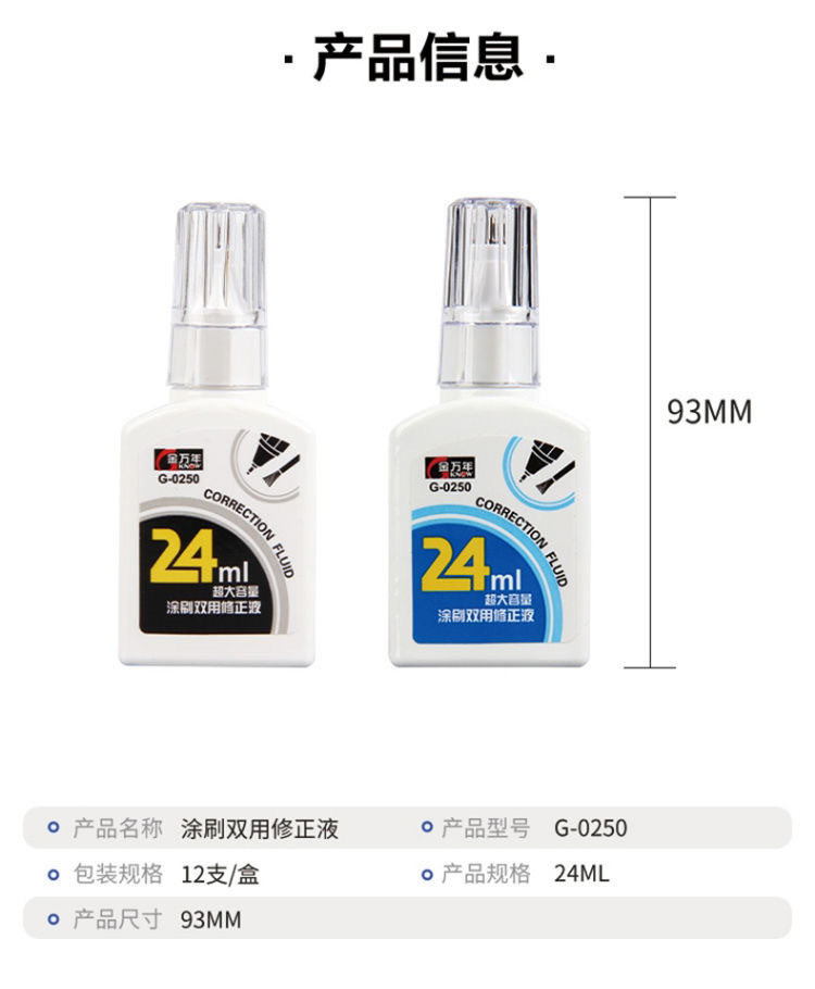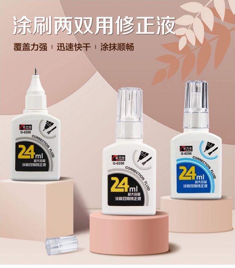 Jin Wannian correction fluid 24ml large capacity student correction fluid metal round head correction fluid G-0250 brush dual-purpose