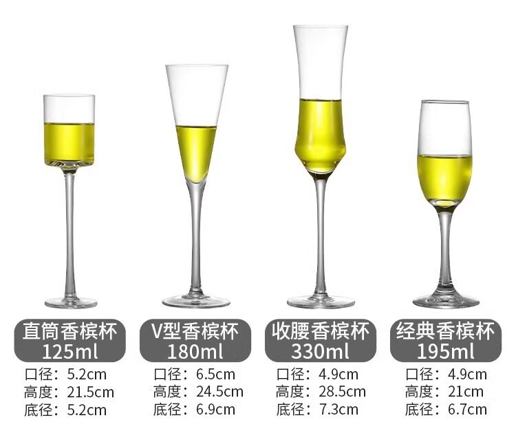 | Color | Slanted champagne glass [170ml],Straight champagne glass [195ml],Flute-shaped champagne glass [210ml],Best friend champagne glass [150ml],Tulip champagne glass [240ml],Small times champagne glass [270ml],Waist-cinching champagne glass [330ml],V-shaped champagne glass [180ml],Classic champagne glass [195ml] |