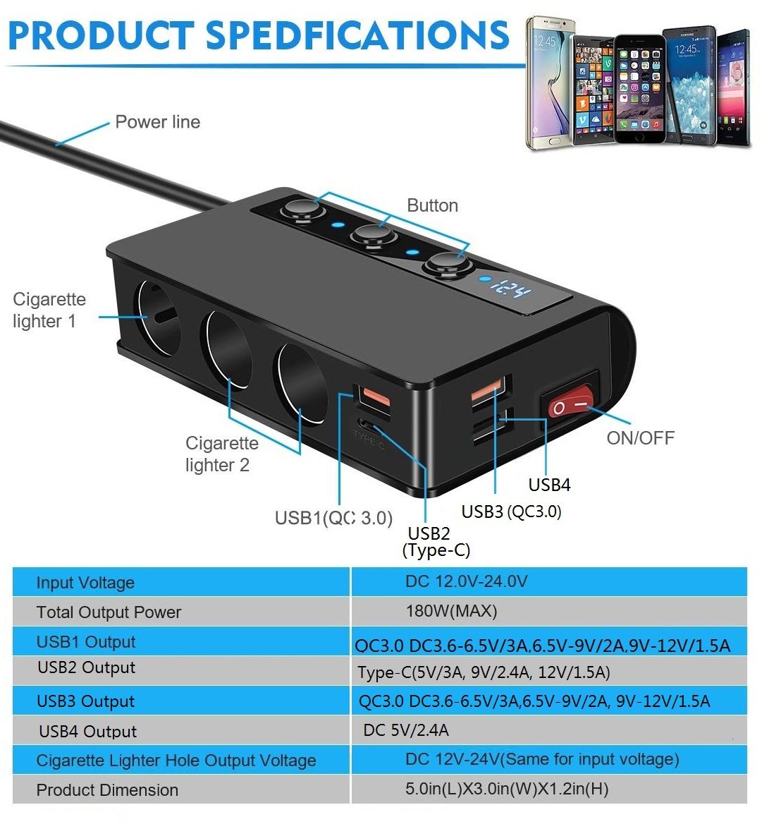 | Type | One to three cigarette lighter |