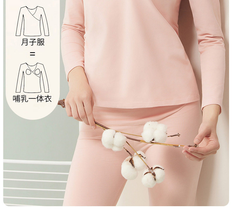 Pregnant Women's Autumn Clothes and Pants suit Pure Cotton Nursing Warm Underwear with Chest Pad Pregnant and Postpartum Nursing Pajamas Monthly Clothing