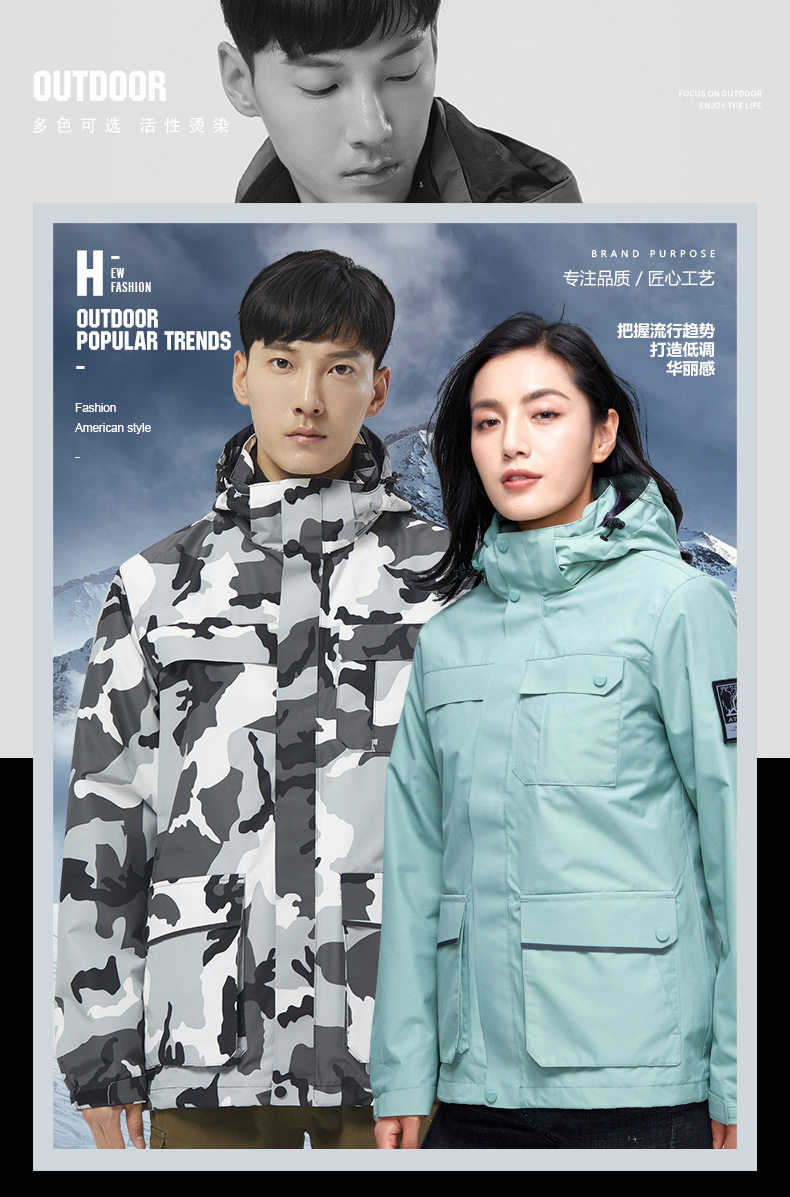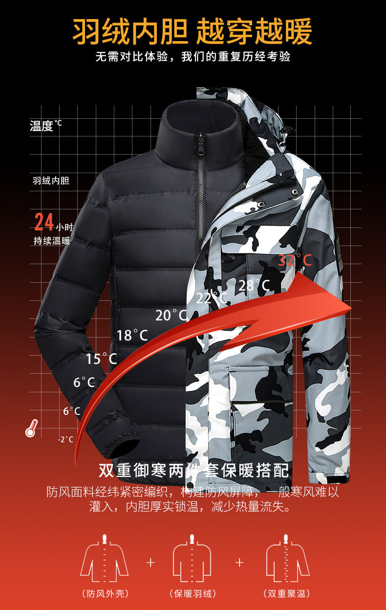 Autumn and winter group purchase selection of new down three-in-one men's outdoor sports jacket men's and women's mountaineering clothing wholesale