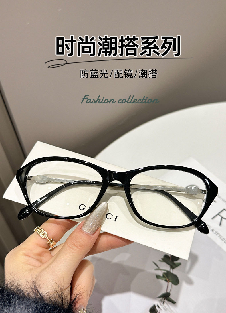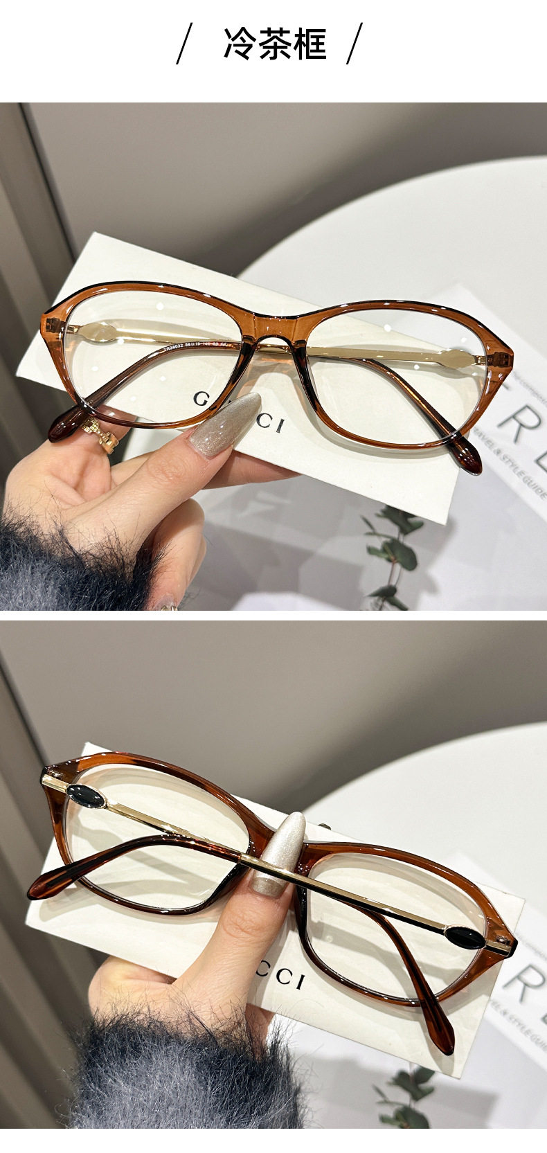Fake Korean-Style Retro Anti-Blue Light Glasses for Women with Prescription, High-End College Style Plain Cat-Eye Glasses Frame