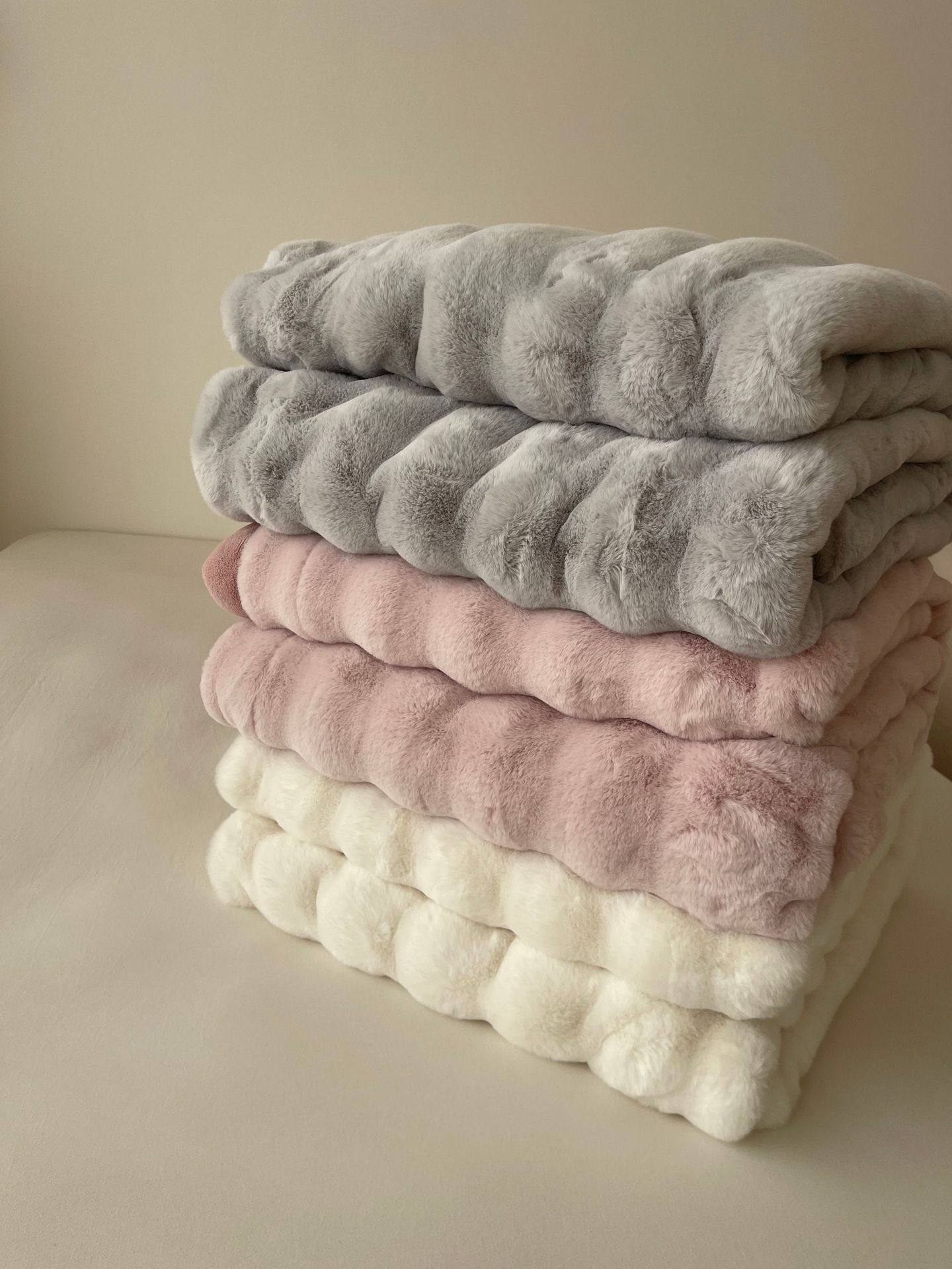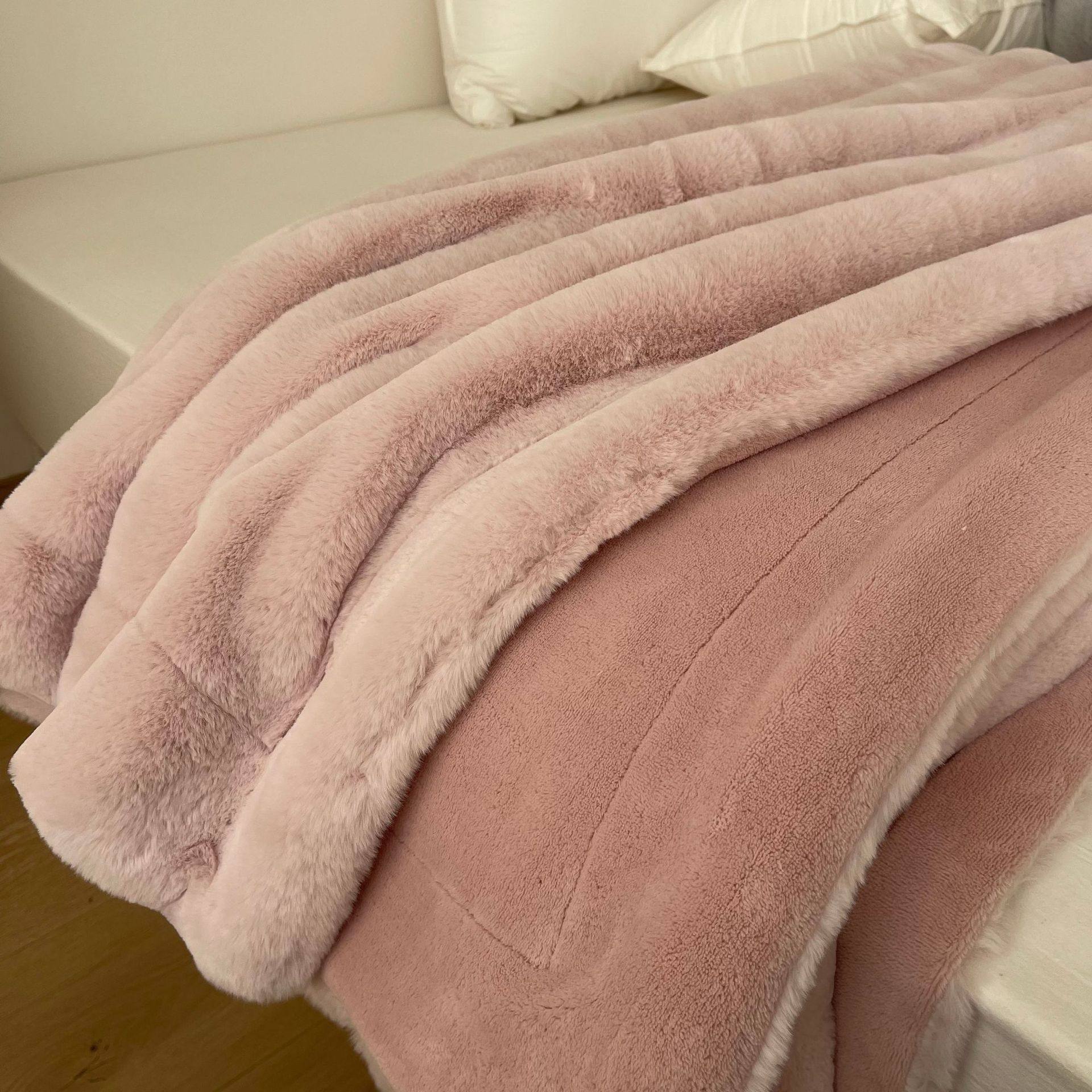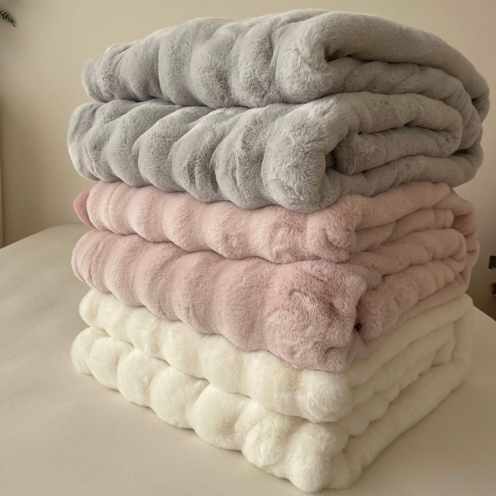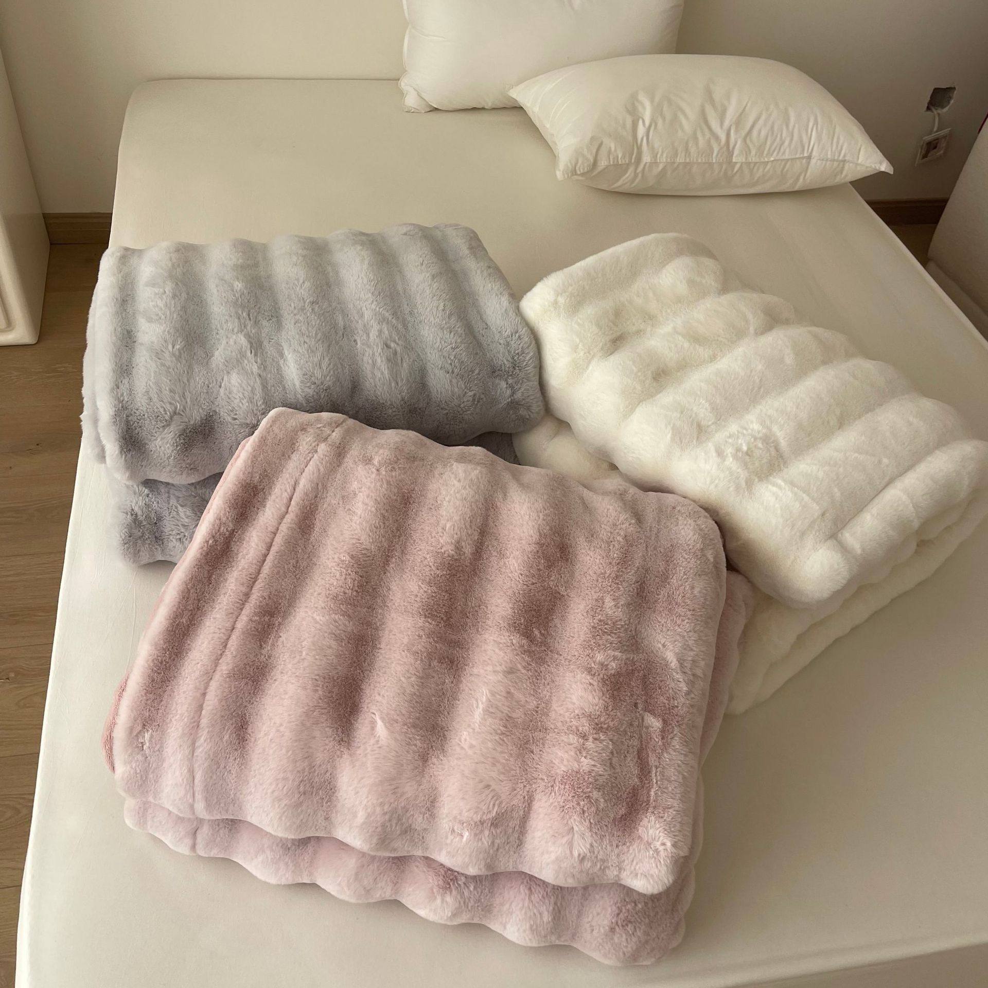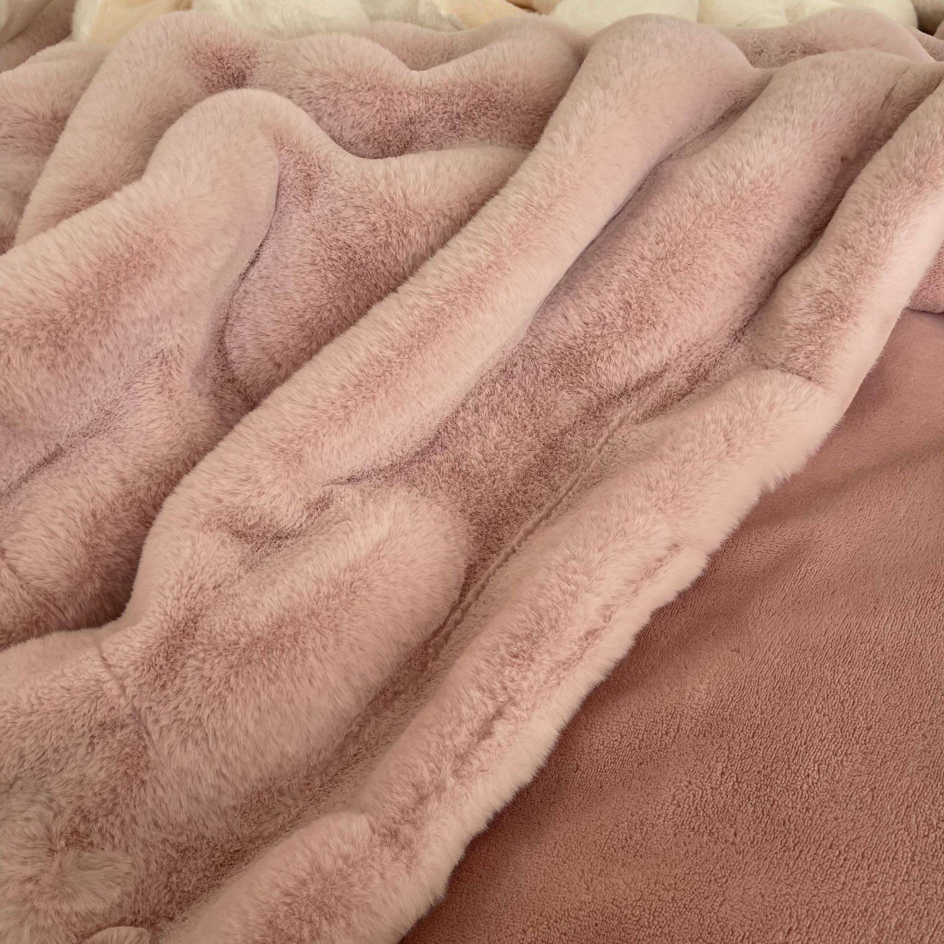 High-end Double-sided Velvet Rabbit Velvet Blanket Thickened Milk Velvet Blanket Office Nap Sofa Blanket Light Luxury Composite Blanket