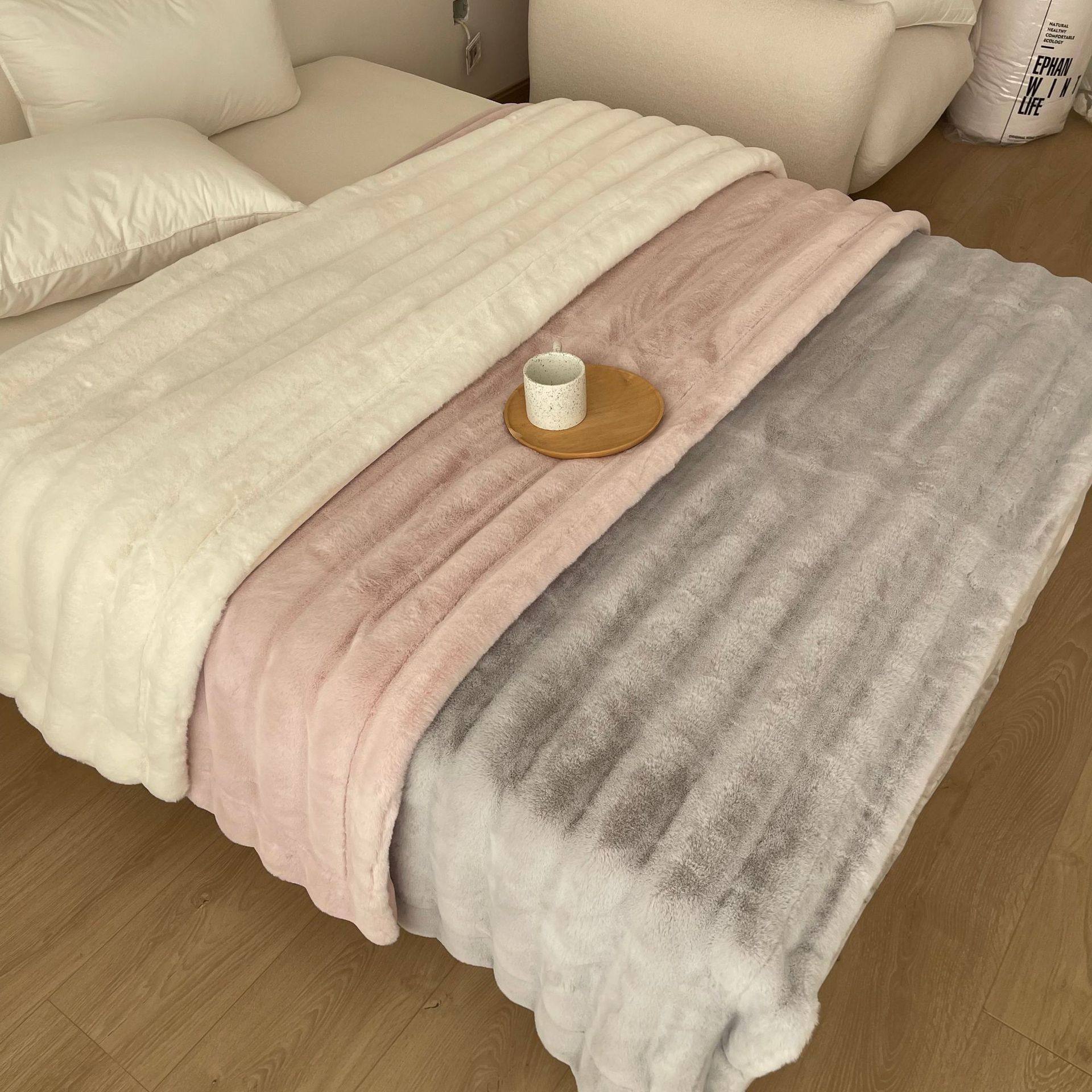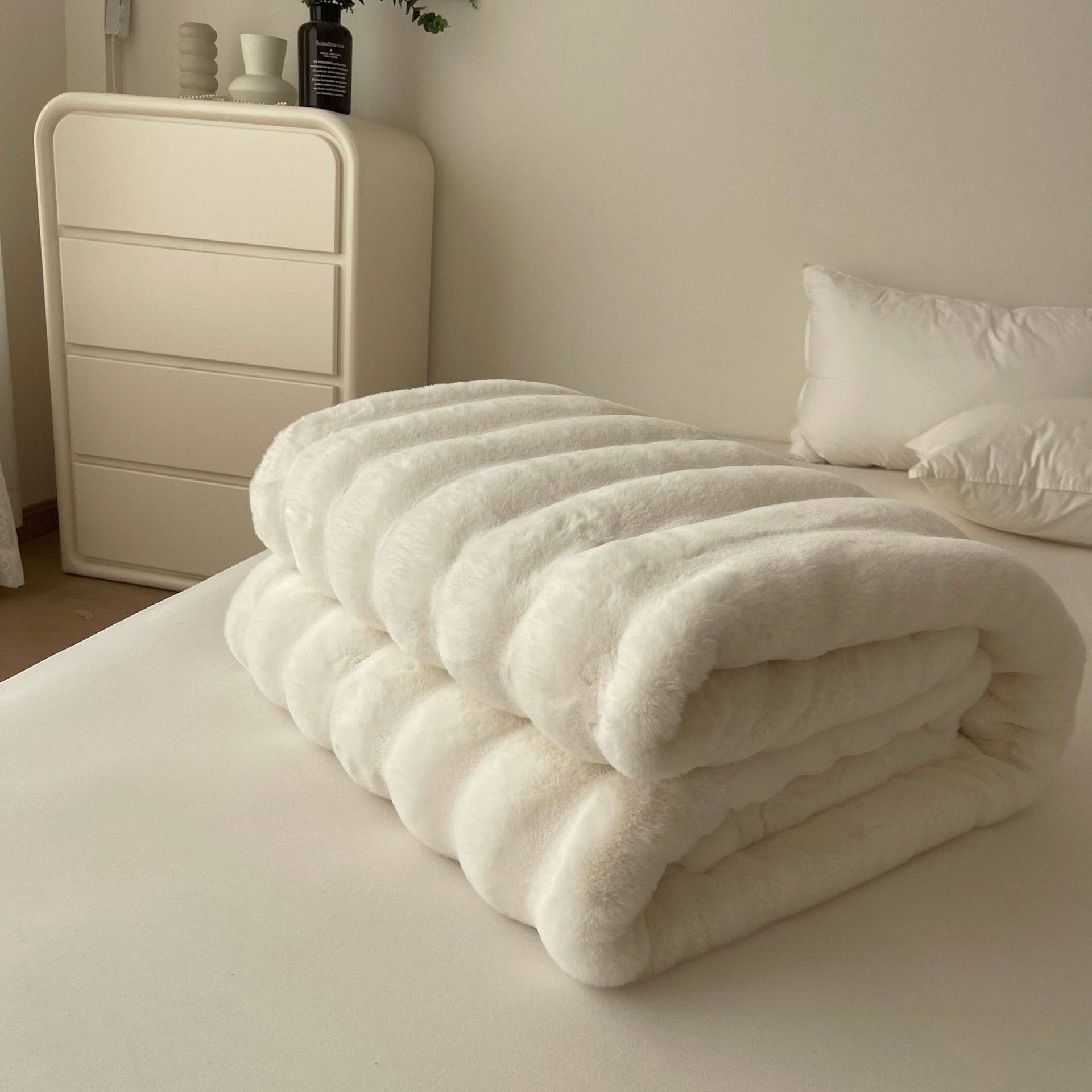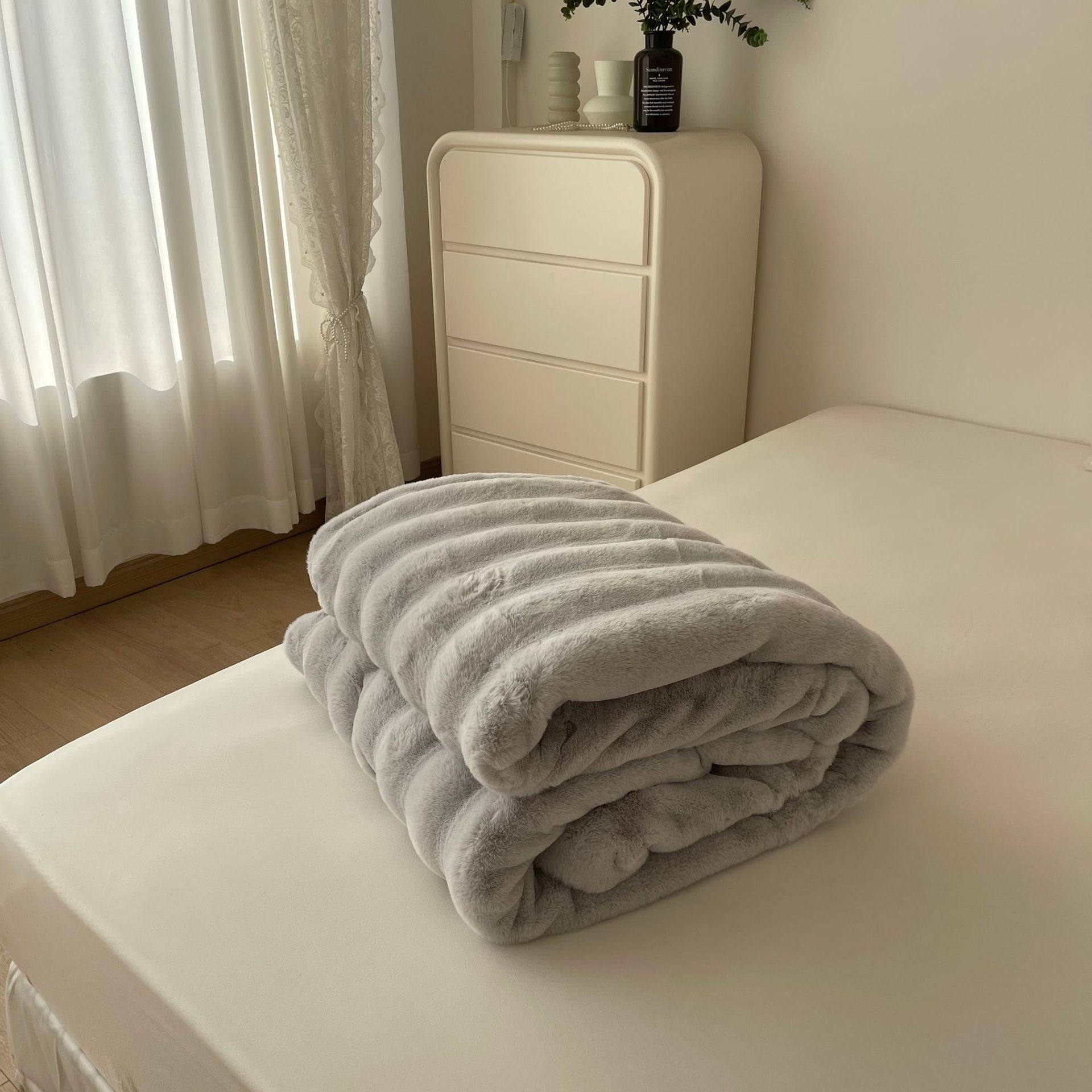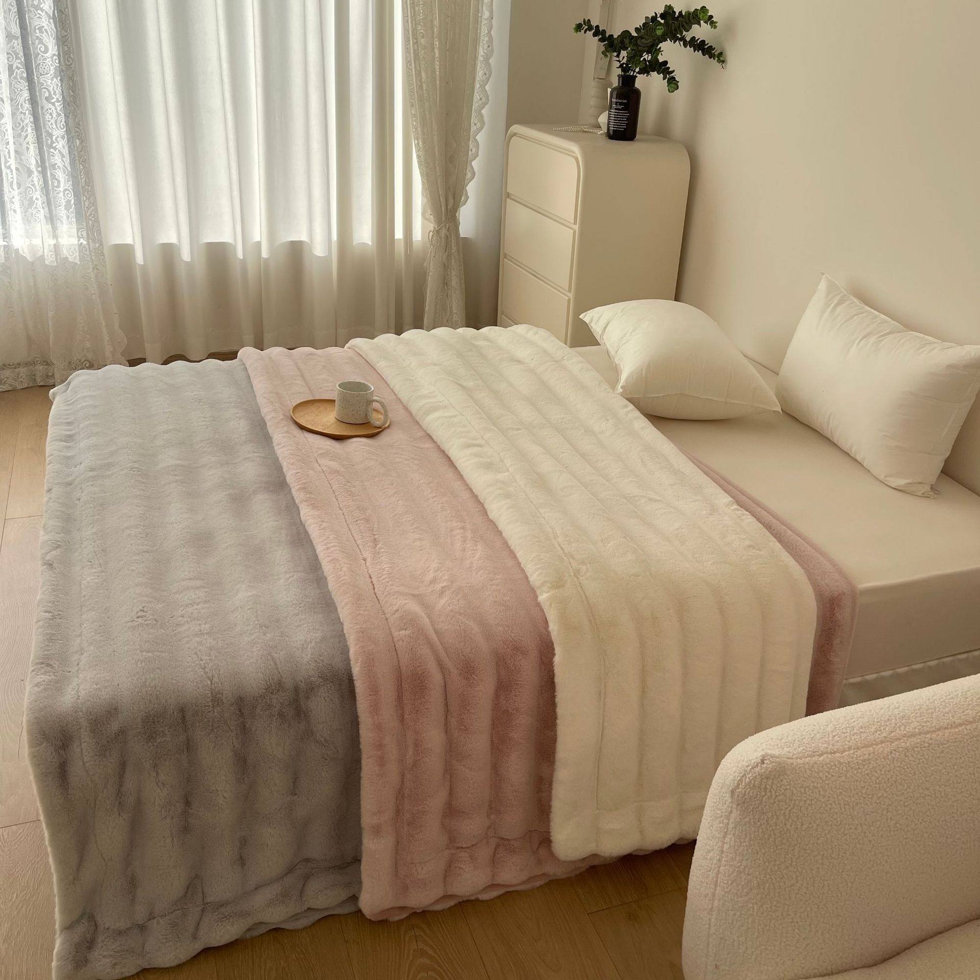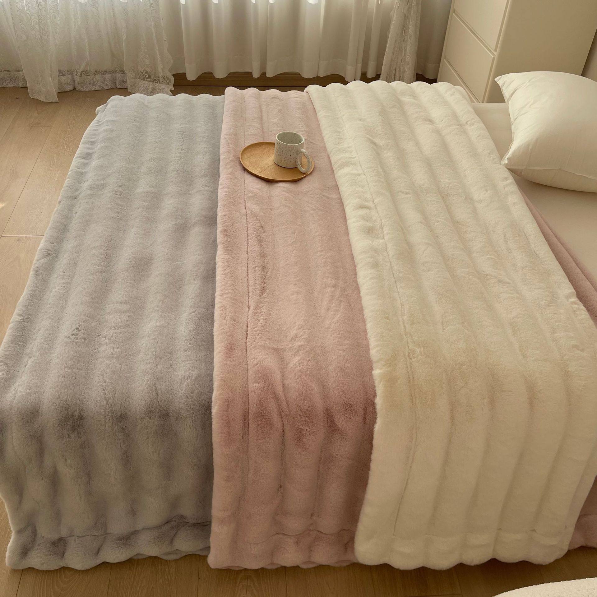 High-end Double-sided Velvet Rabbit Velvet Blanket Thickened Milk Velvet Blanket Office Nap Sofa Blanket Light Luxury Composite Blanket