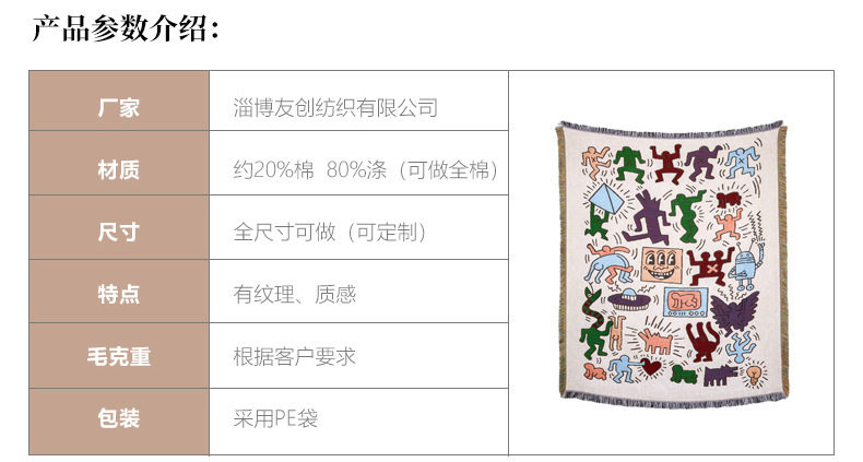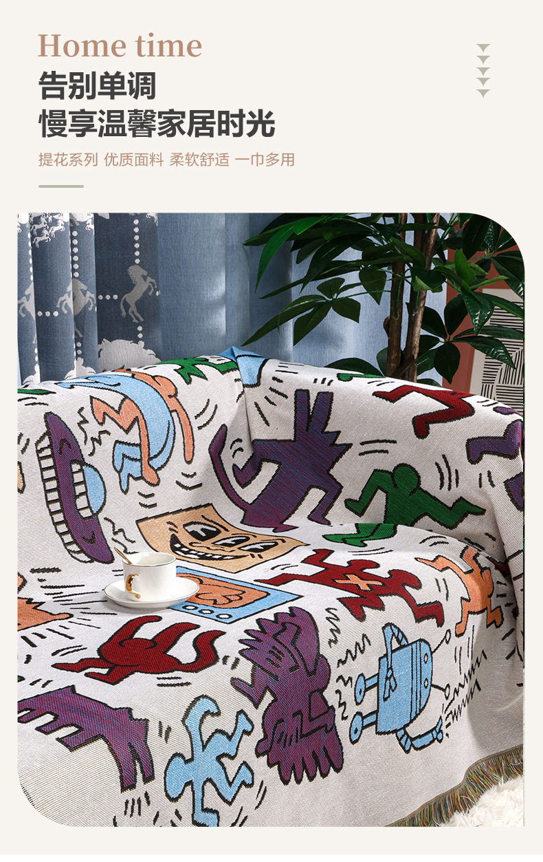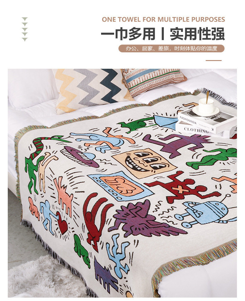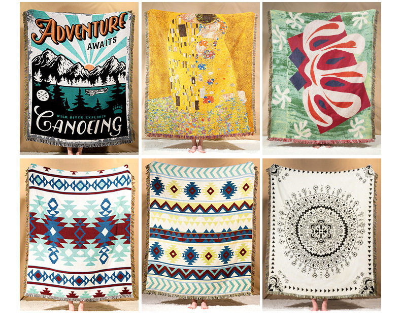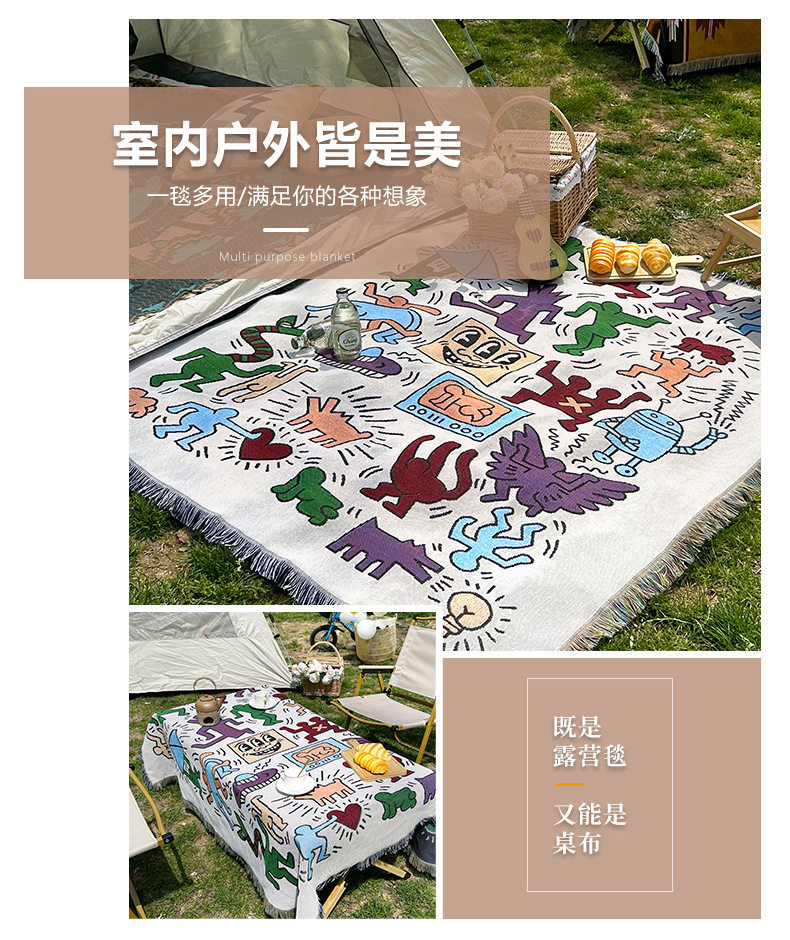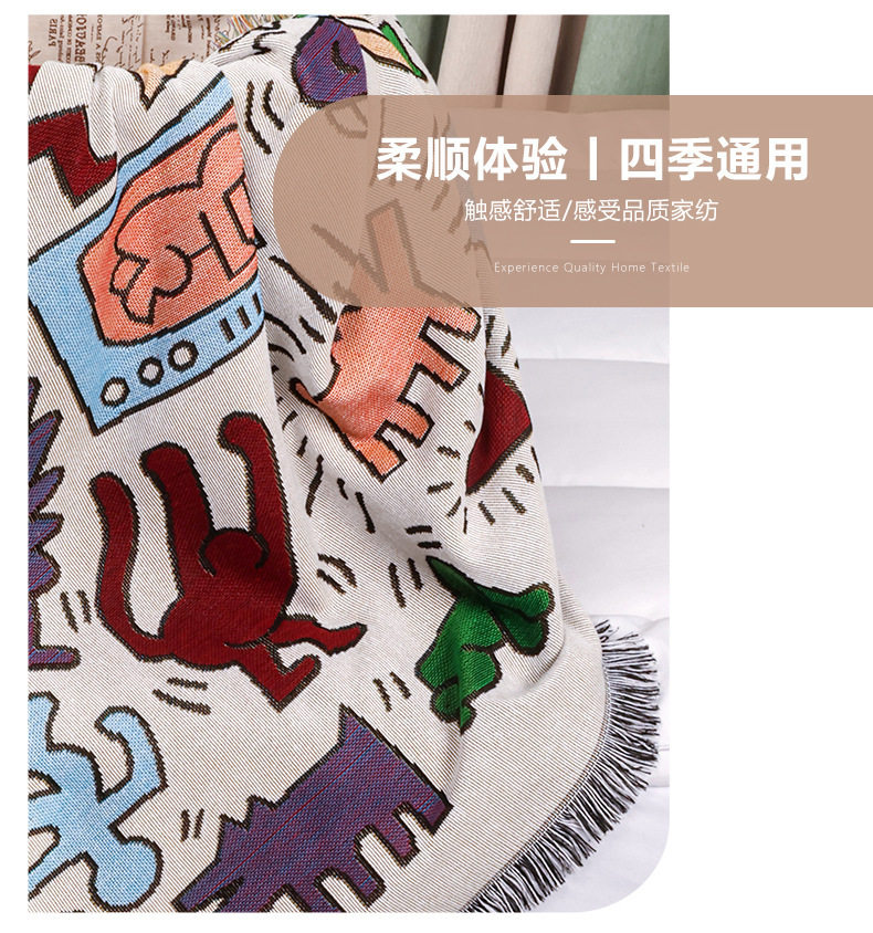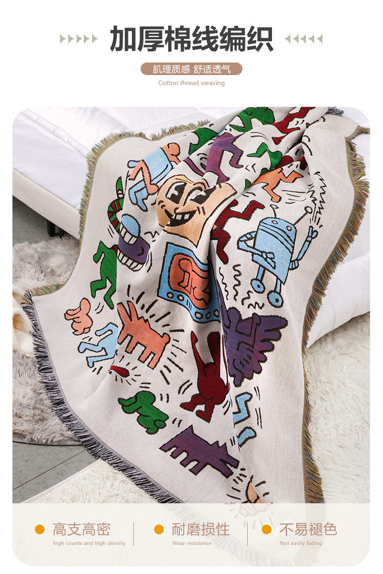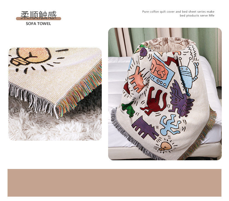 Cross-border Foreign Trade Camping Blanket Moisture-proof Camping Mat Jacquard Tapestry Cartoon Style Sofa Towel Thread Blanket Multifunctional Sofa Blanket