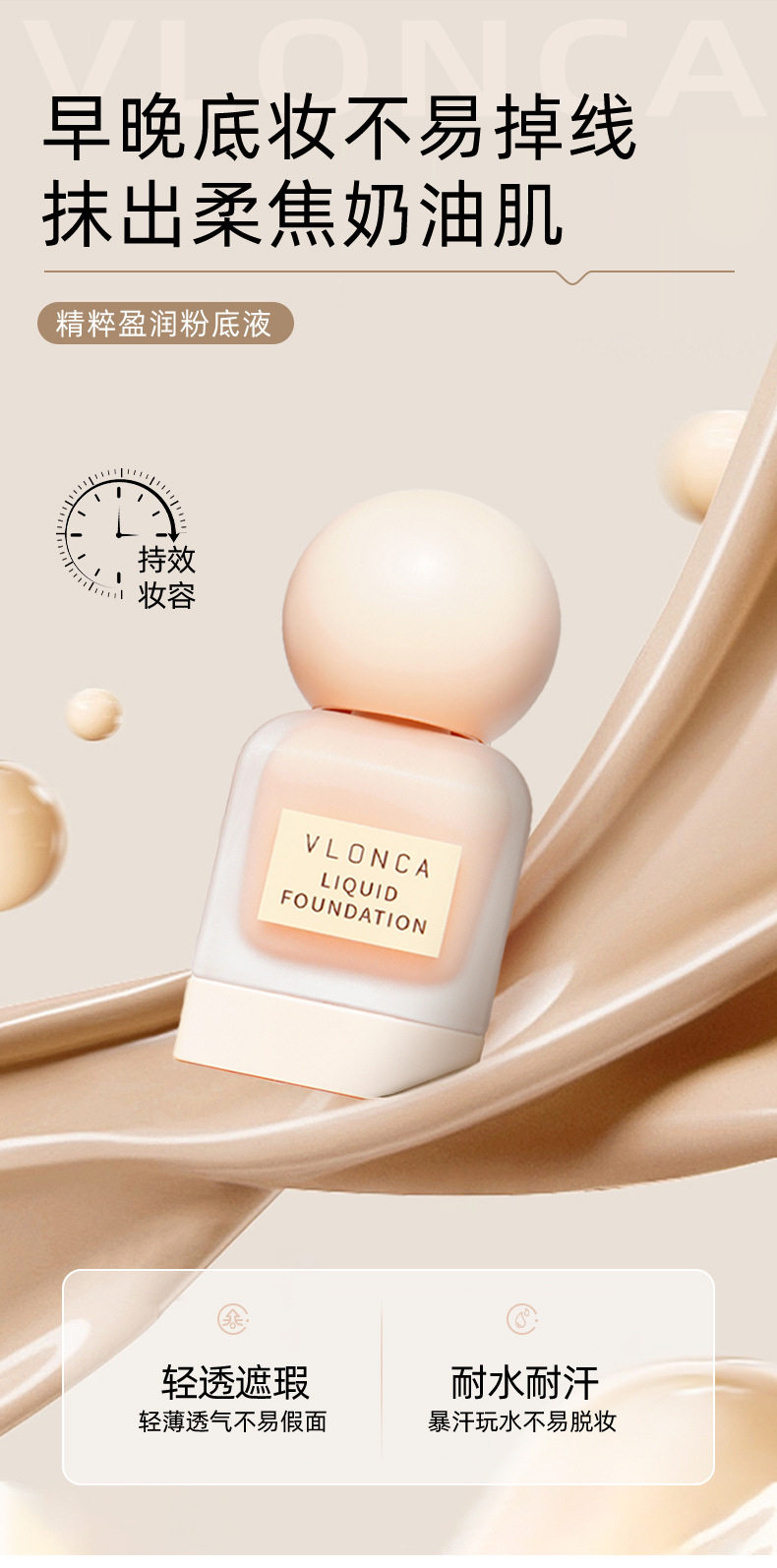 VLONC cream muscle essence holding makeup foundation liquid clear and skin nourishing foundation liquid concealer brightening does not take off makeup light and thin