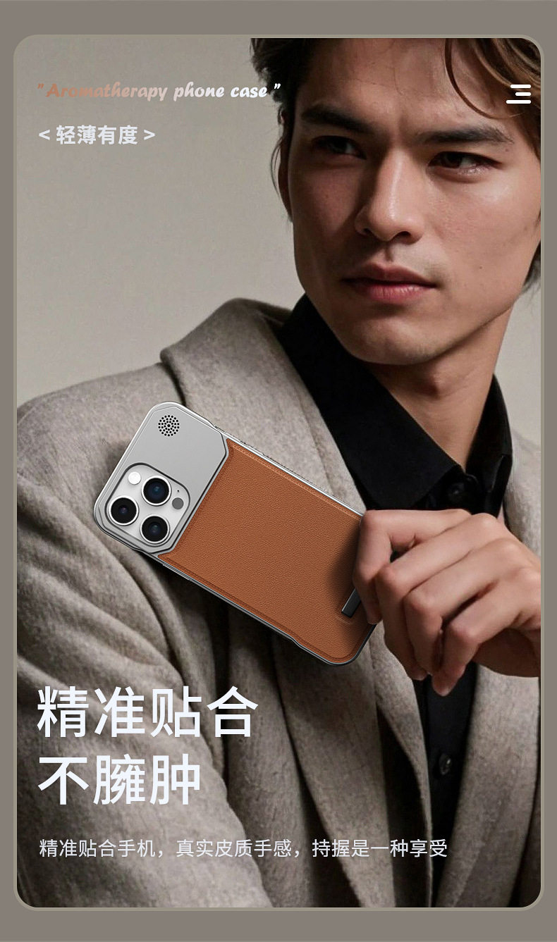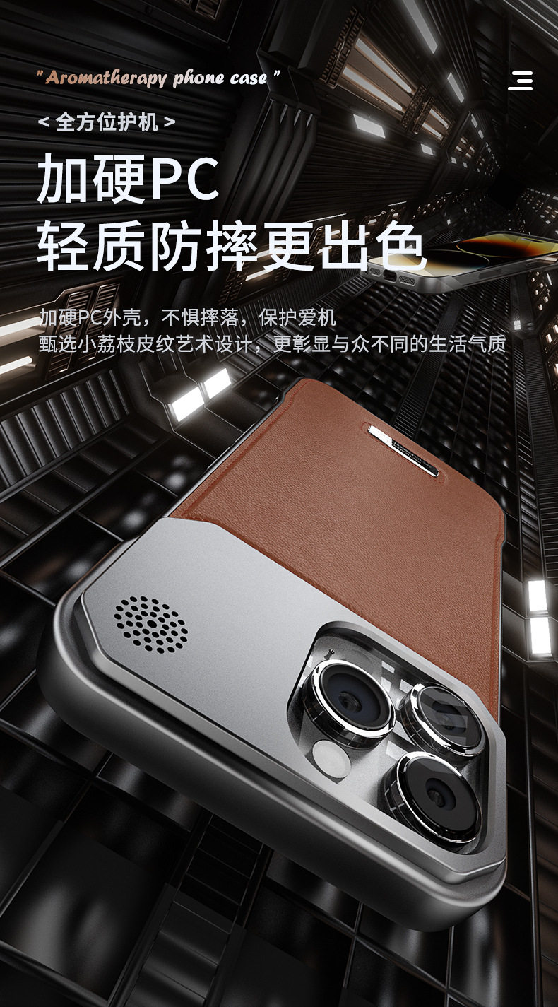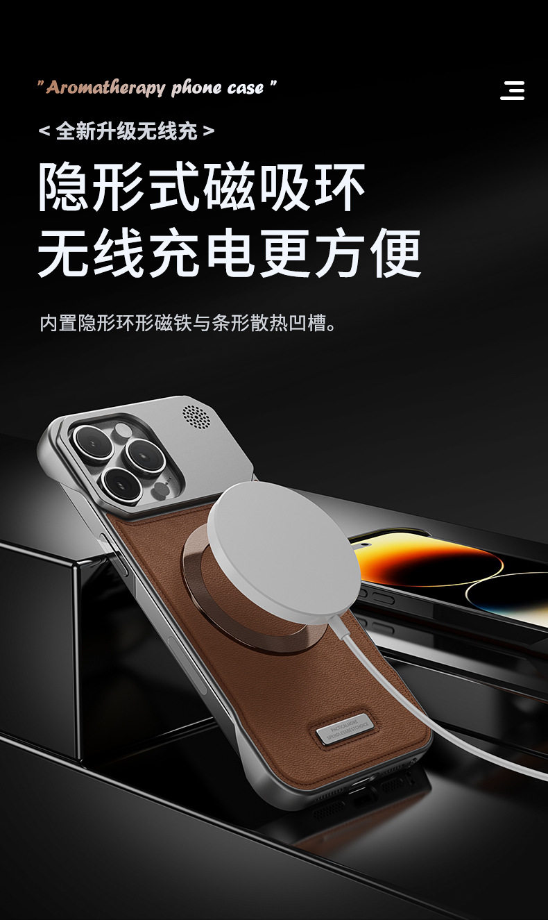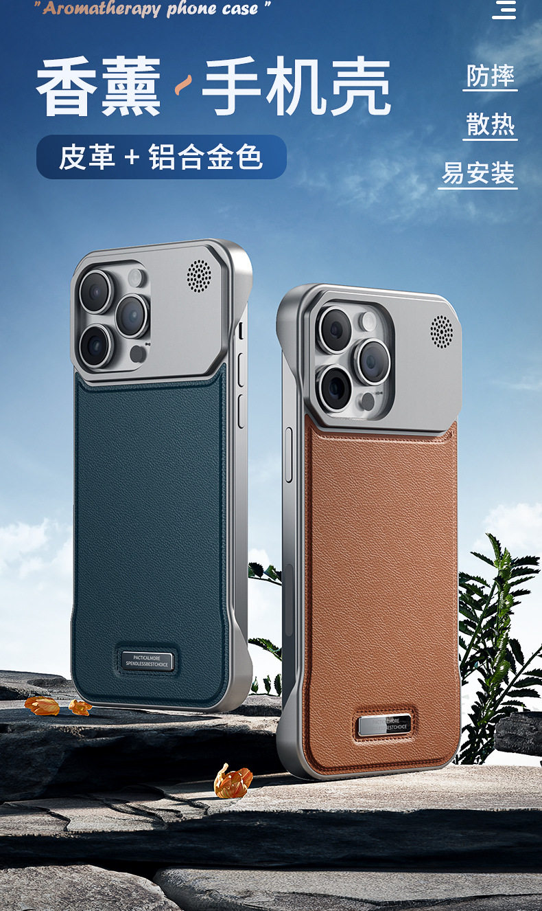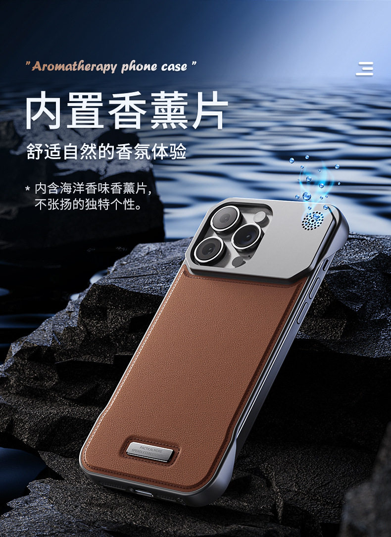 Suitable for Iphone17Pro Metal Frameless Aromatherapy Magnetic Phone Case Apple 16Pro Leather Anti-Fall Sheath