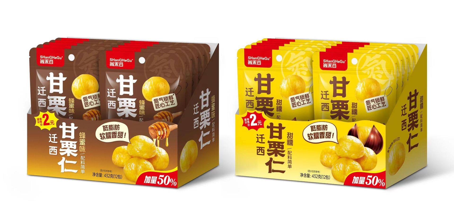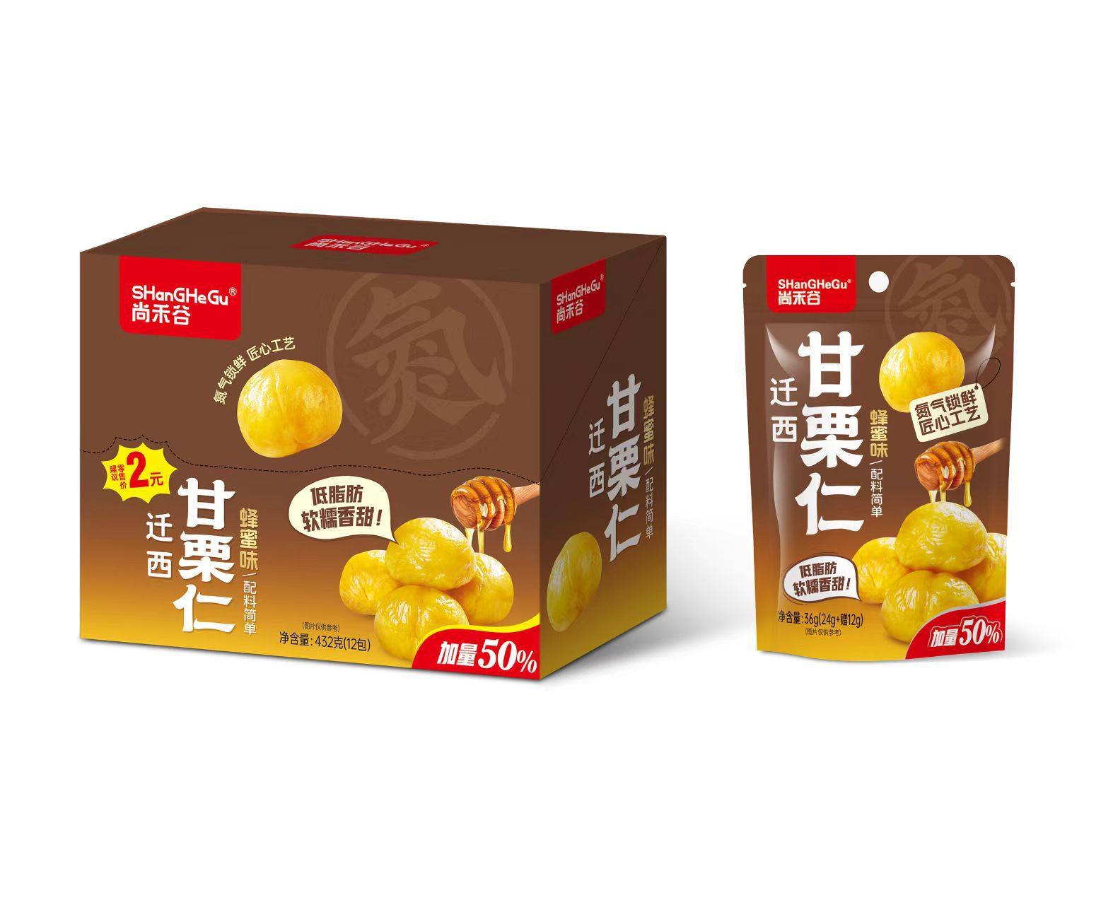 Shanghe Valley Chestnut Kernel Boxed 20 Pack Wholesale Sweet Waxy Chestnut Shelled Honey Flavor Chestnut Kernel Snacks