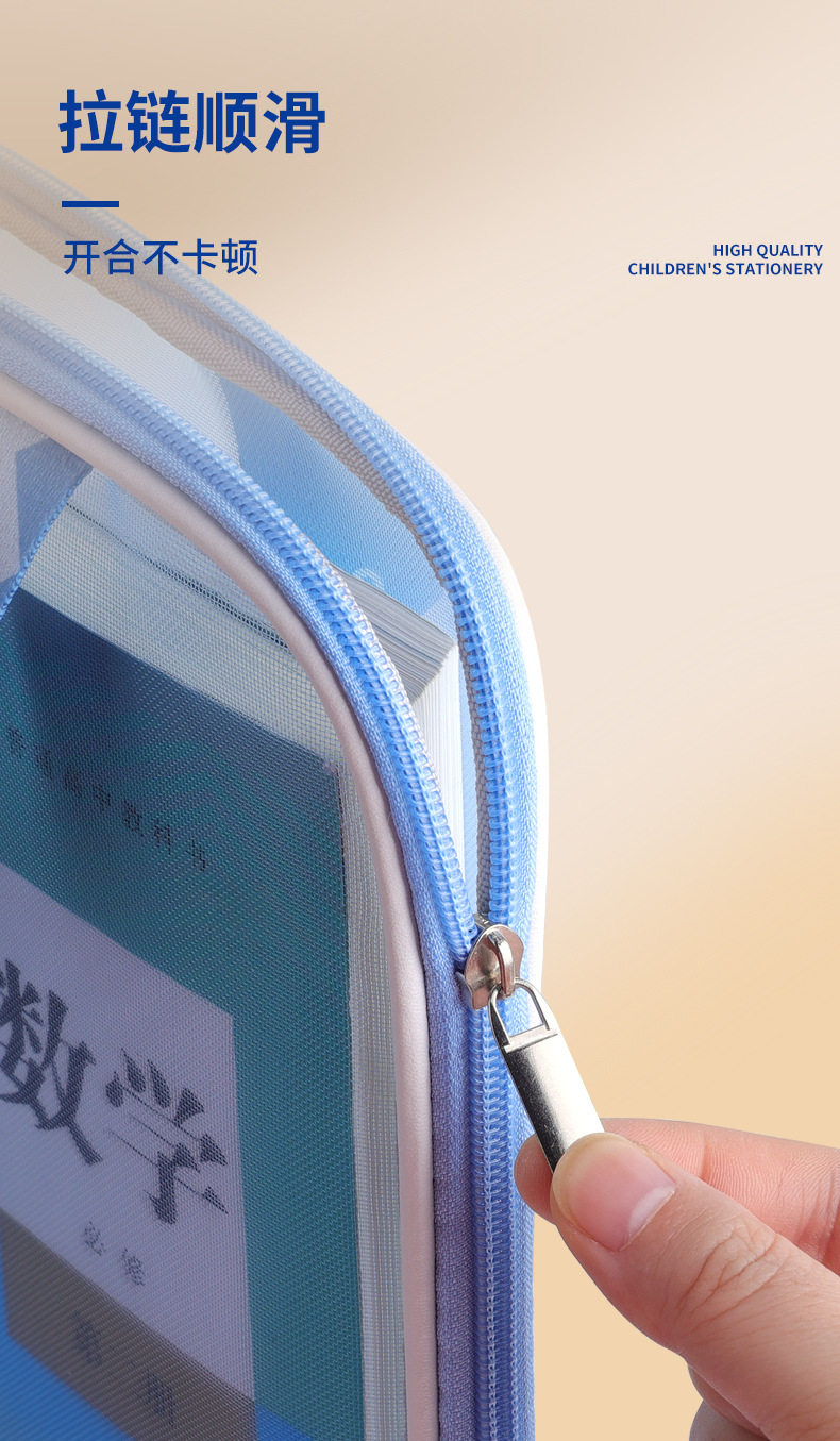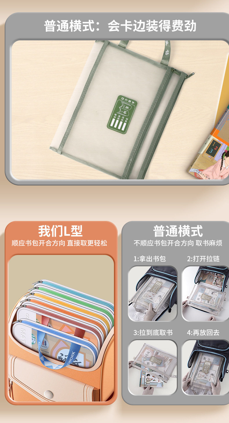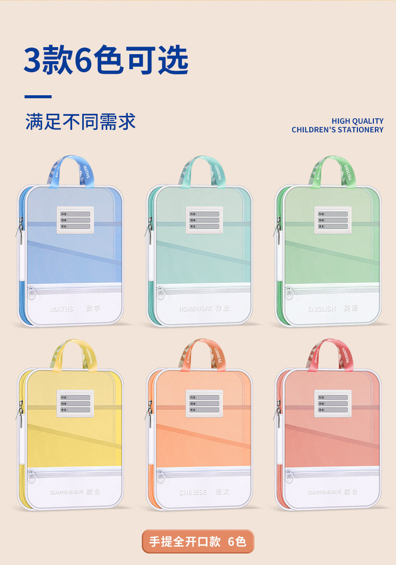 L-shaped subject classification file bag zipper type large capacity mesh multi-function storage bag student after-school tutorial bag