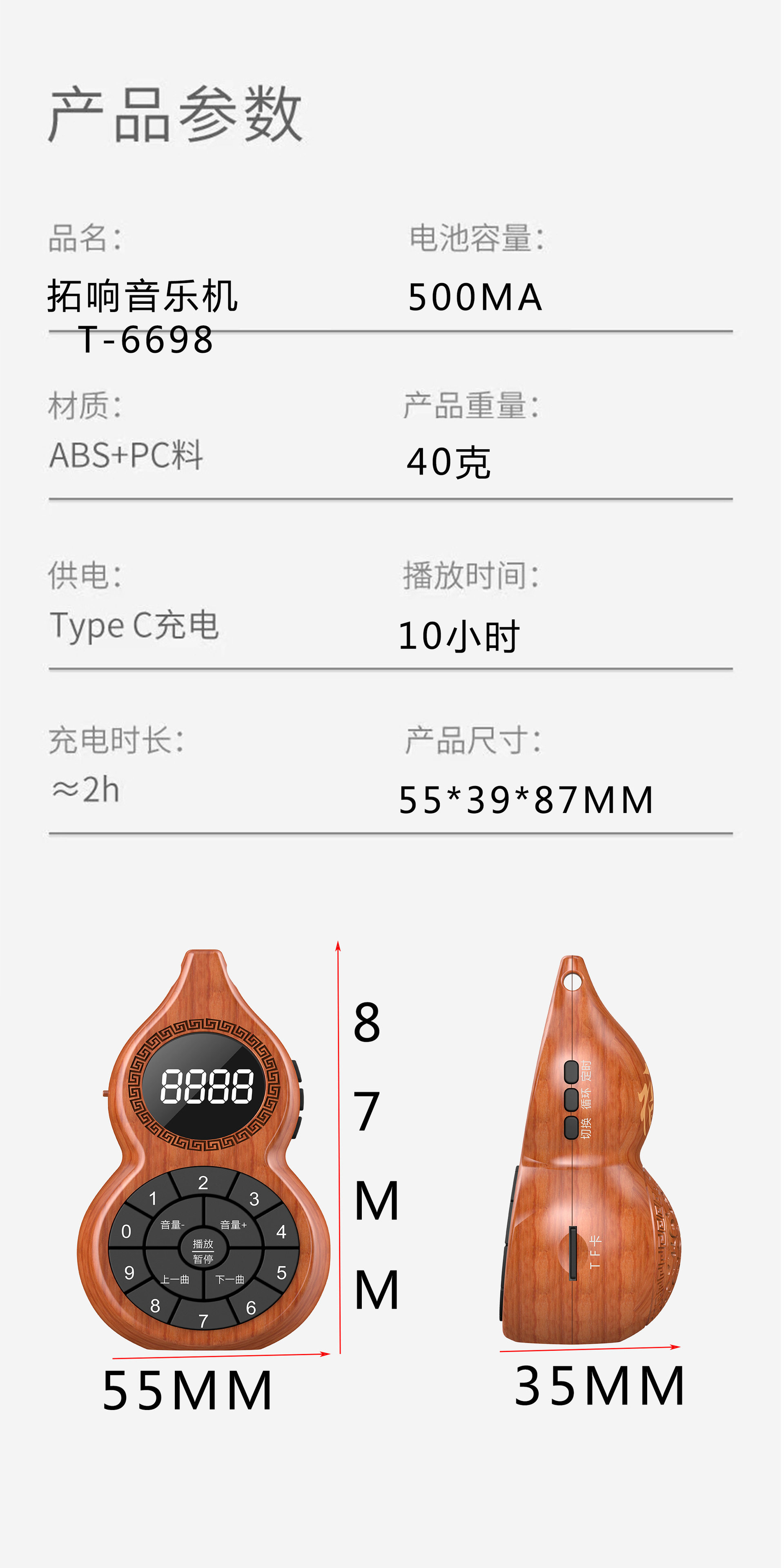 Topsing T-6698 New Hulu Bluetooth Music Player Broadcast Recorder Music Machine Mini Portable Insertable Card