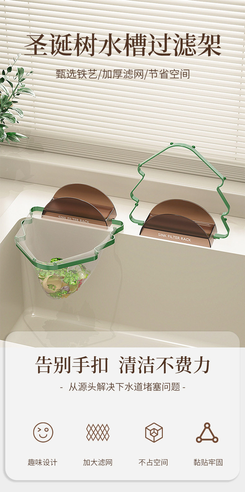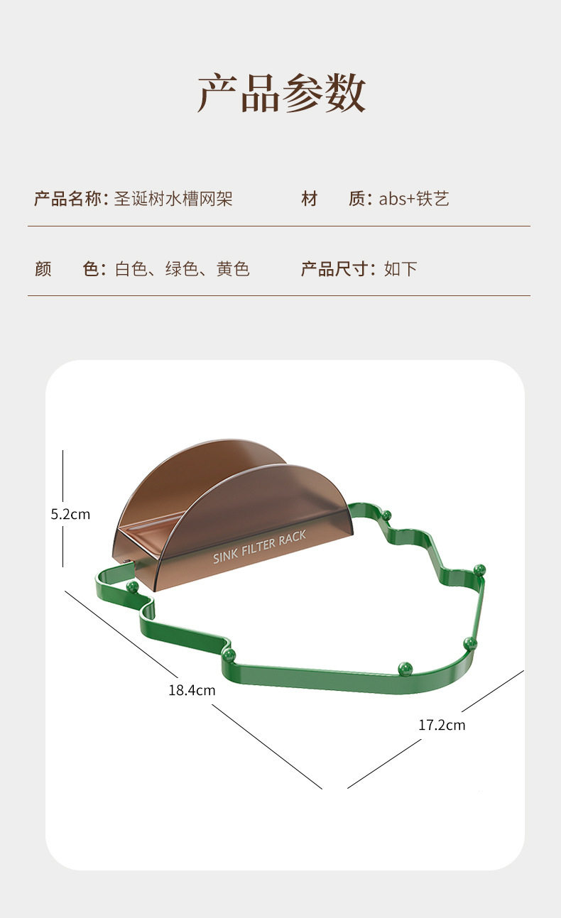 Christmas Tree Sink Filter Net Rack Kitchen Vegetable Washing Residue Anti-blocking Pool Filter Net Large Mouth Storage Drain Net Rack