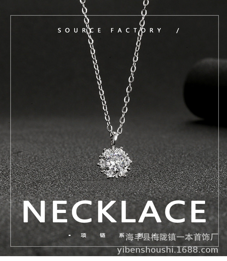 A diamond snowflake necklace 2024 new luxury sweater chain niche titanium steel clavicle chain design for birthday gifts