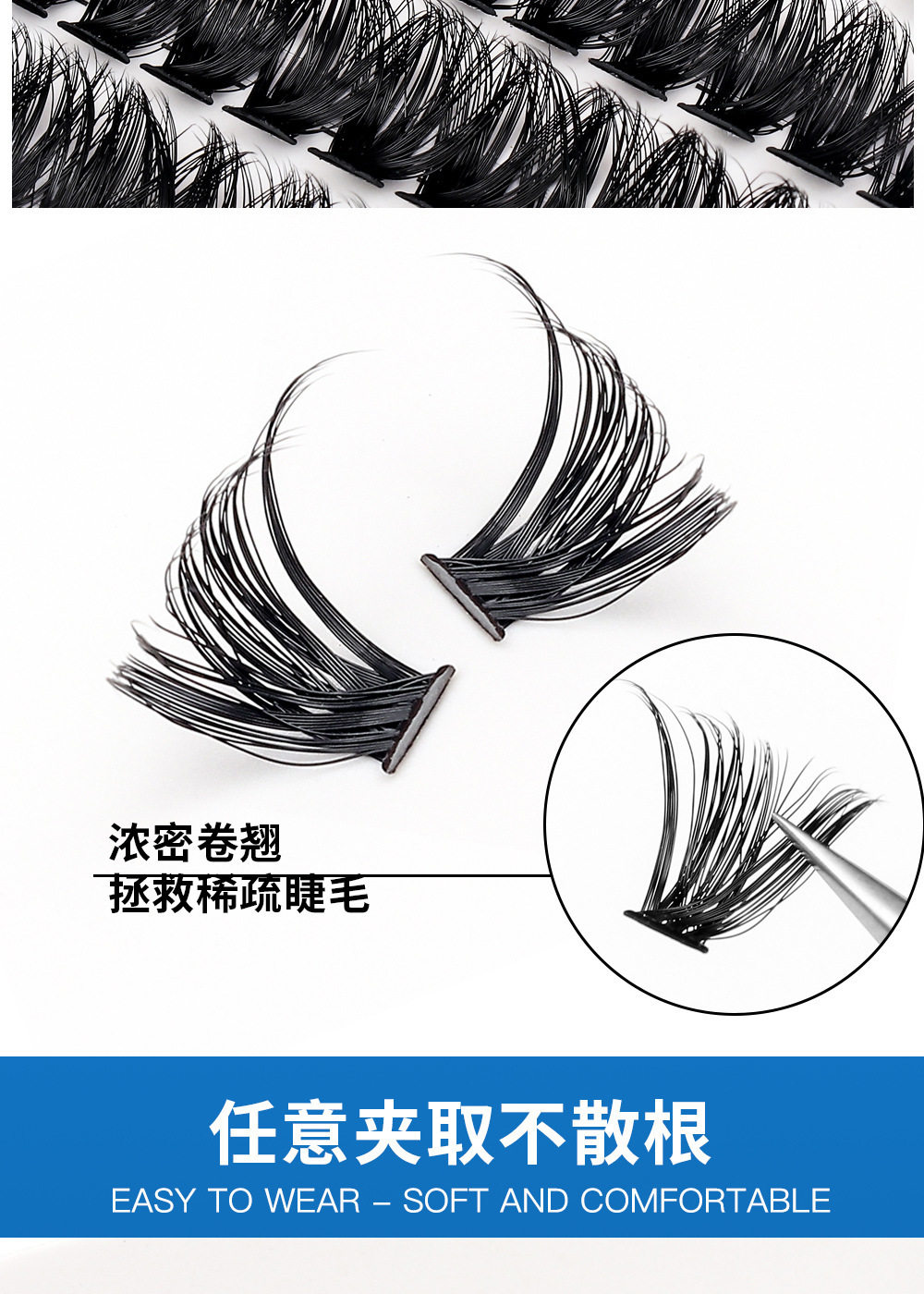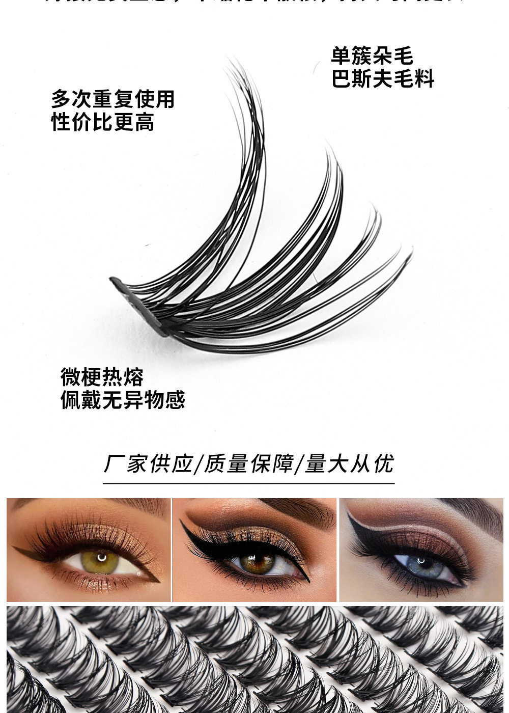 Cross-border 30P-100P thick false eyelashes hot melt segmented self-grafting eyelashes Amazon wholesale