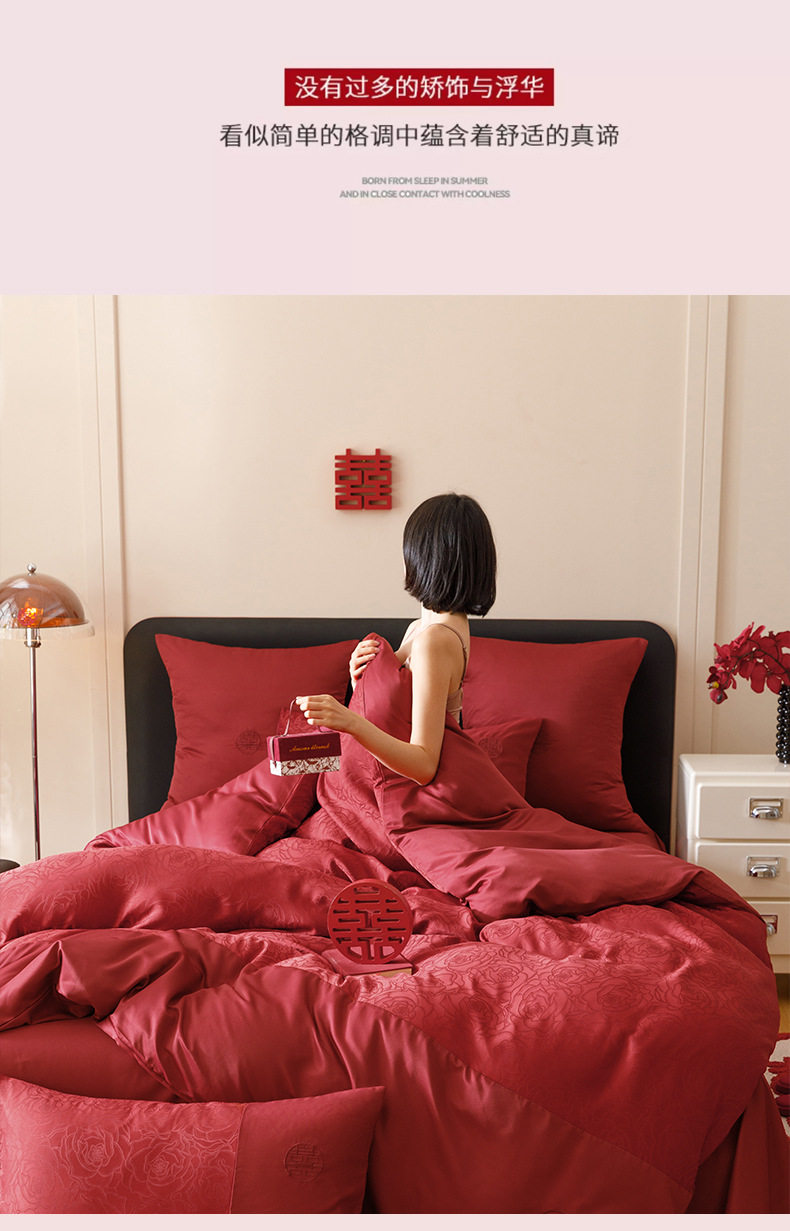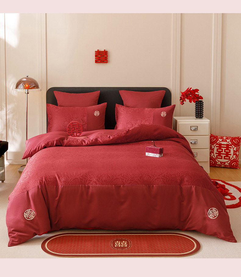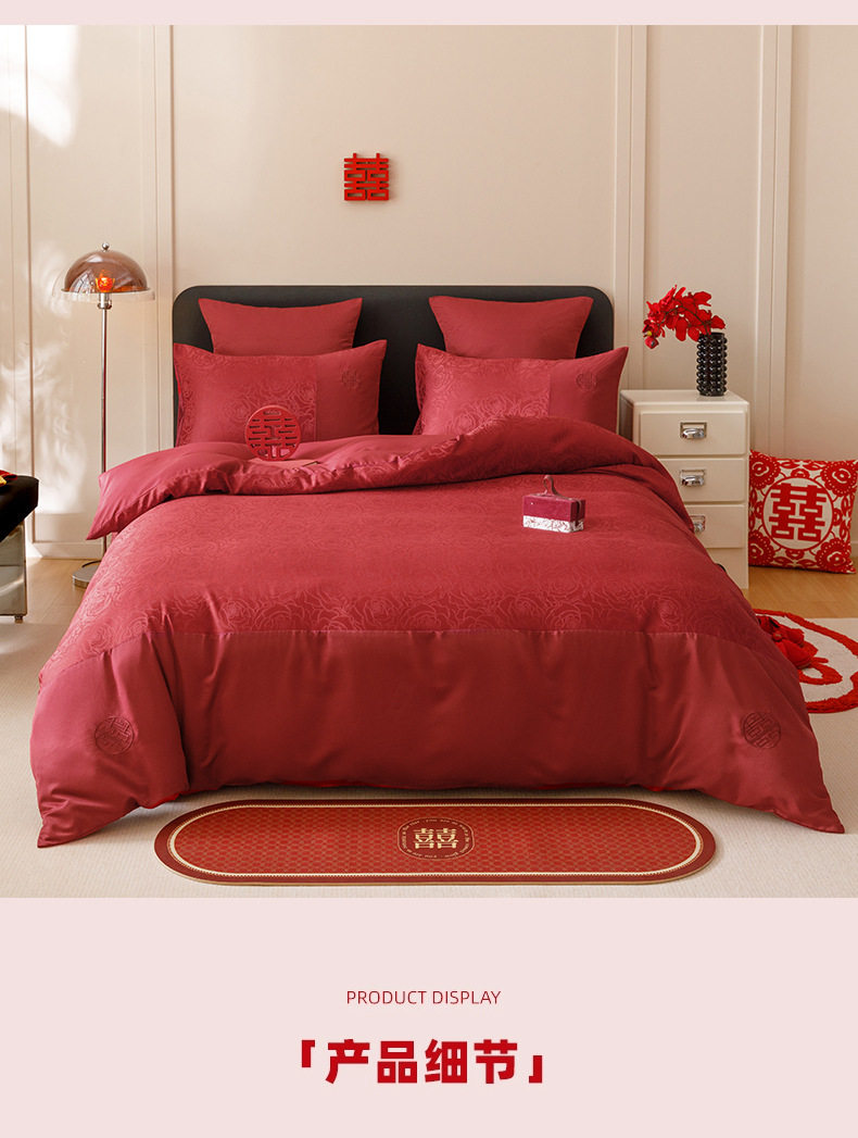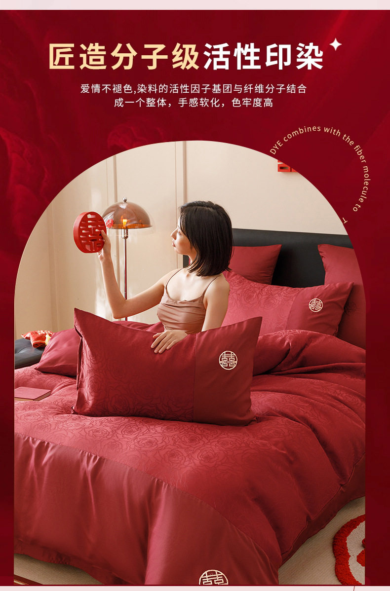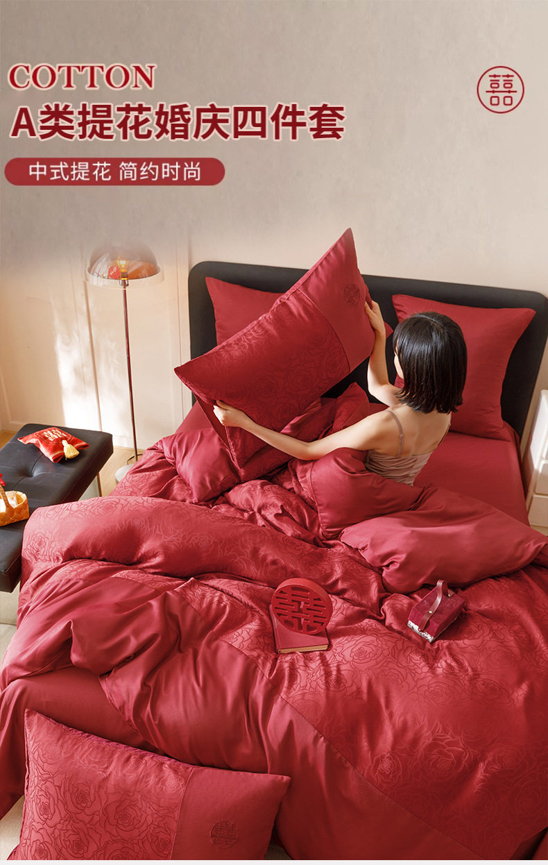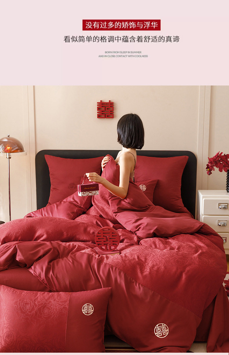 Red wedding festive skin-friendly cotton four-piece satin jacquard high-end wedding men's and women's bedding wholesale