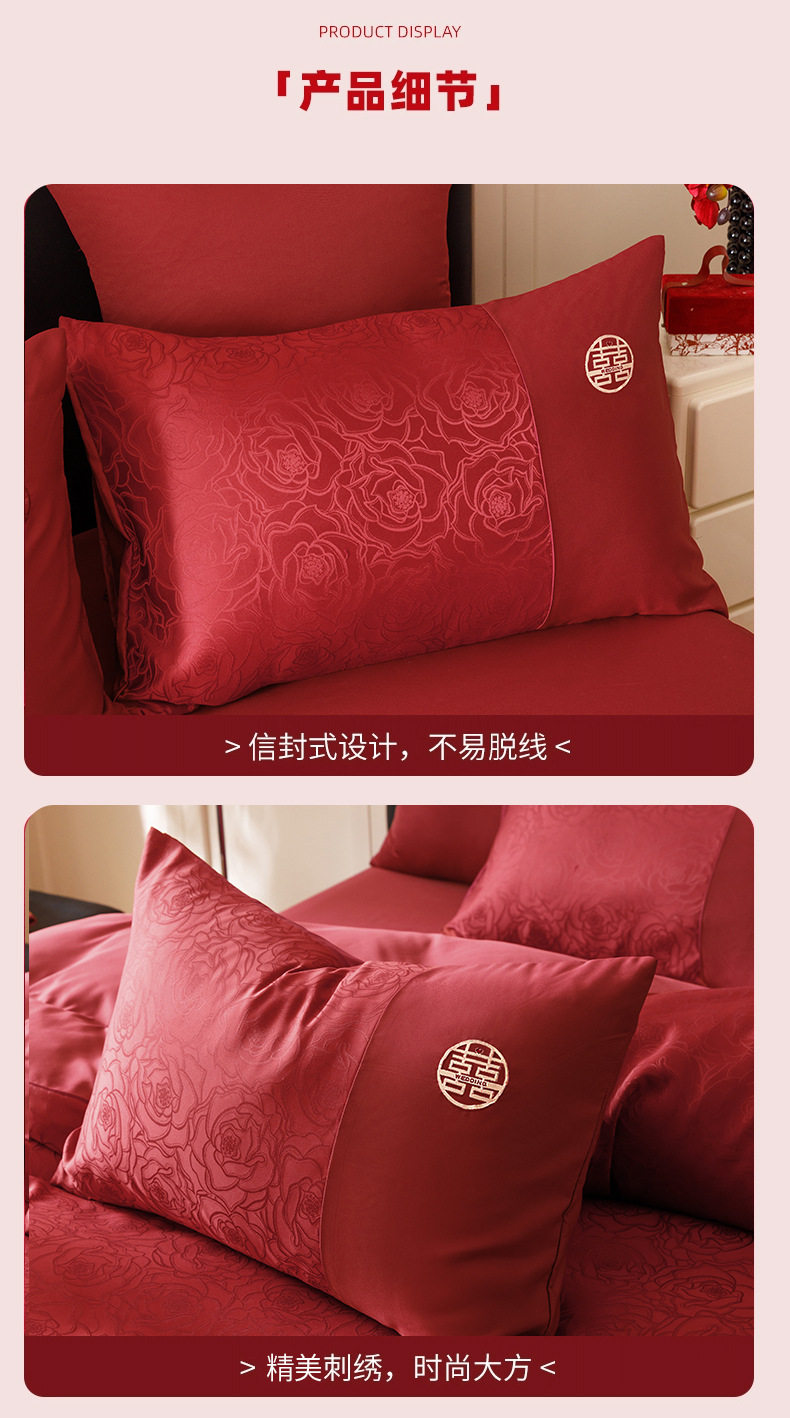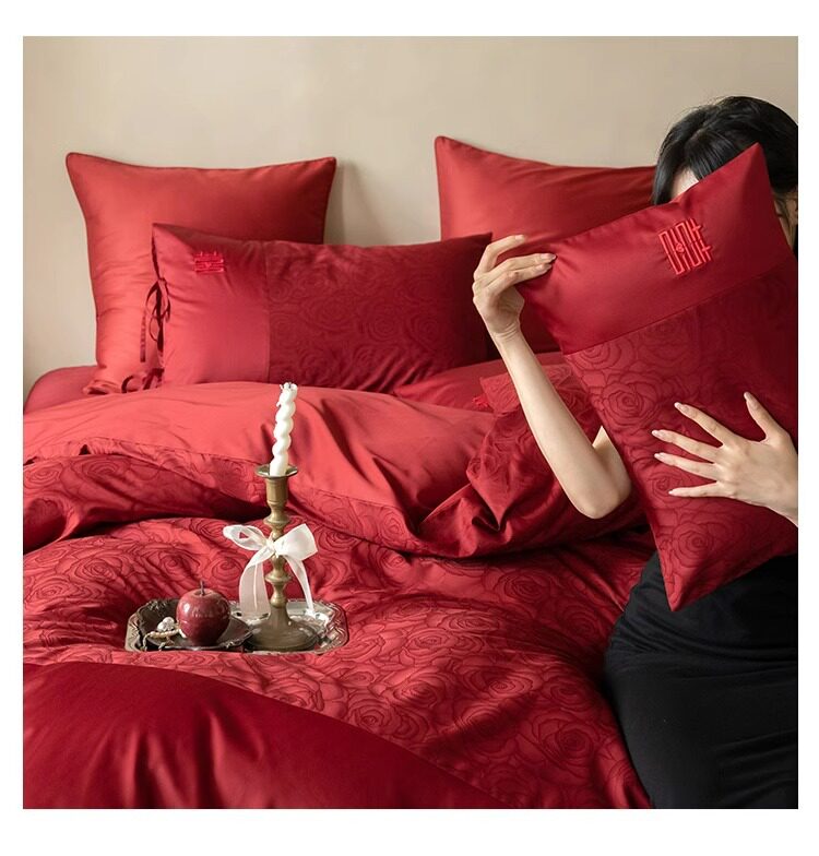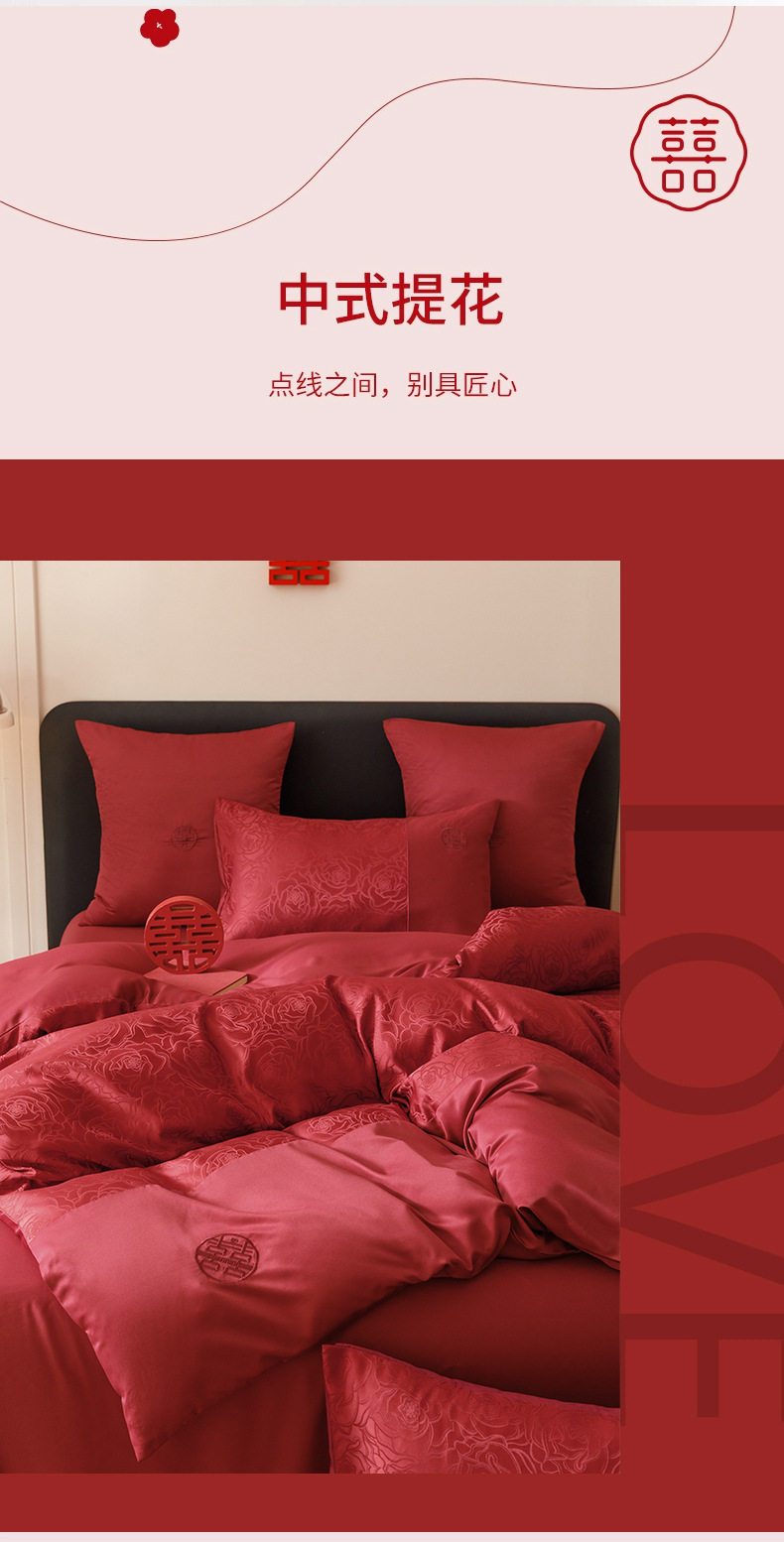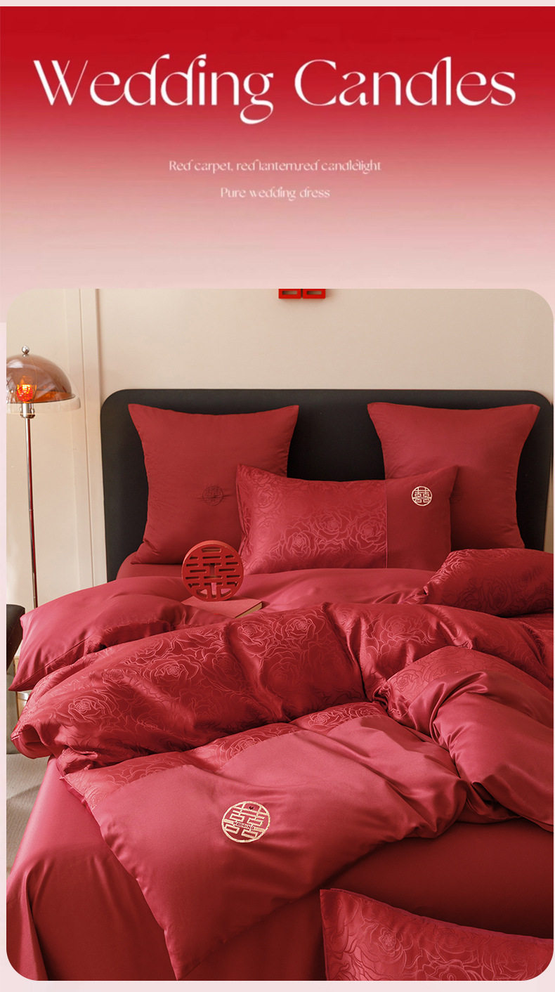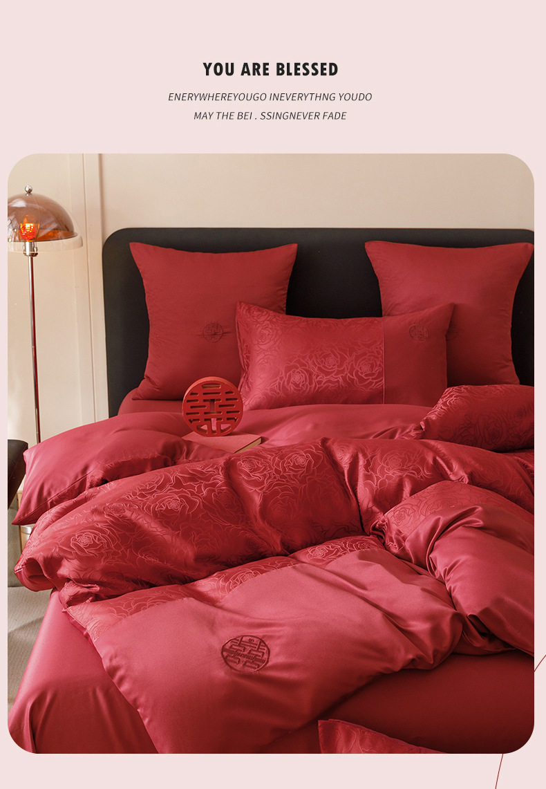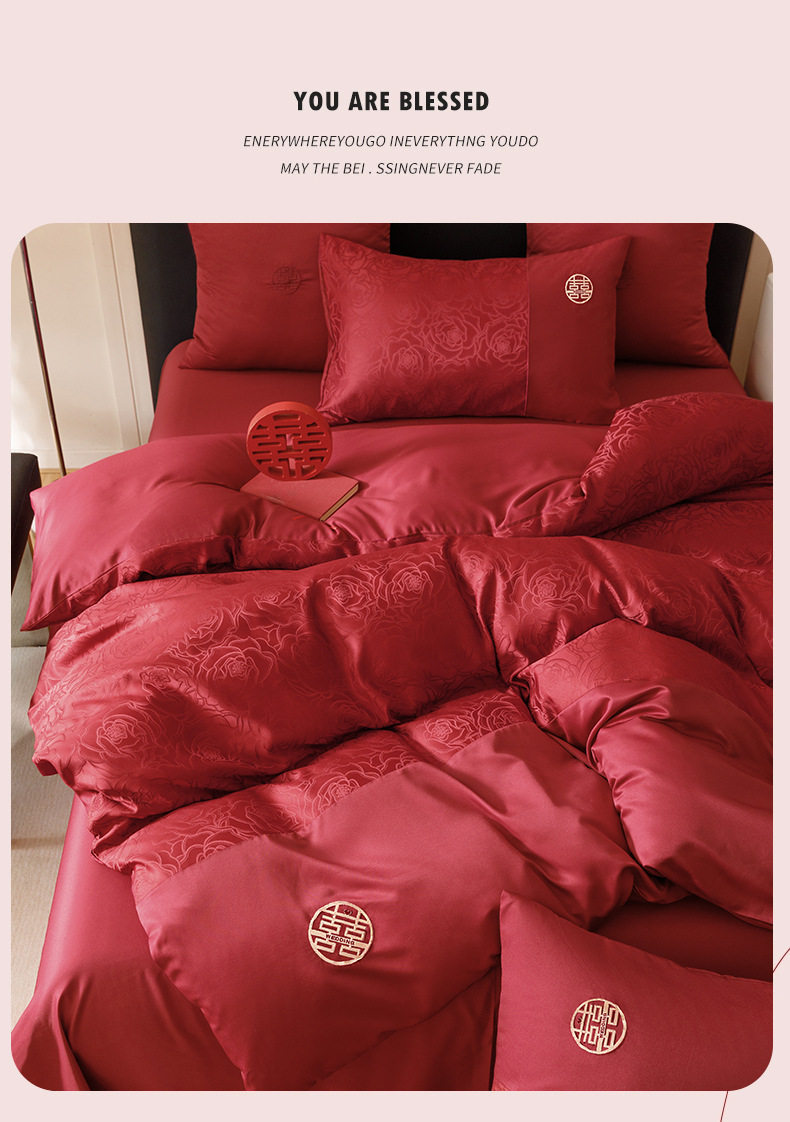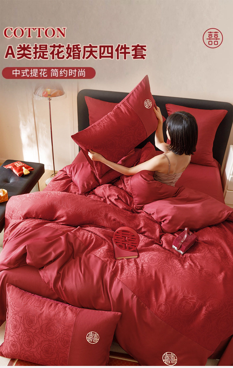 Red wedding festive skin-friendly cotton four-piece satin jacquard high-end wedding men's and women's bedding wholesale