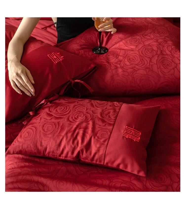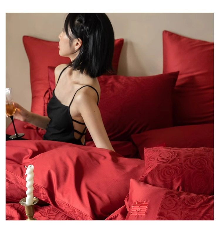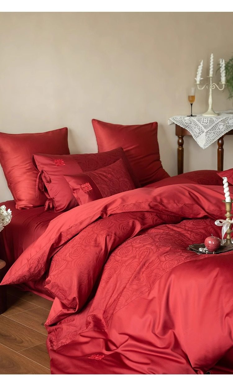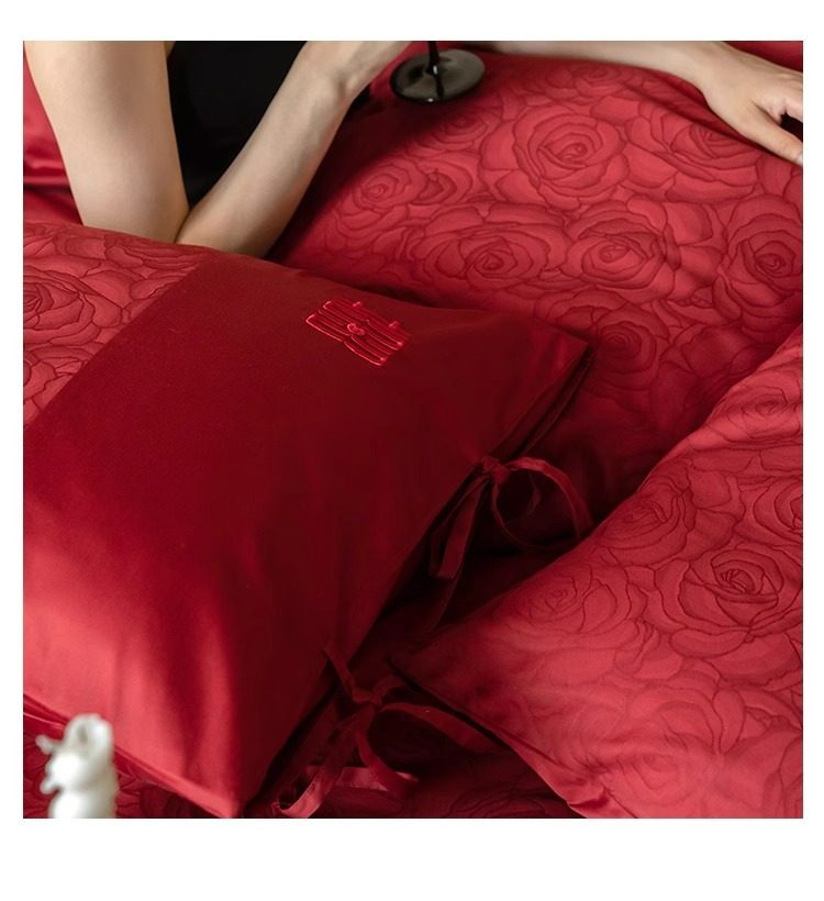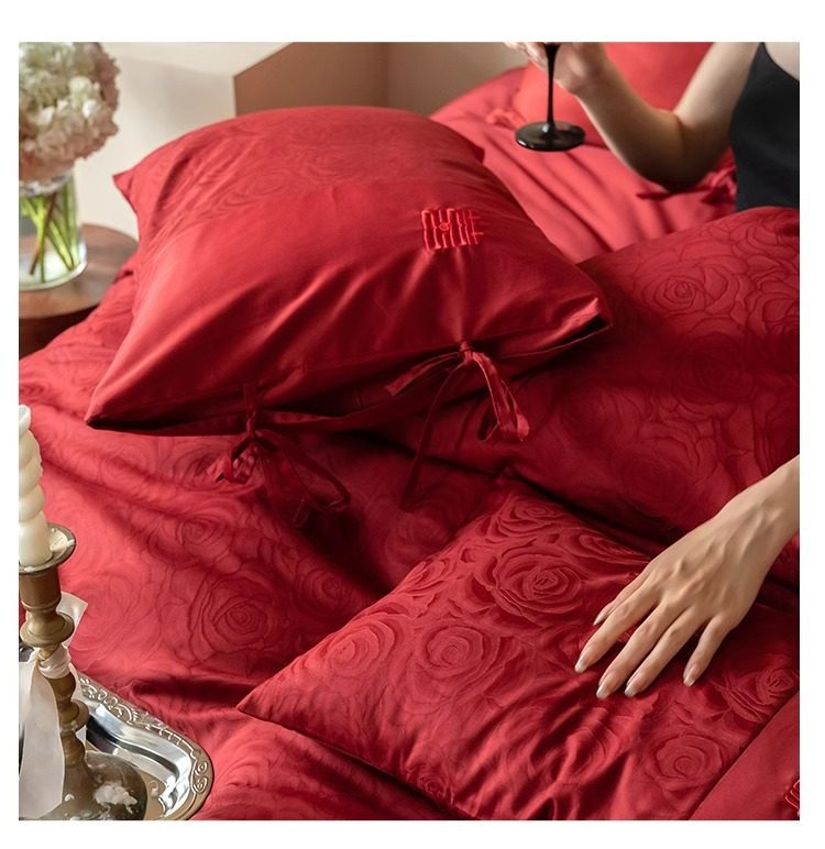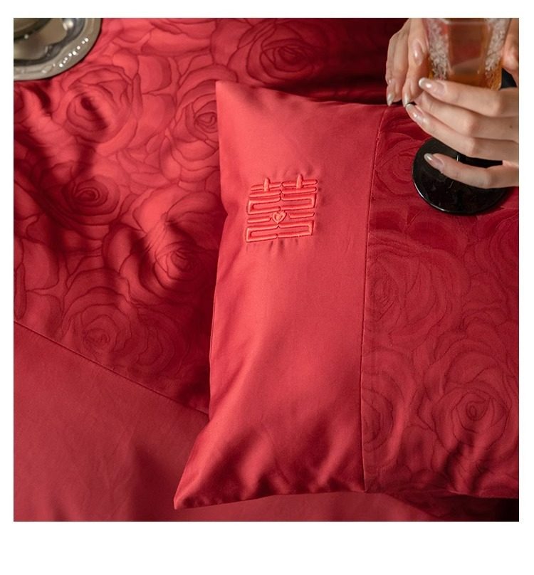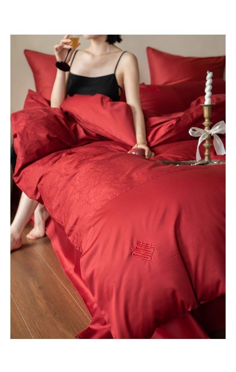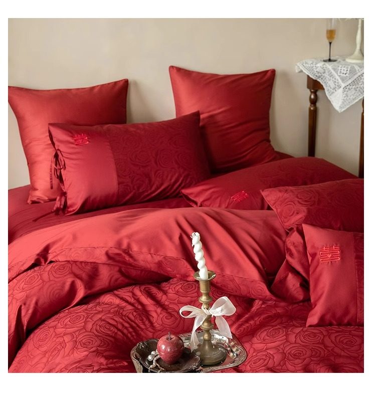 Red wedding festive skin-friendly cotton four-piece satin jacquard high-end wedding men's and women's bedding wholesale