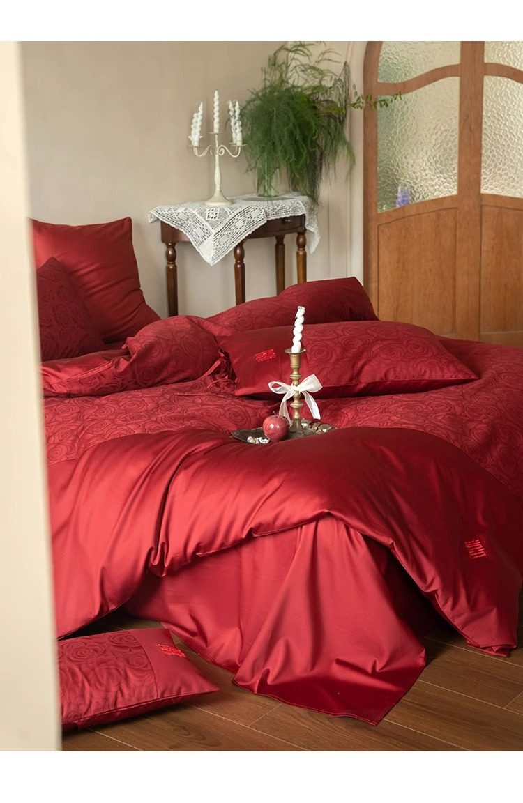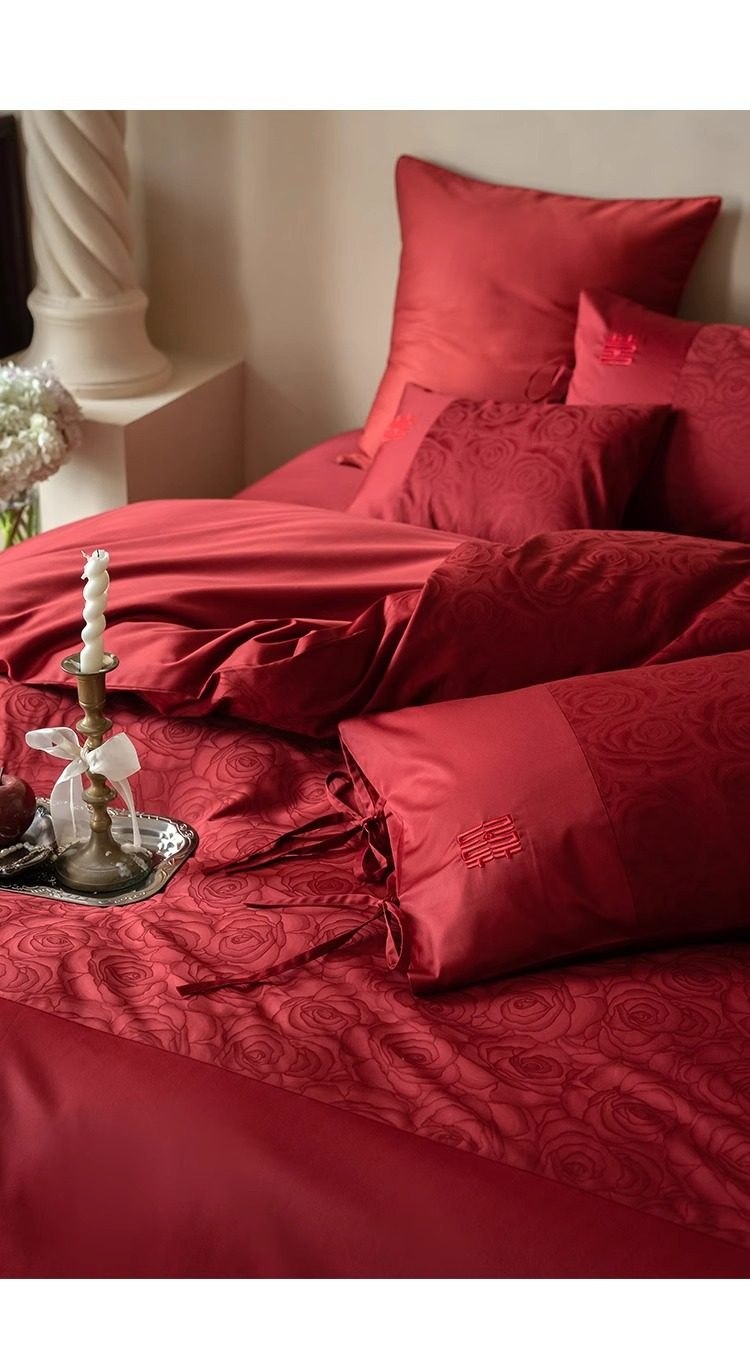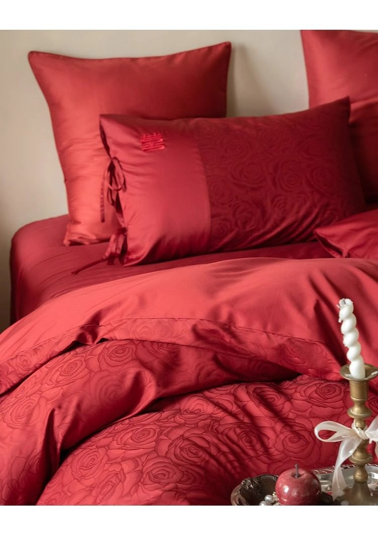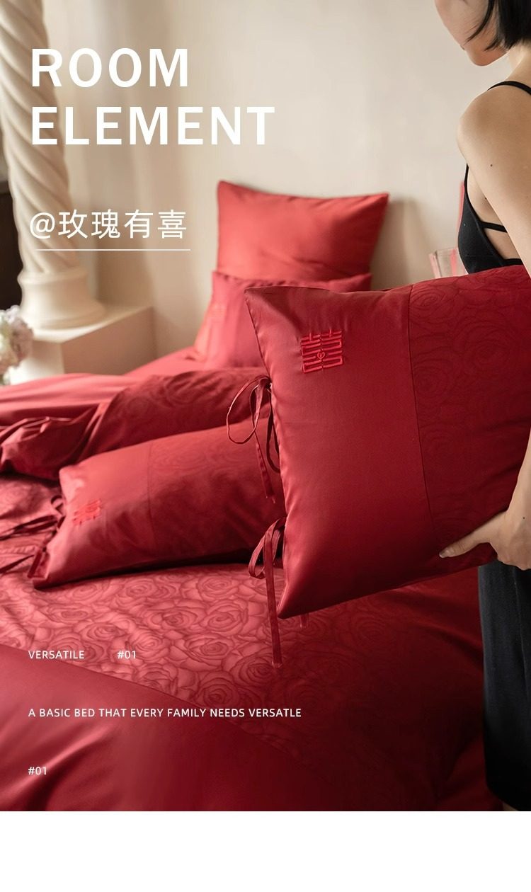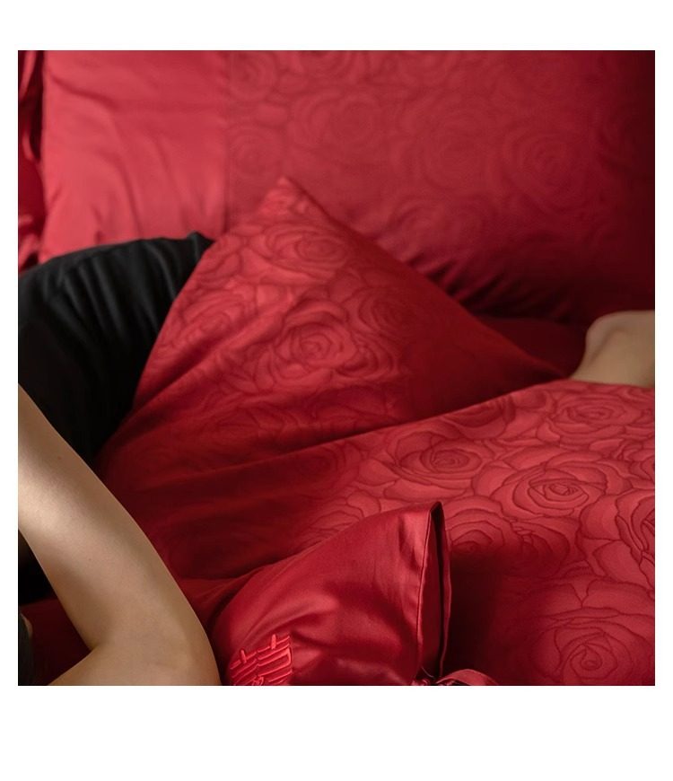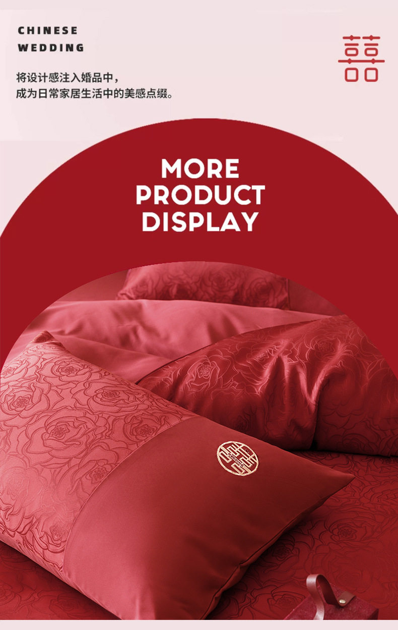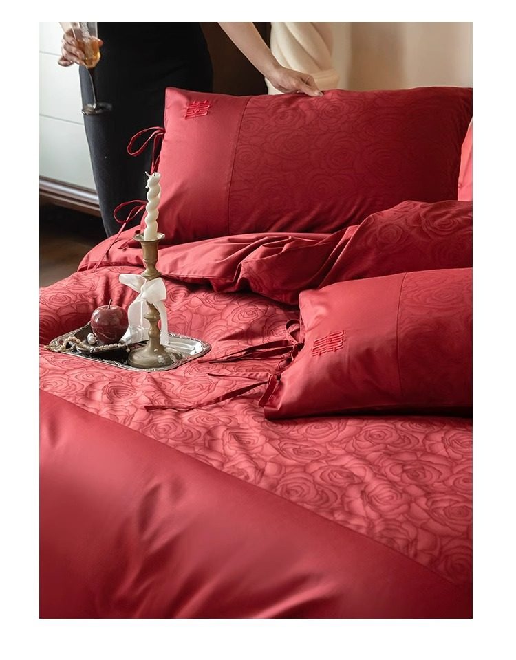 Red wedding festive skin-friendly cotton four-piece satin jacquard high-end wedding men's and women's bedding wholesale