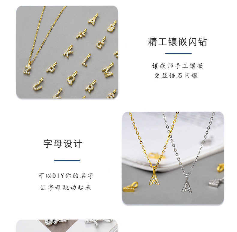 S925 sterling silver your name 26 English letter pendant cute mini DIY with clavicle chain female cross-border