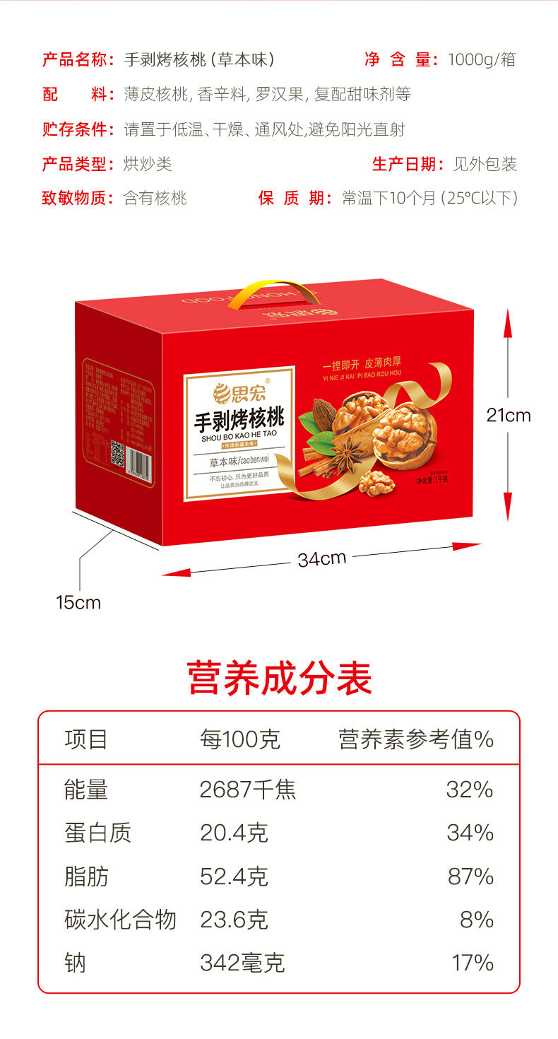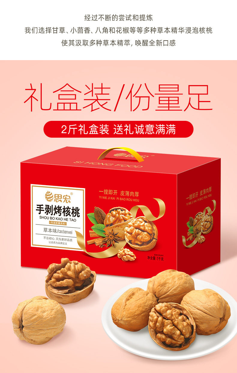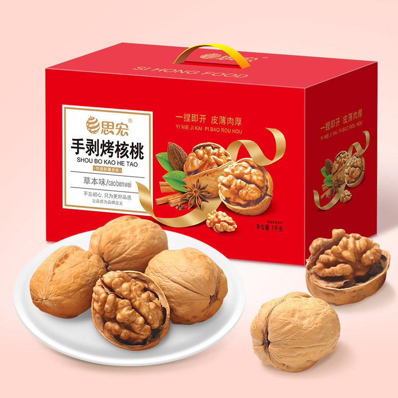 "2kg gift box" Sihong Xinjiang hand-peeled roasted walnuts, herbal flavor packaging other year-round normal temperature