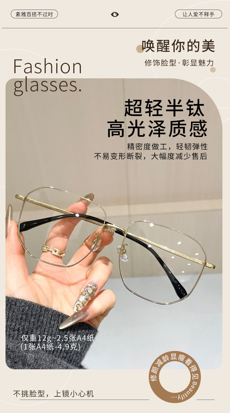 6688 New Titanium Large Frame Anti-blue Glasses Trendy Multilateral Glasses Frame Ins Style Men's Myopia Glasses