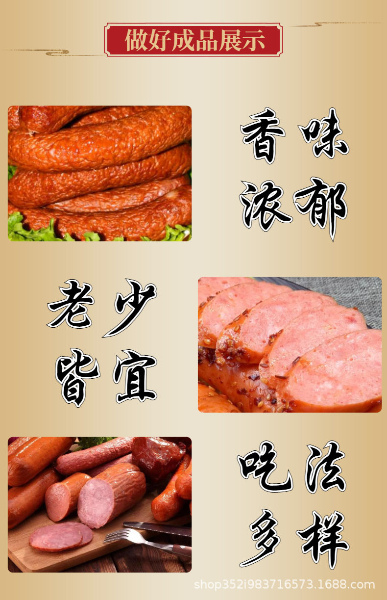 | Specifications | 1 bag of wuzhou red intestine seasoning [filled with 0.75kg meat],Wuzhou red sausage seasoning 100g*3 bags [no gifts],Wuzhou red sausage seasoning 100g*10 bags [no gifts],Wuzhou red sausage seasoning 100g*3 bags [free 1 bag of casings + thread],Wuzhou red sausage seasoning 100g*5 bags [free 1 bag of casings + thread],Wuzhou red sausage seasoning 100g*50 bags [no gifts] |