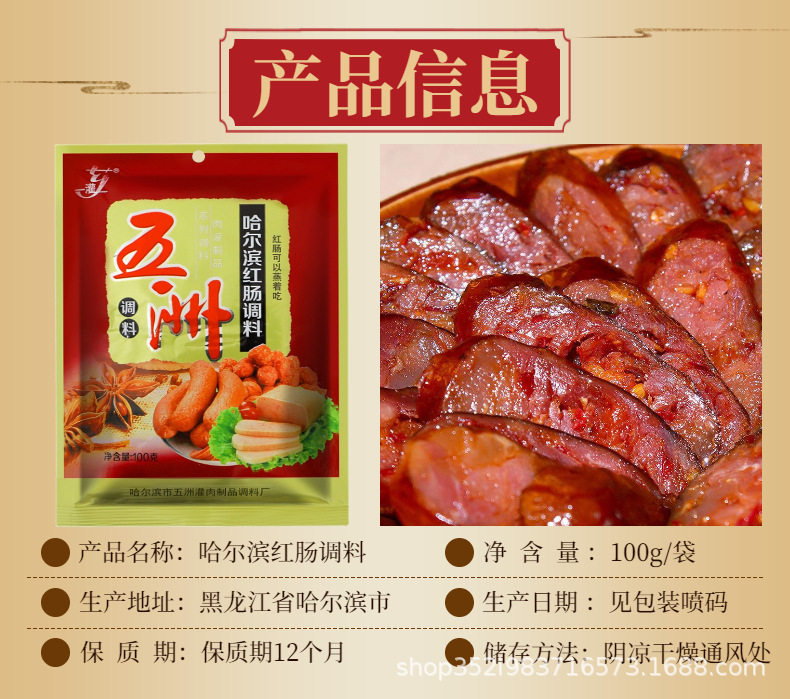 Wuzhou Red Sausage Seasoning Harbin Yizu Xiang Multi-bag Household Commercial Homemade Enema Roast Sausage Sausage Lunch Meat Material
