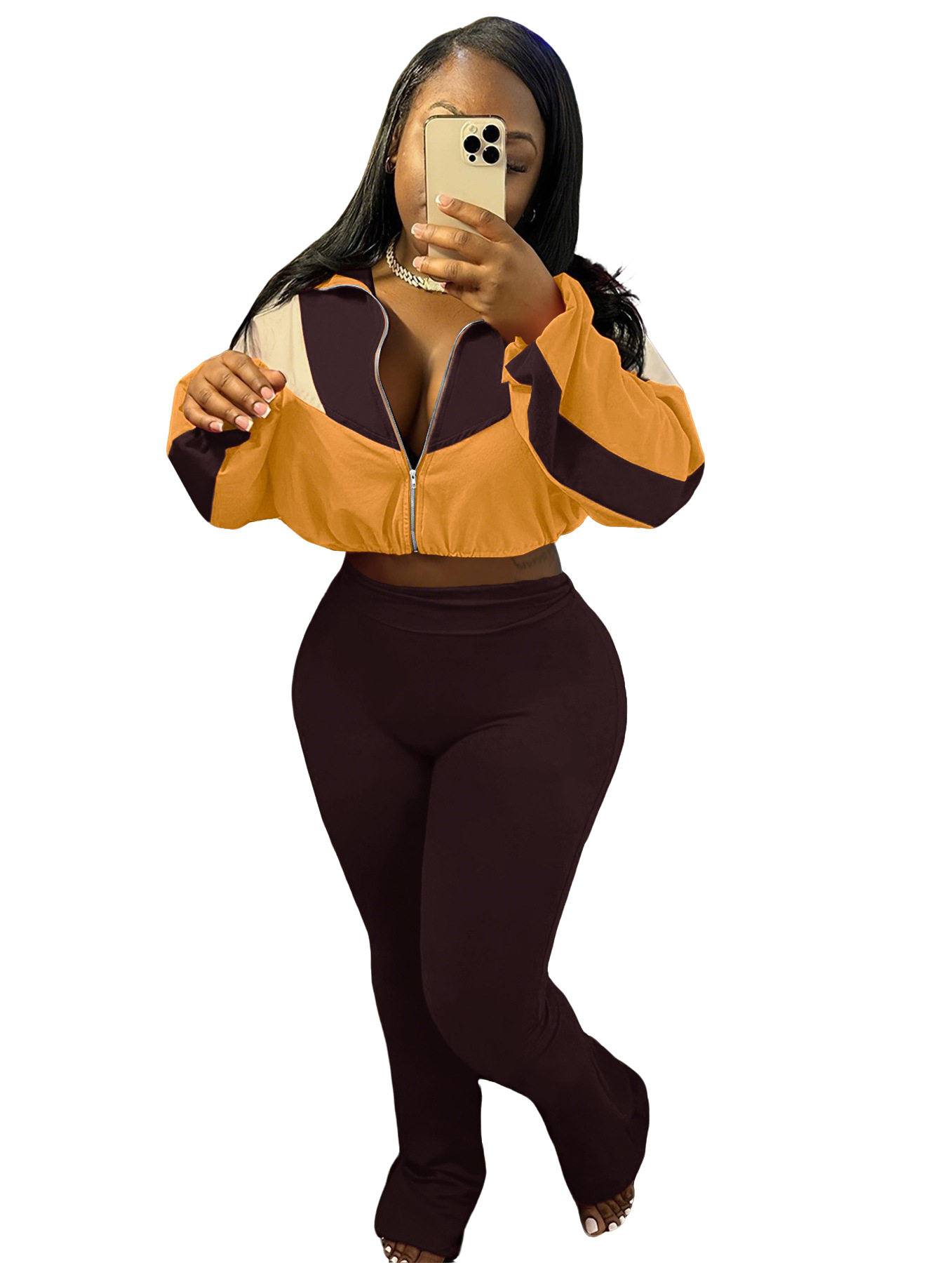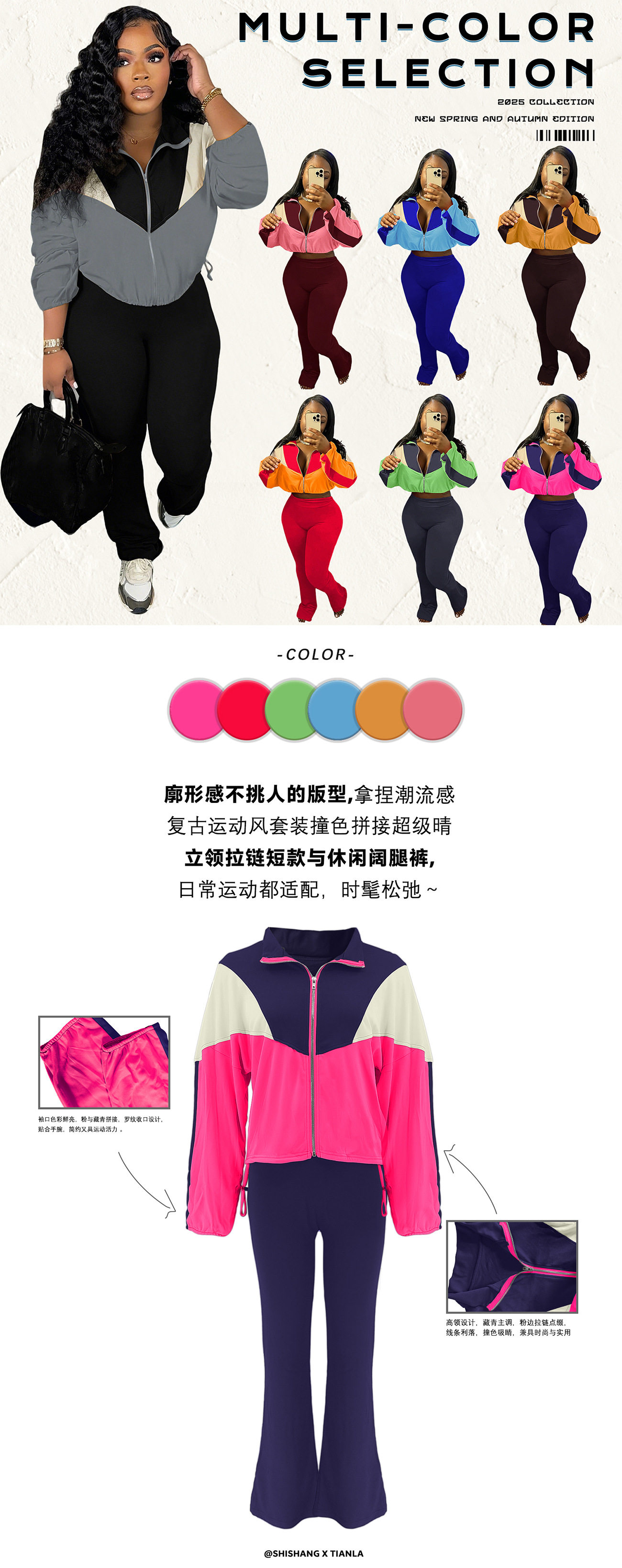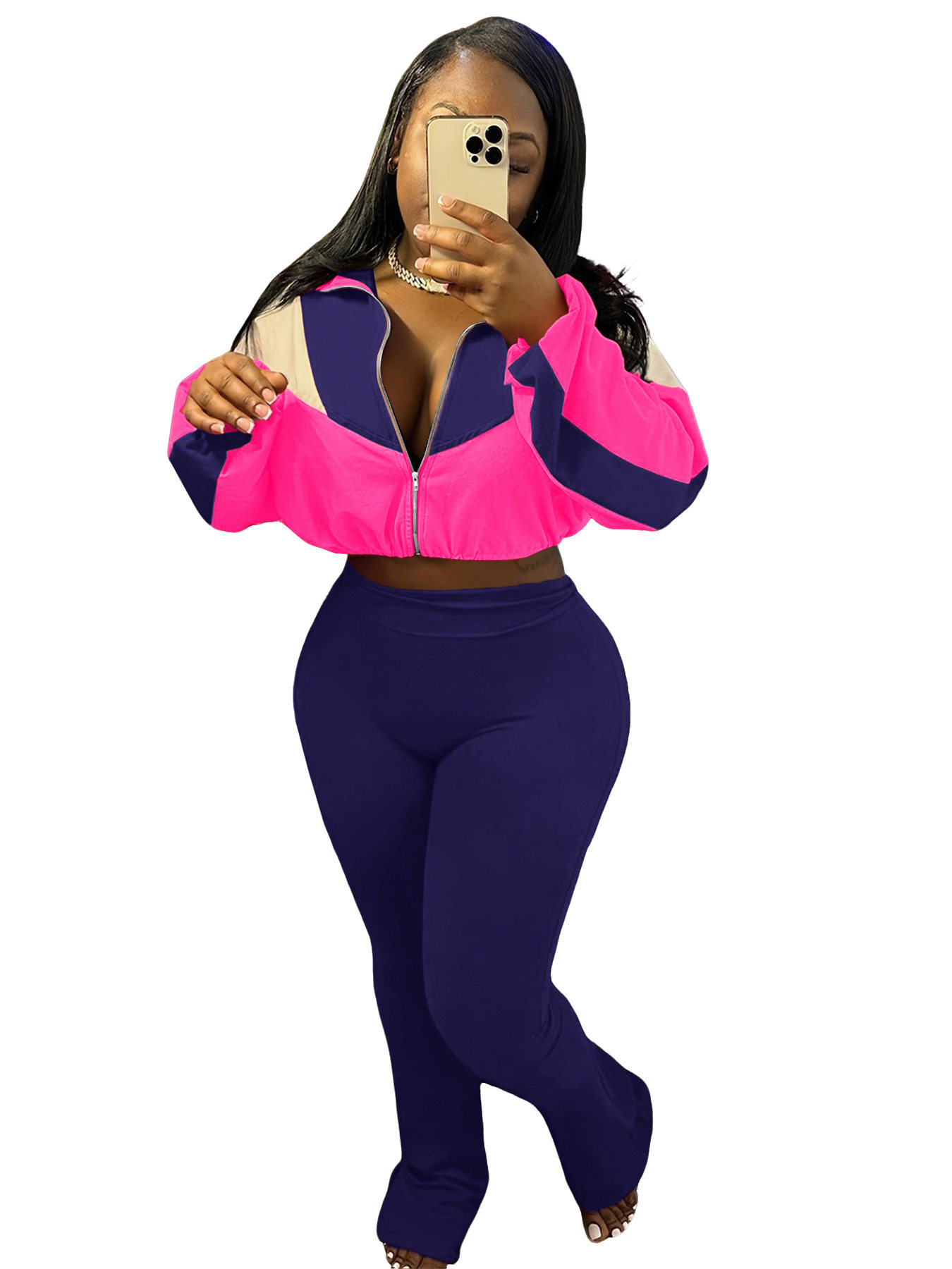 M3073 European and American velvet suit color matching zipper cardigan tights sports suit AliExpress Amazon supply