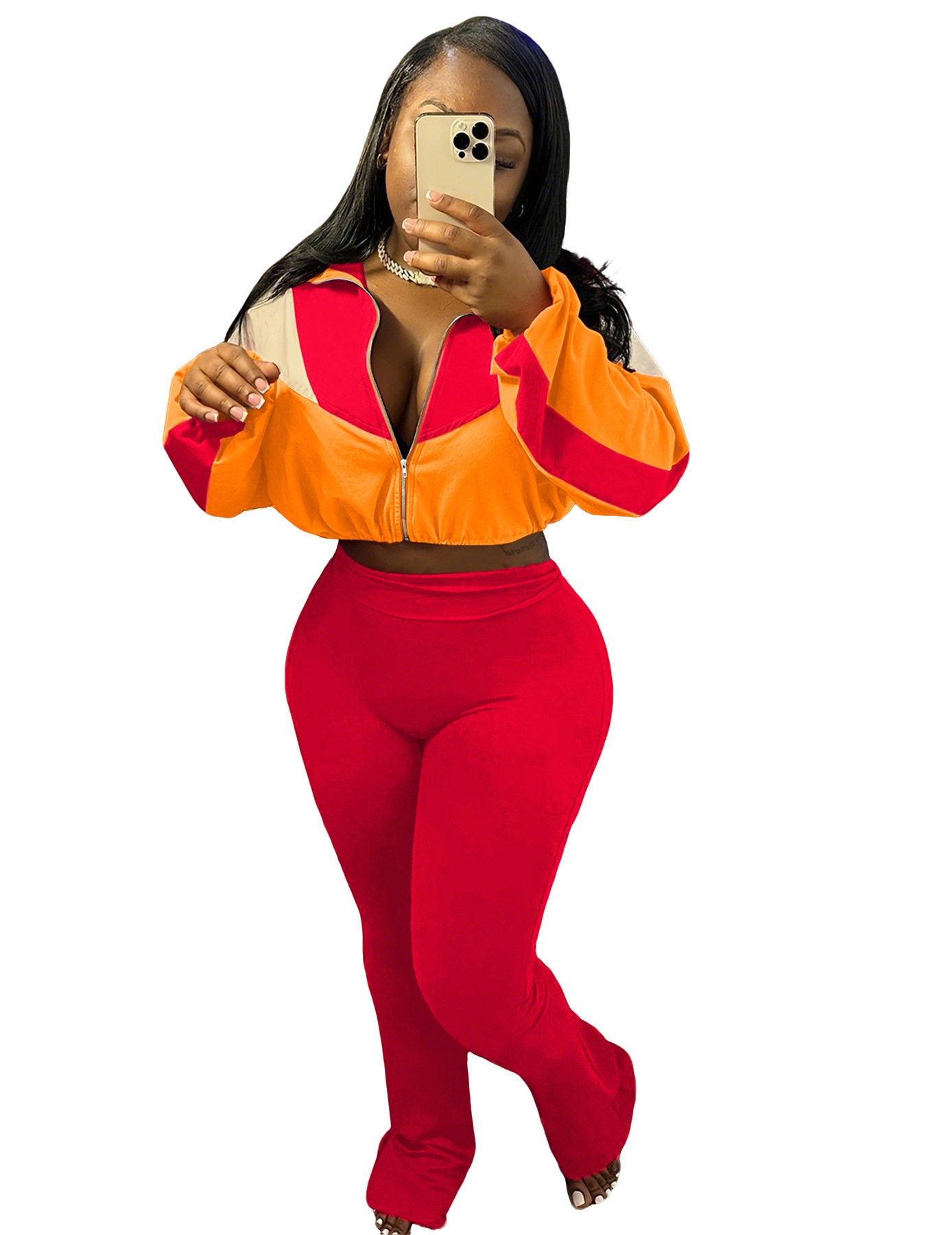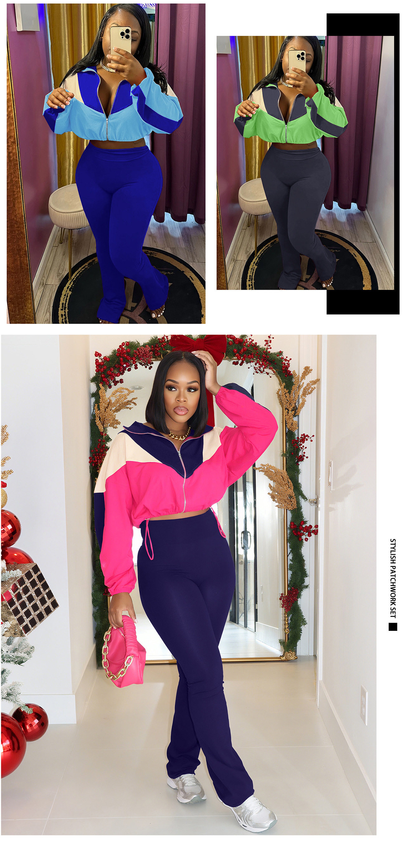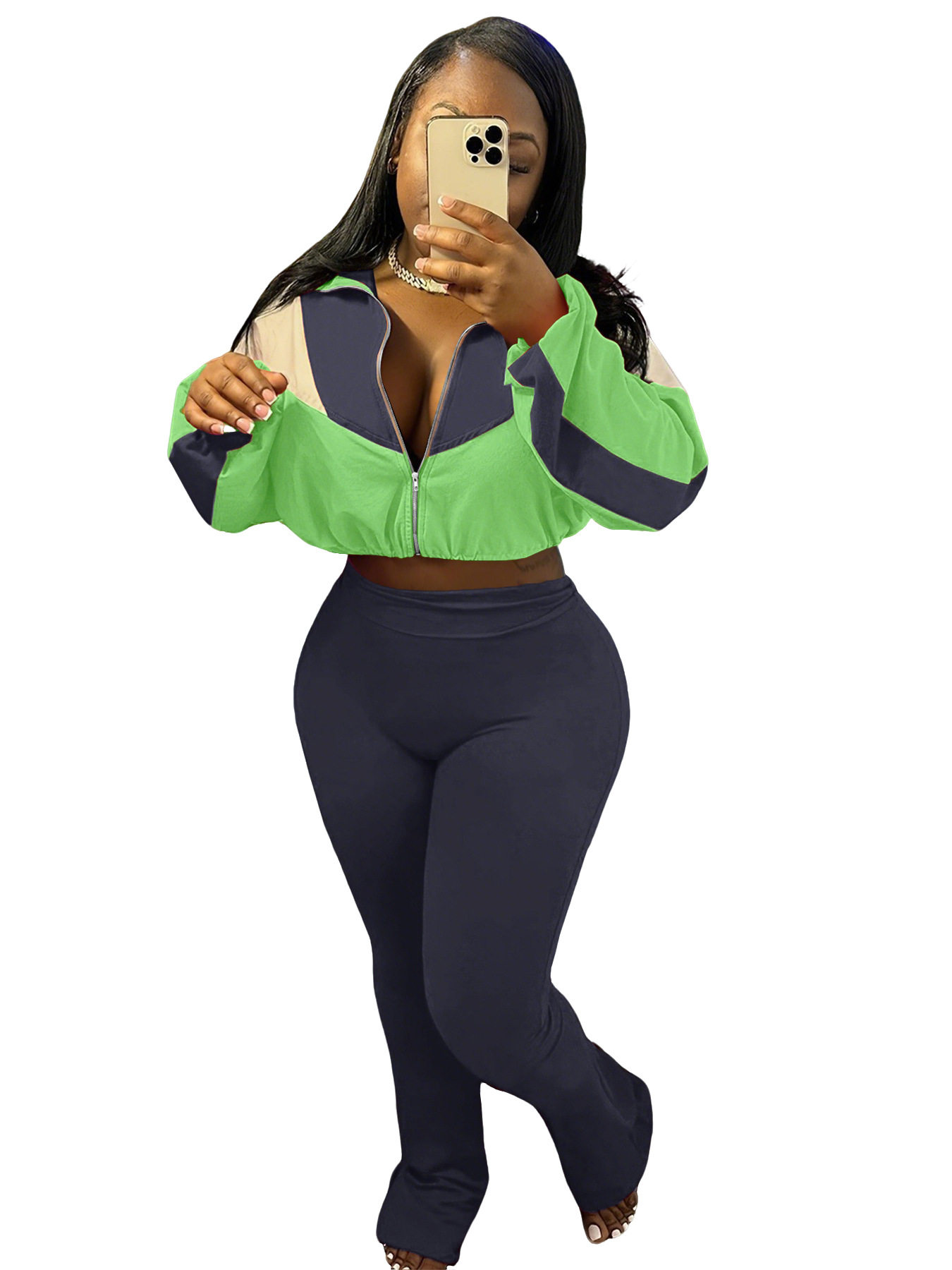 M3073 European and American velvet suit color matching zipper cardigan tights sports suit AliExpress Amazon supply