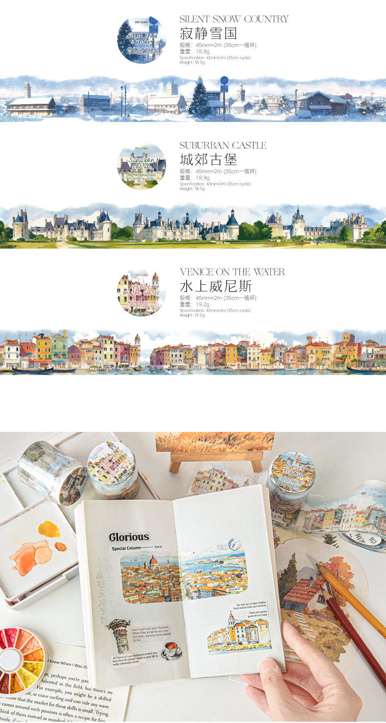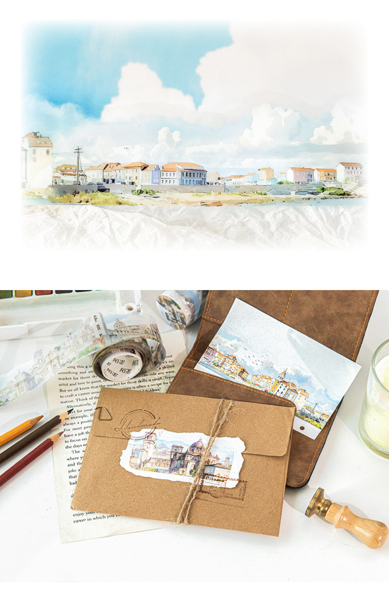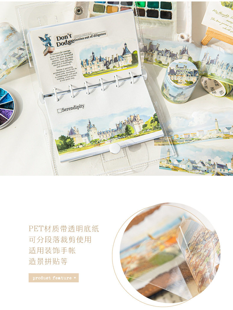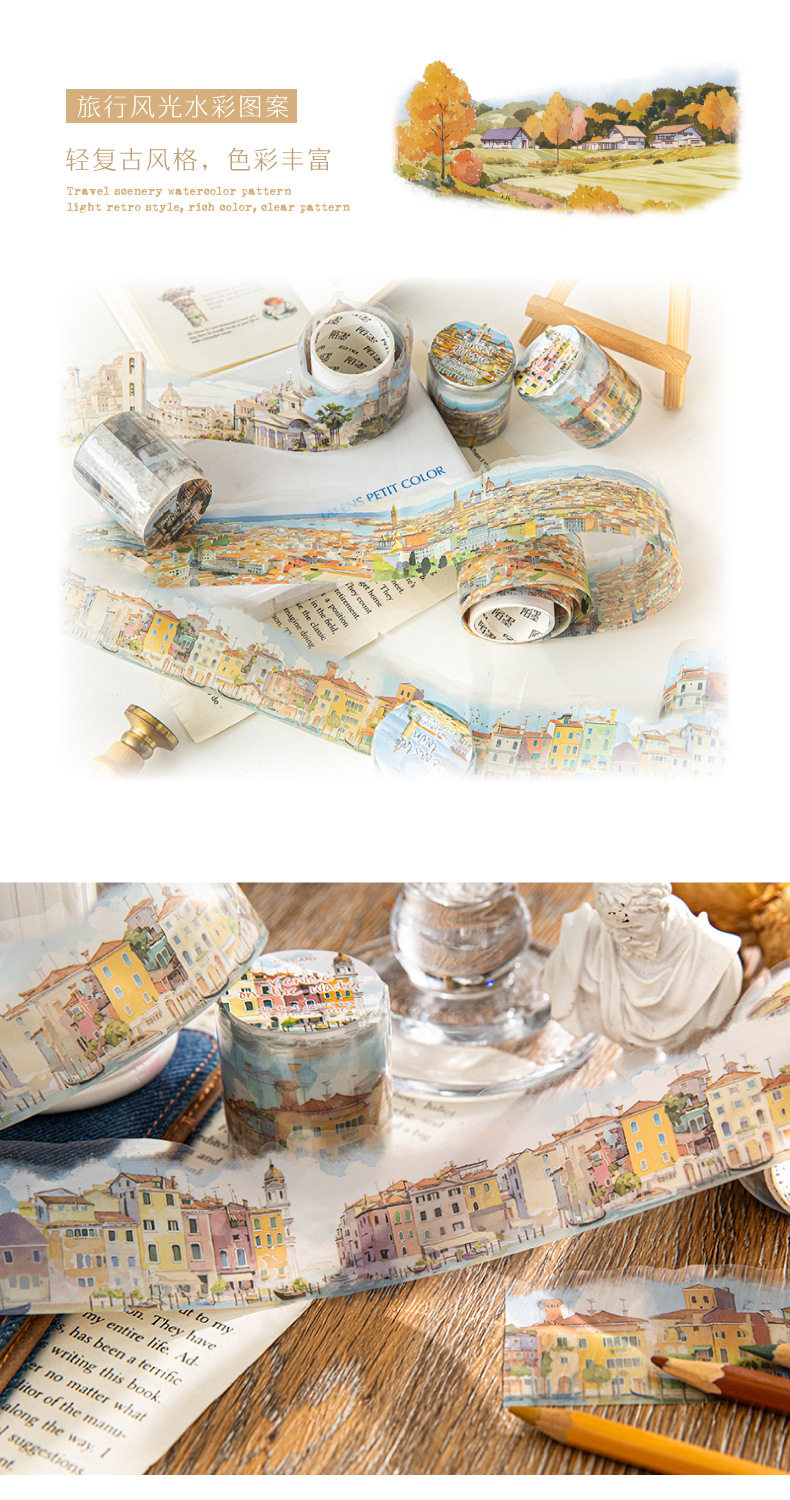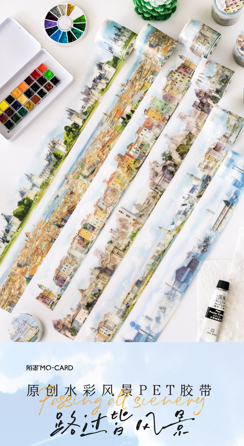 Mo Mo PET Shaped Tape Passing All Scenery Series 6 Watercolor Scenery Theme Material DIY Base Pack