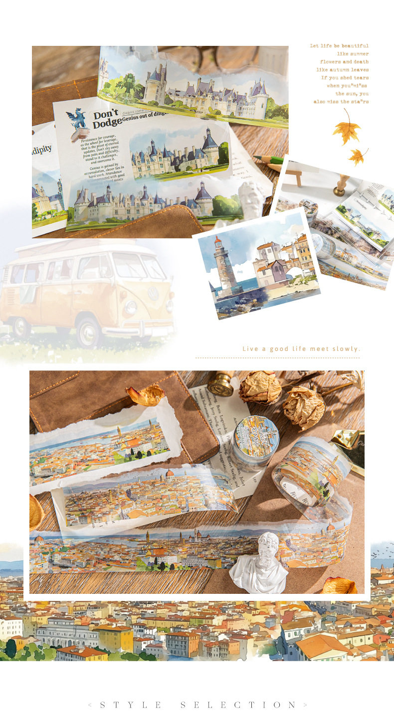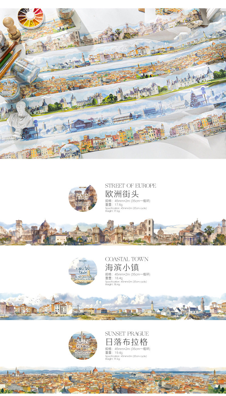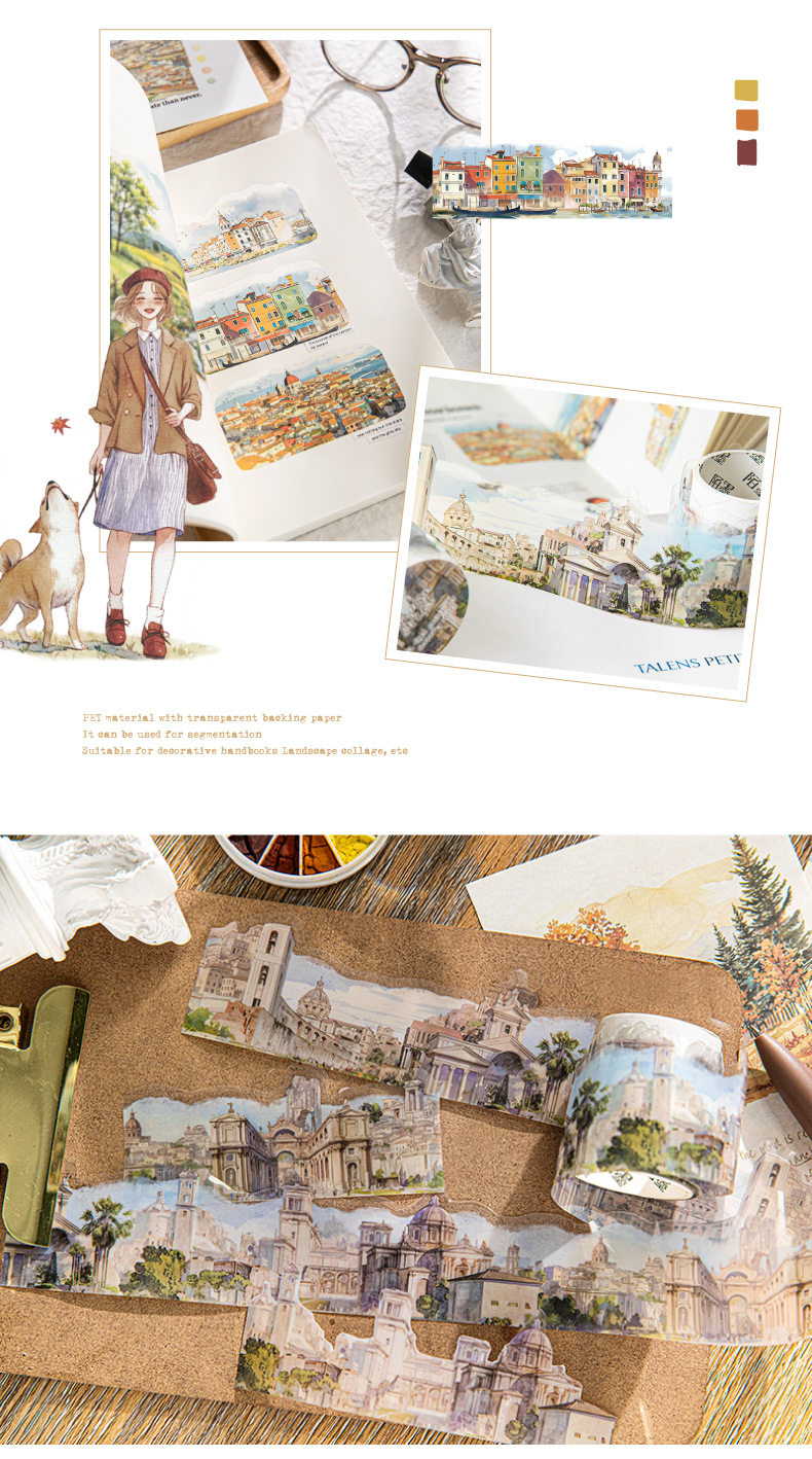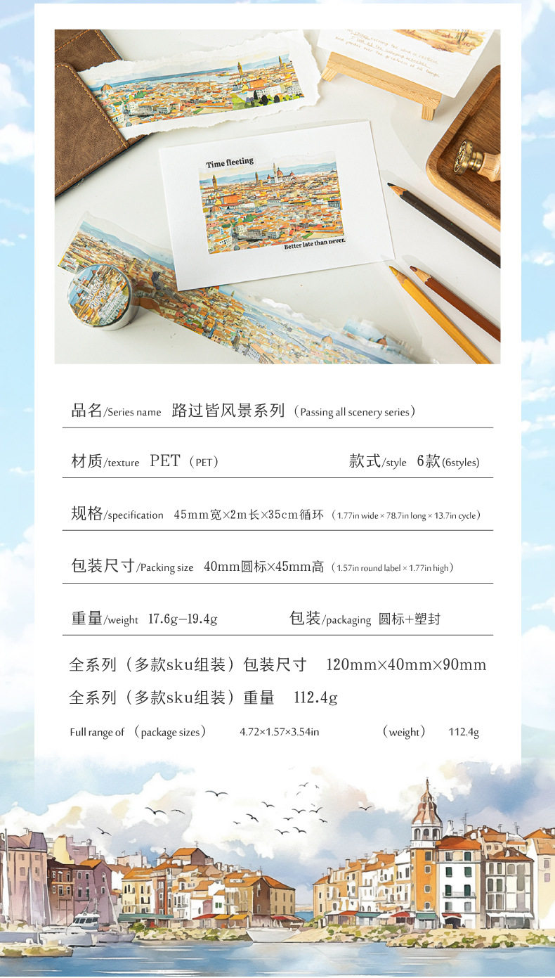 Mo Mo PET Shaped Tape Passing All Scenery Series 6 Watercolor Scenery Theme Material DIY Base Pack